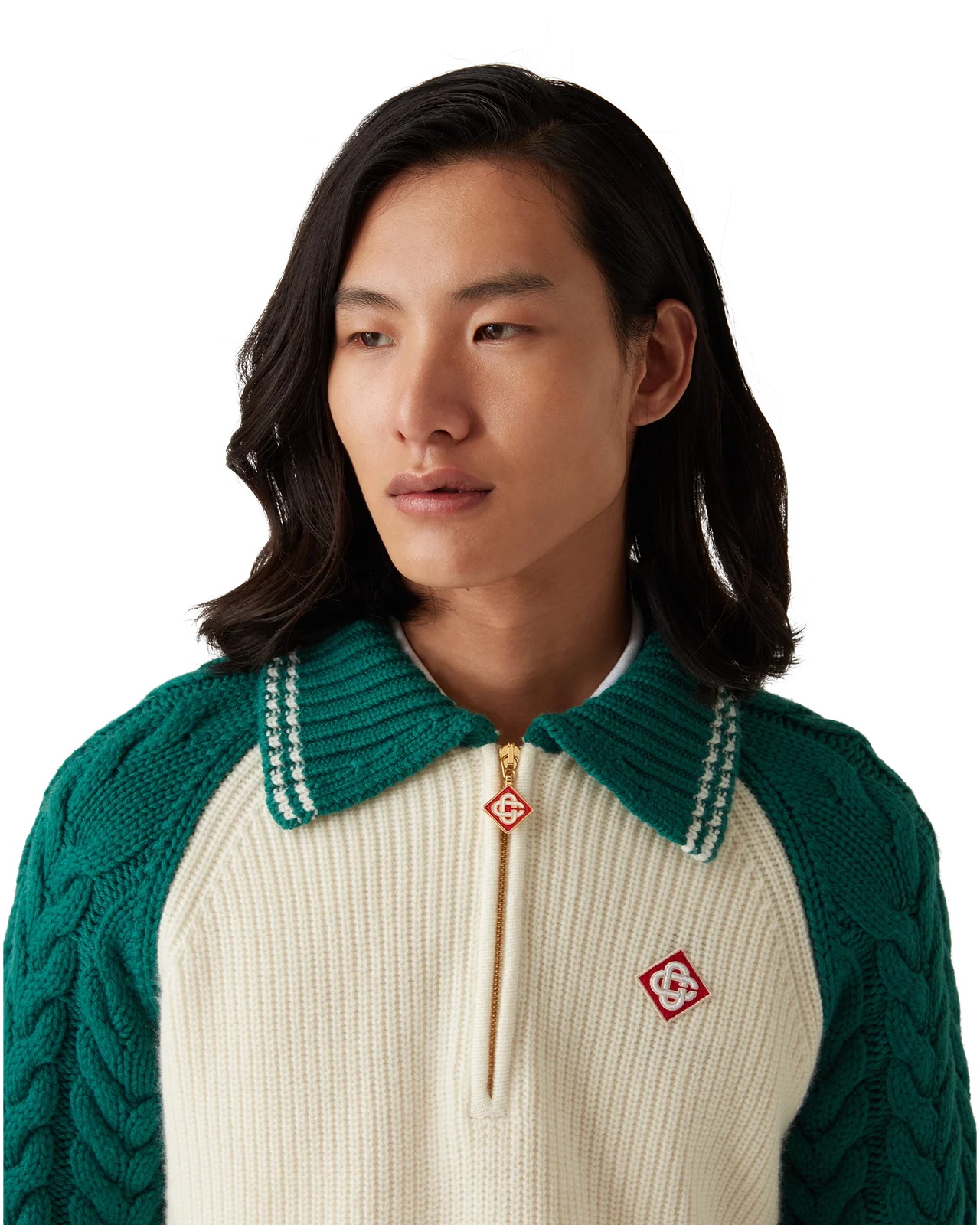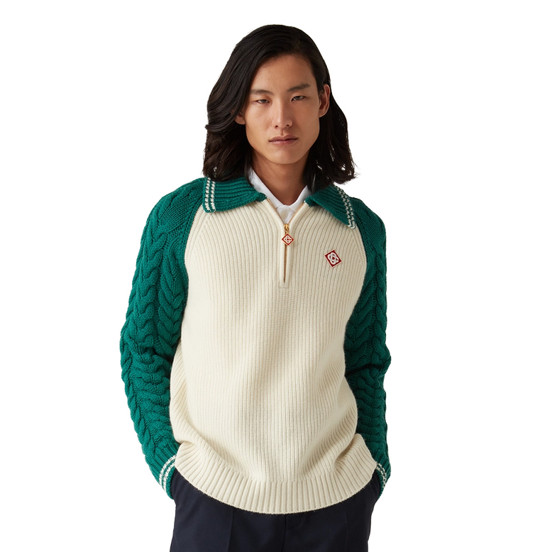 NIGO Casablanca Men's And Women's Spring/fall Fashion Casual Collared Half-zip Logo Wool Knit Sweater #nigo78495