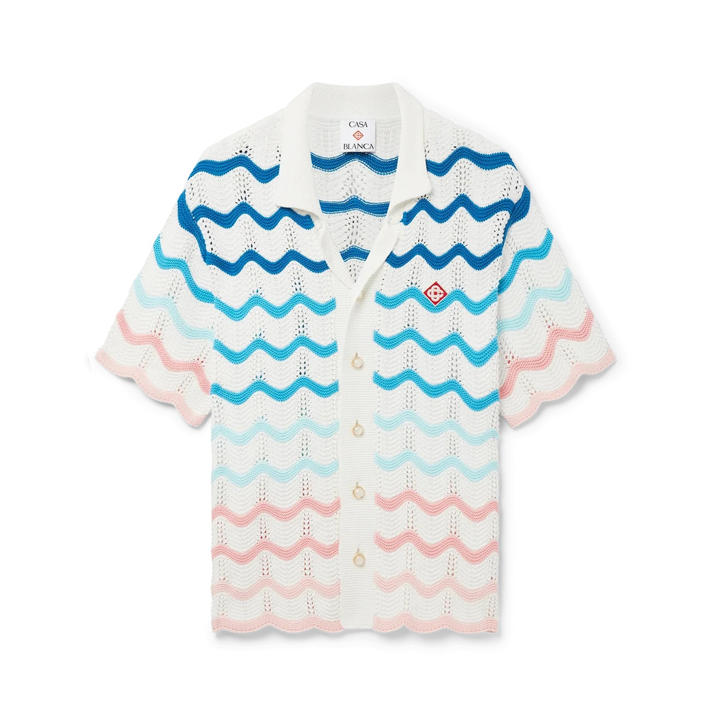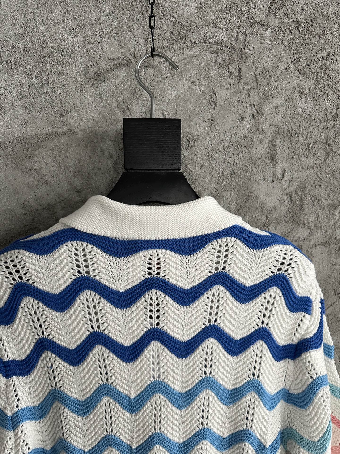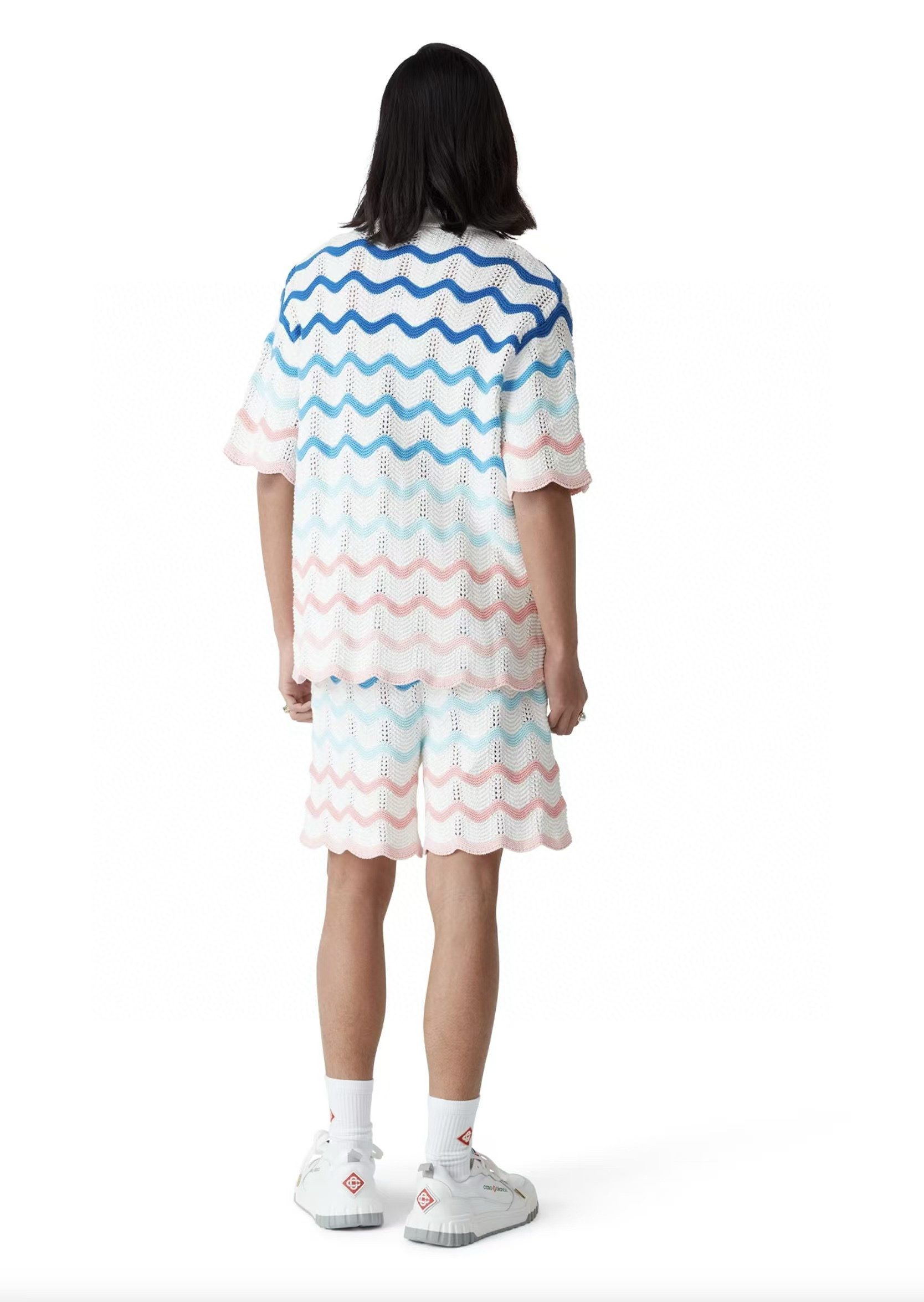 NIGO Casablanca Men's And Women's Summer Gradient Wave Print V-neck Single Breasted Knit Short Sleeved Shirt Casual Knit Shorts Suit Set #nigo75833