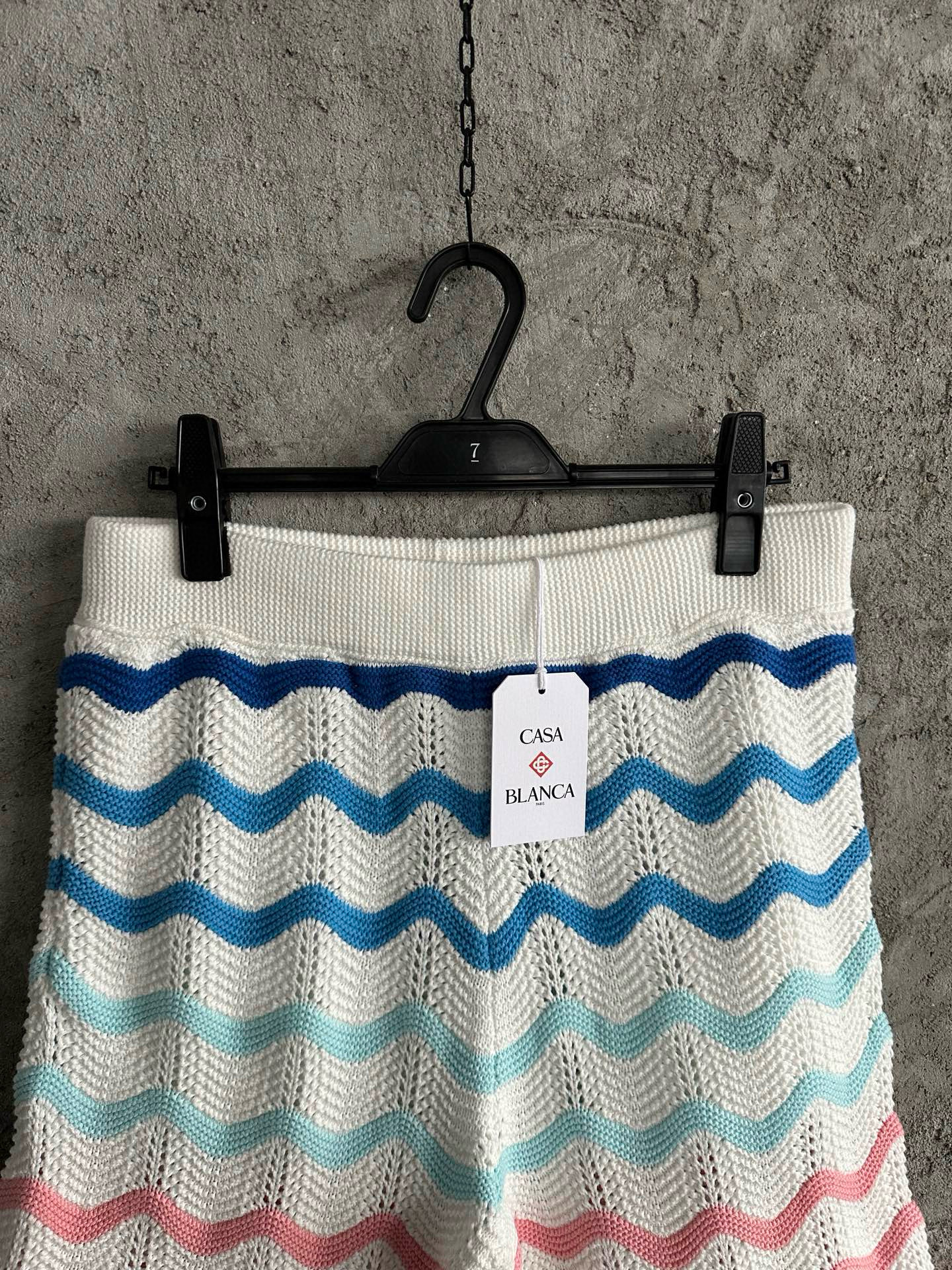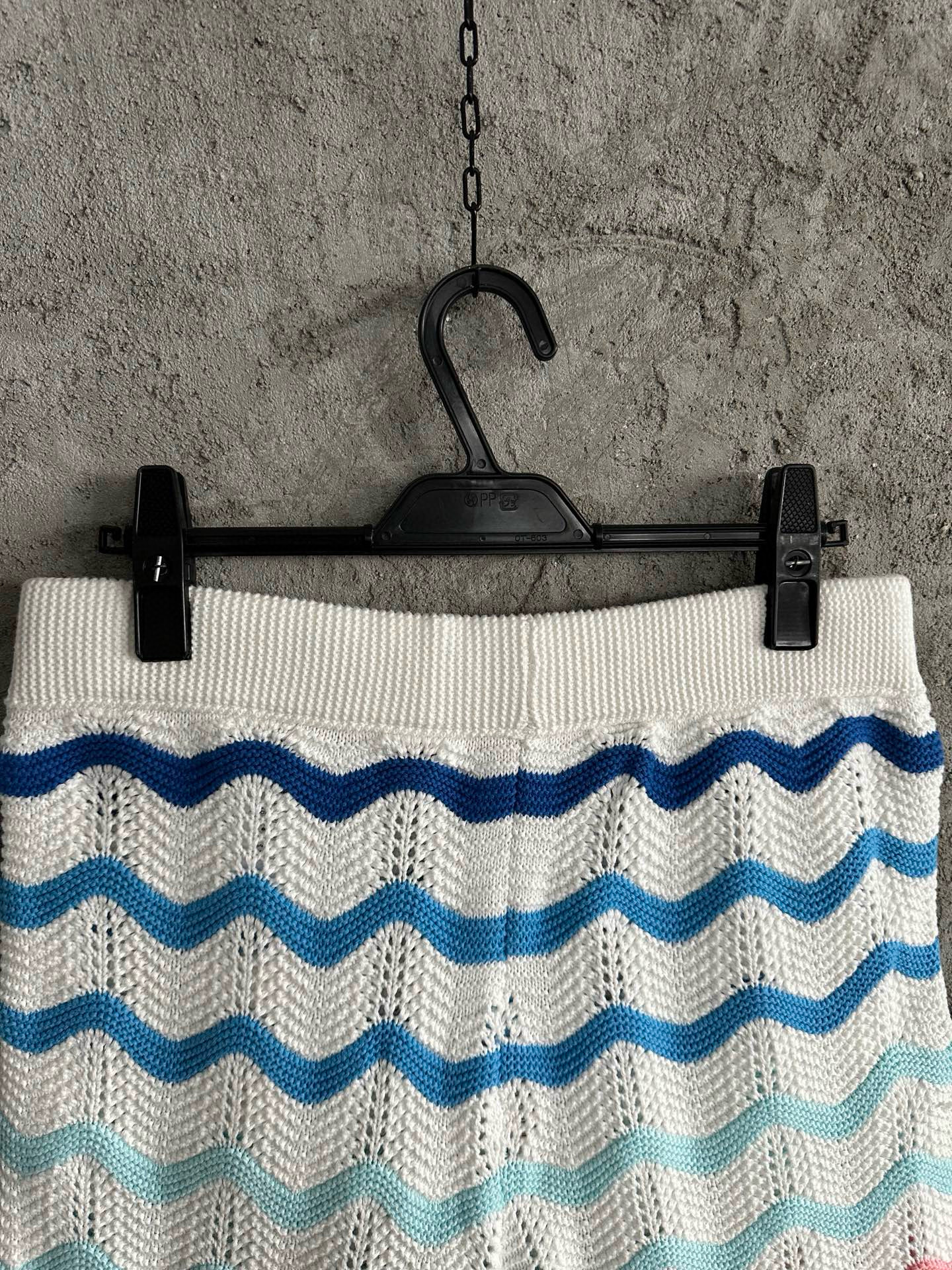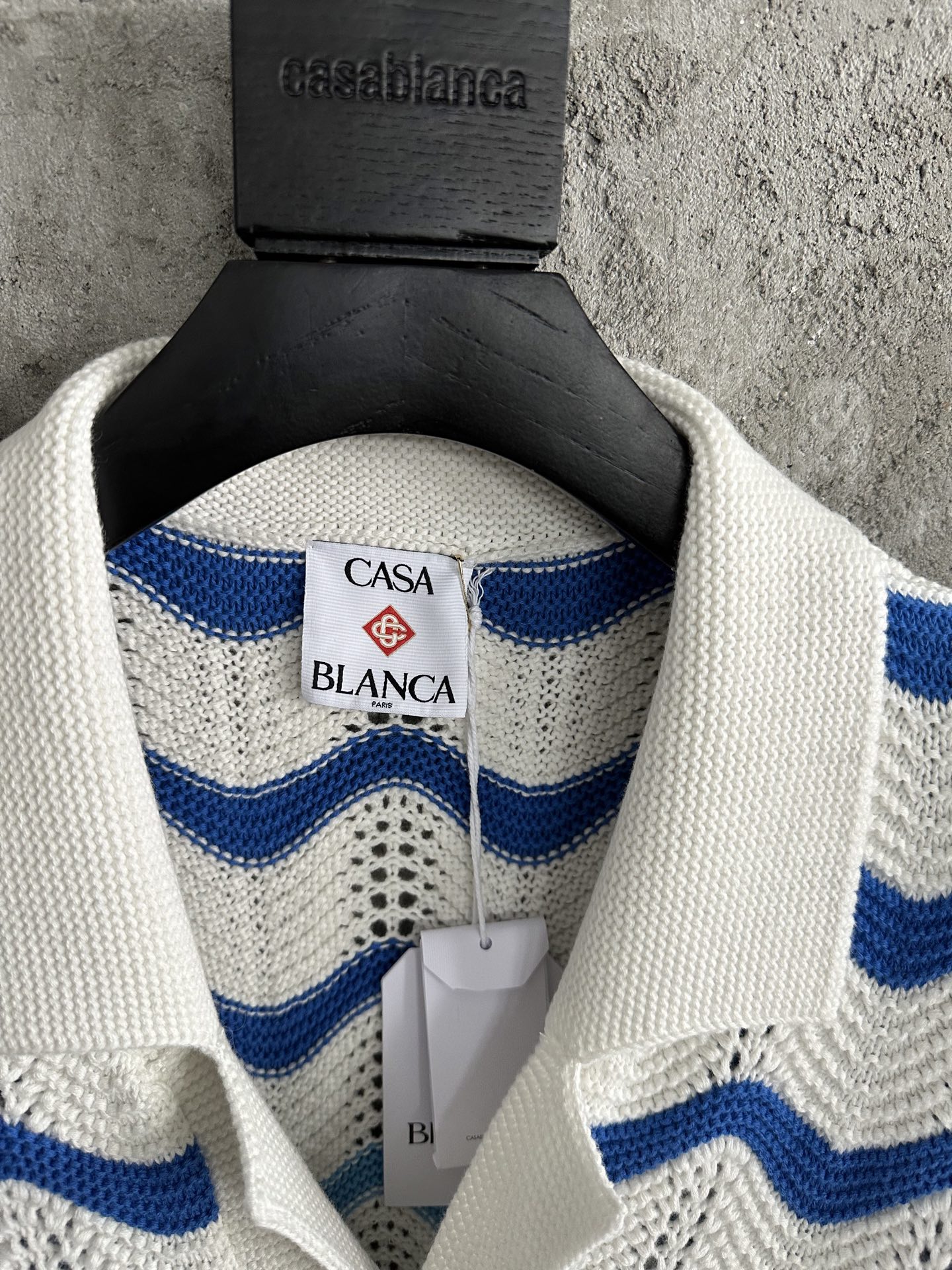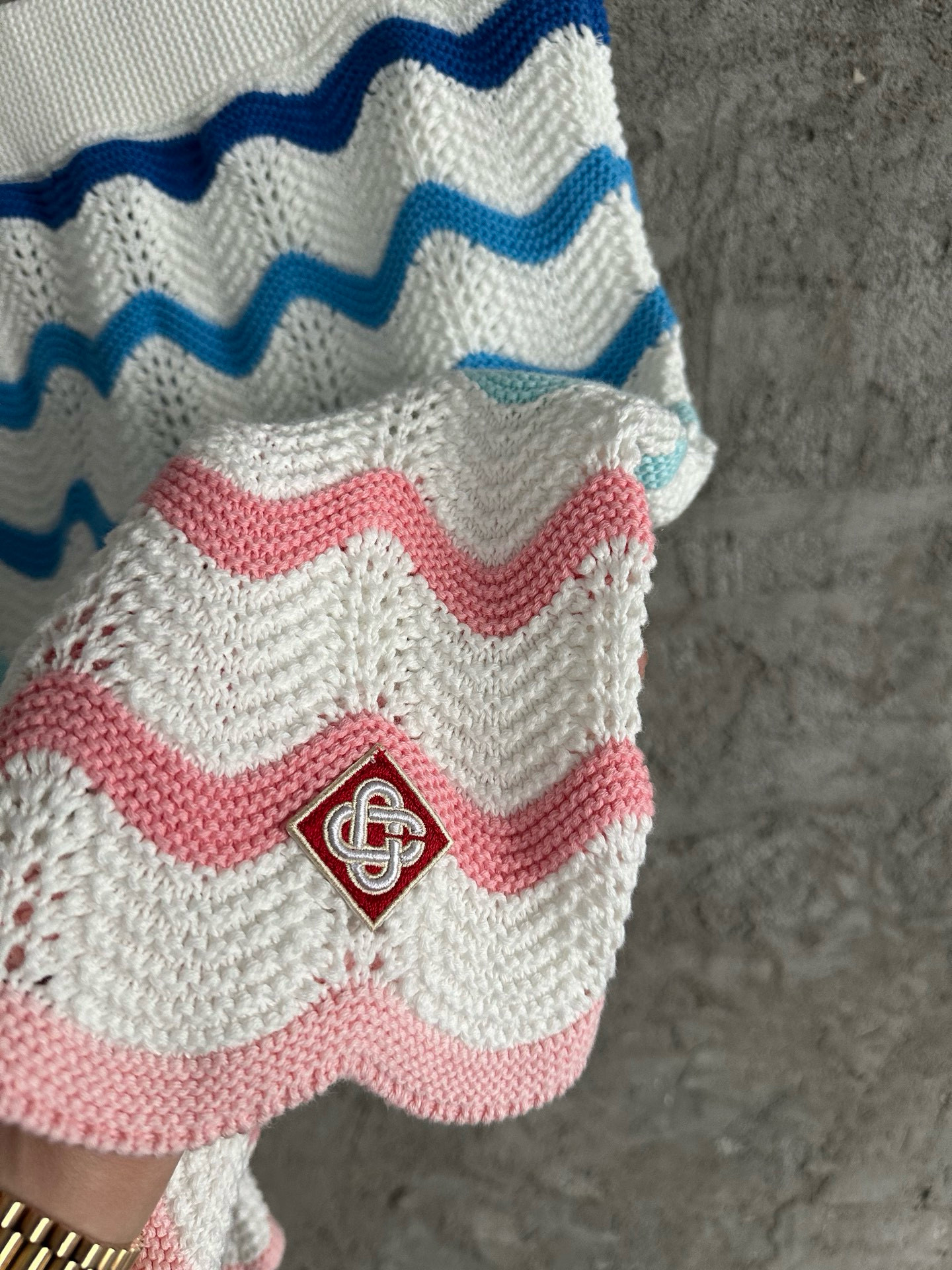 NIGO Casablanca Men's And Women's Summer Gradient Wave Print V-neck Single Breasted Knit Short Sleeved Shirt Casual Knit Shorts Suit Set #nigo75833