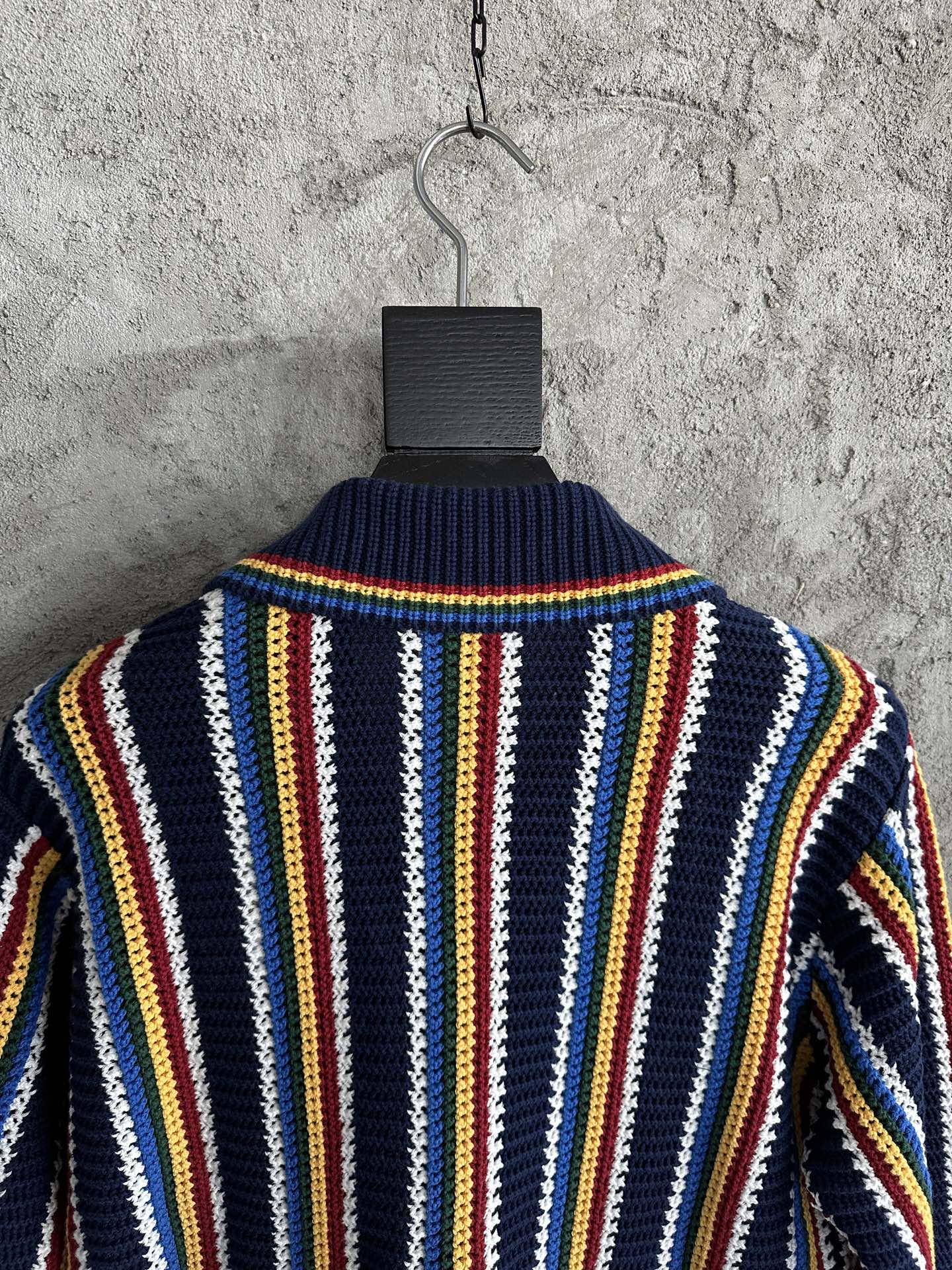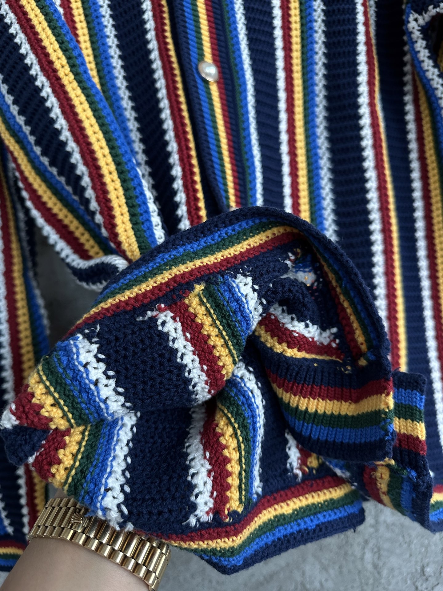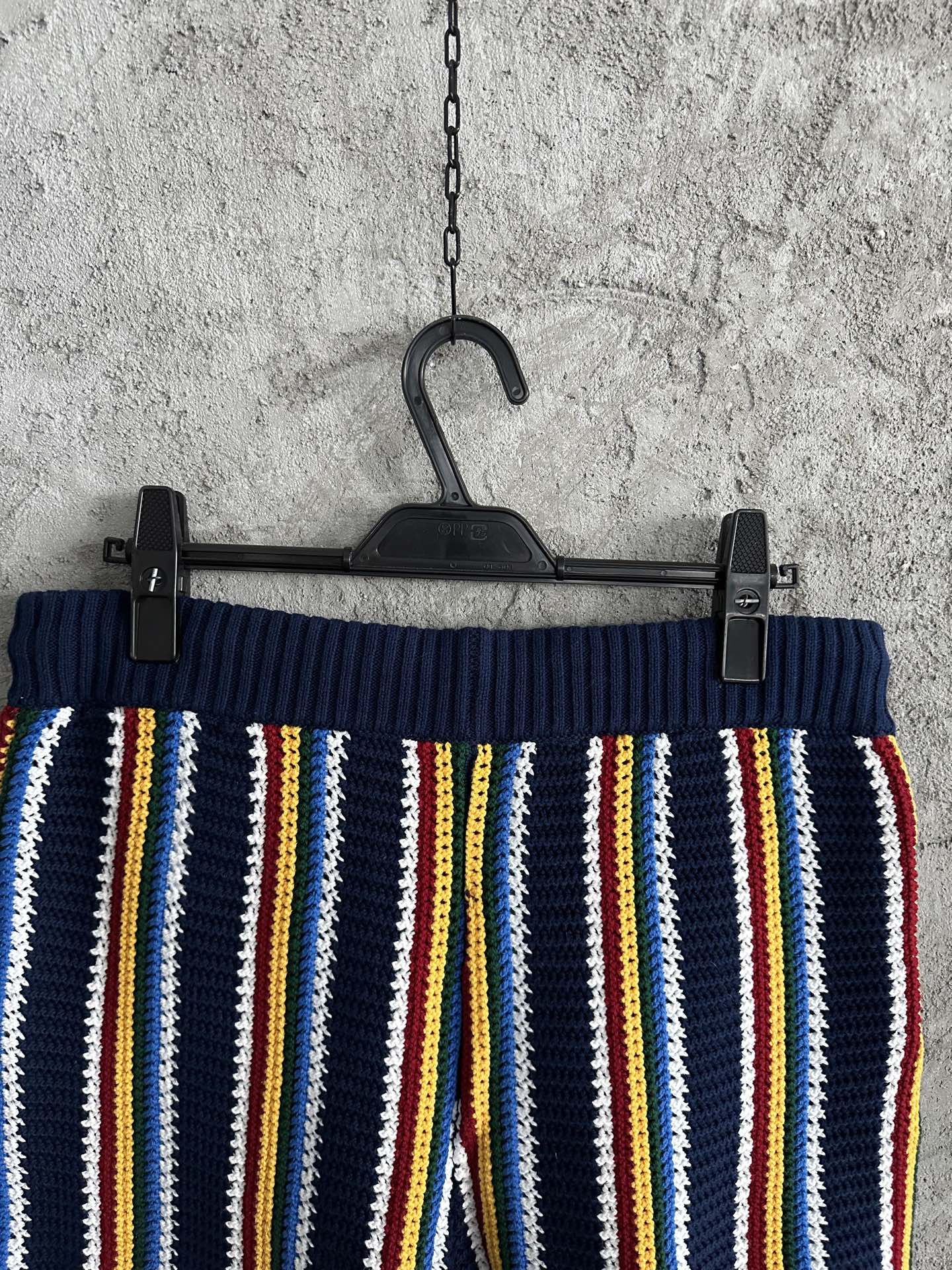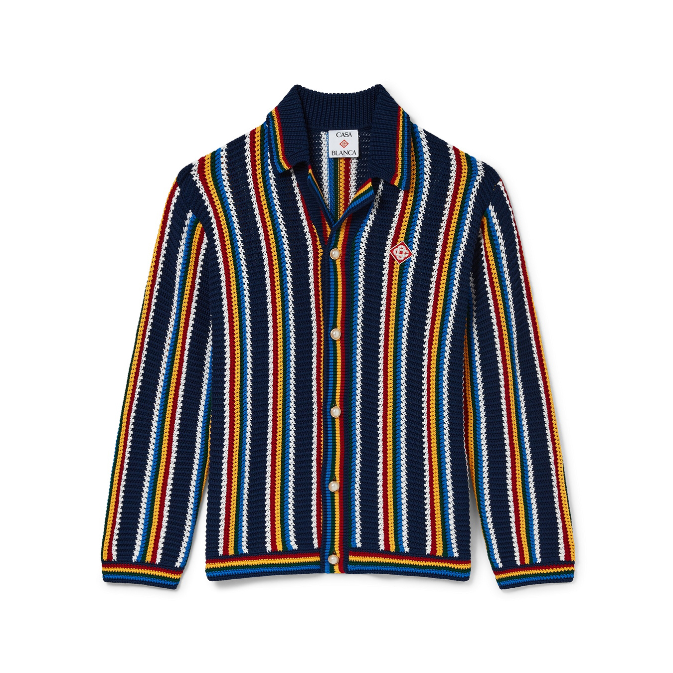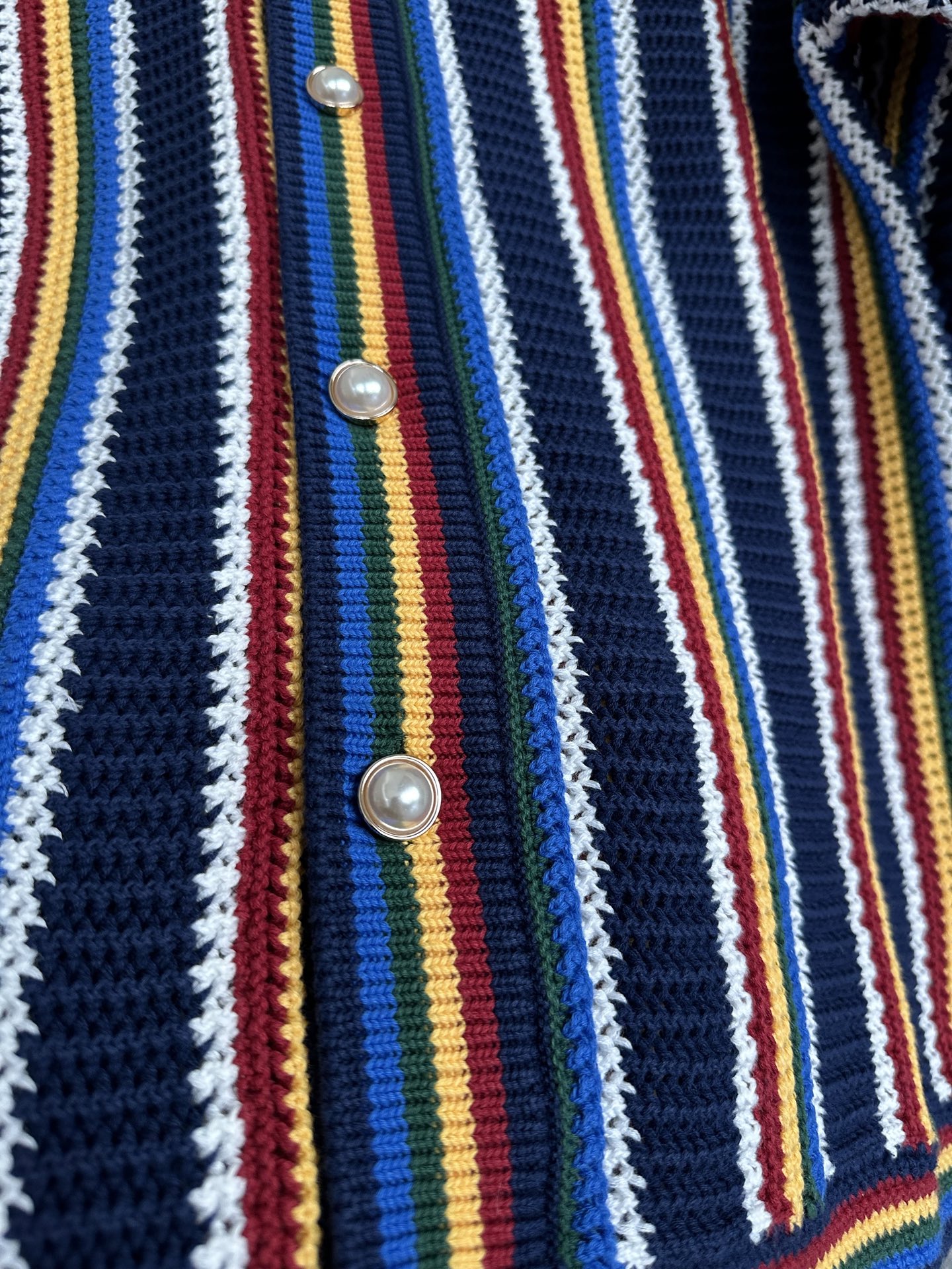 NIGO Casablanca Men's Spring And Summer Vertical Stripes Printed Single Breasted Long Sleeved Knitted Shirt Drawstring Tie Casual Knitted Shorts Suit Set #nigo76349