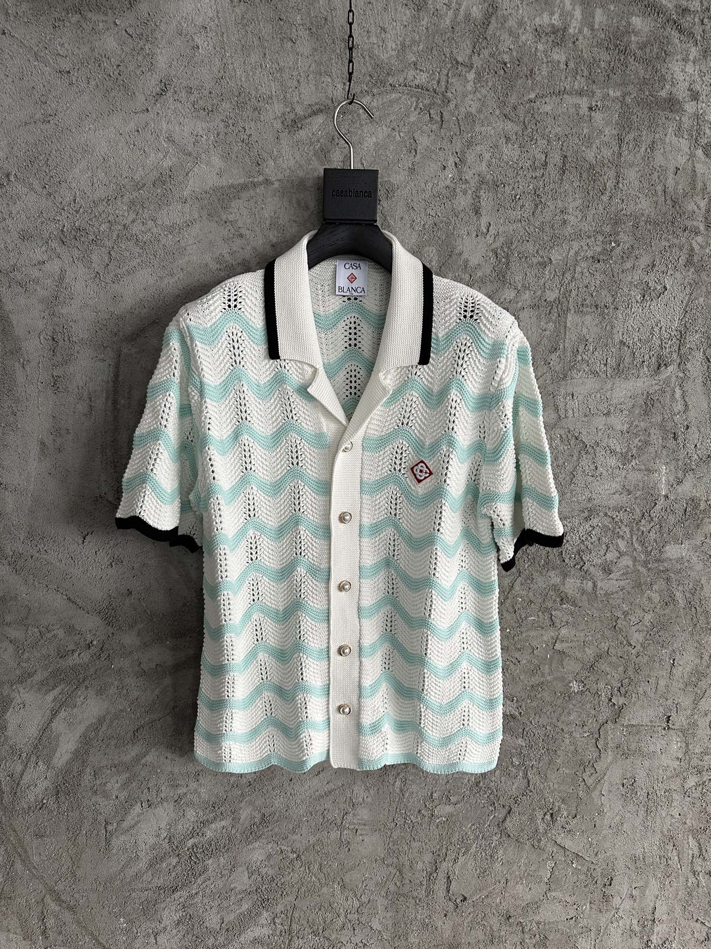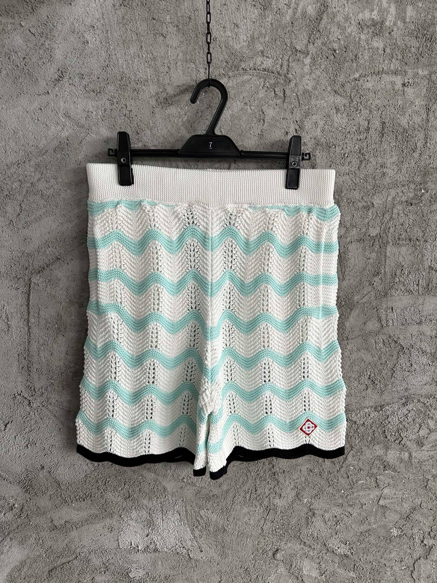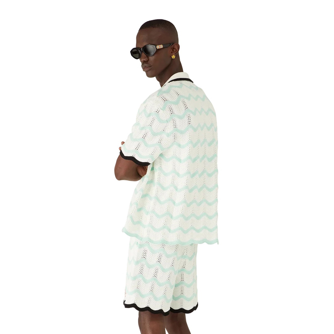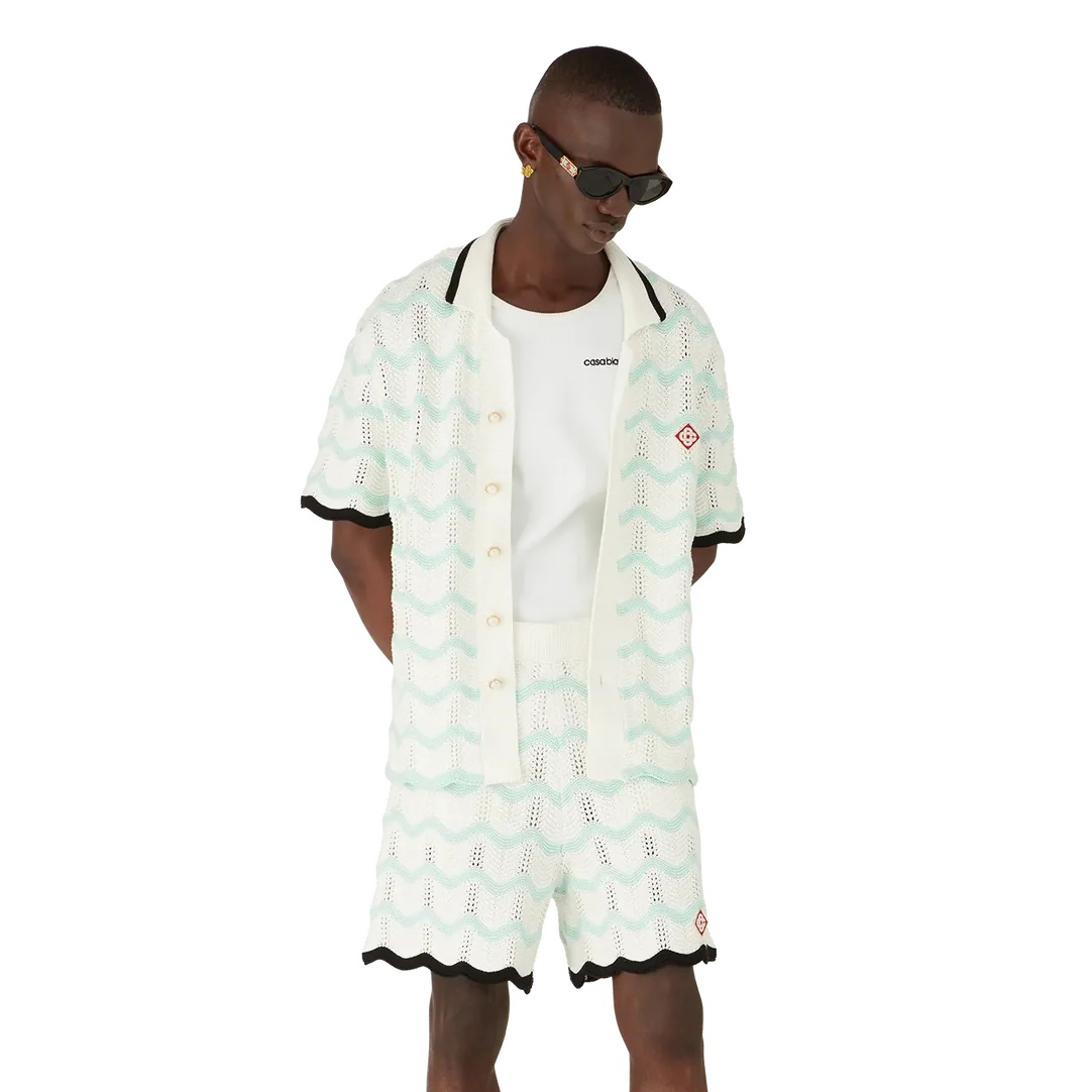 NIGO Casablanca Men's Summer Fashion Casual Knit Arch Wave Pattern Woven Pure Cotton Single Breasted Collar Shirt Waist Elastic Short Pants Suit Set #nigo78349