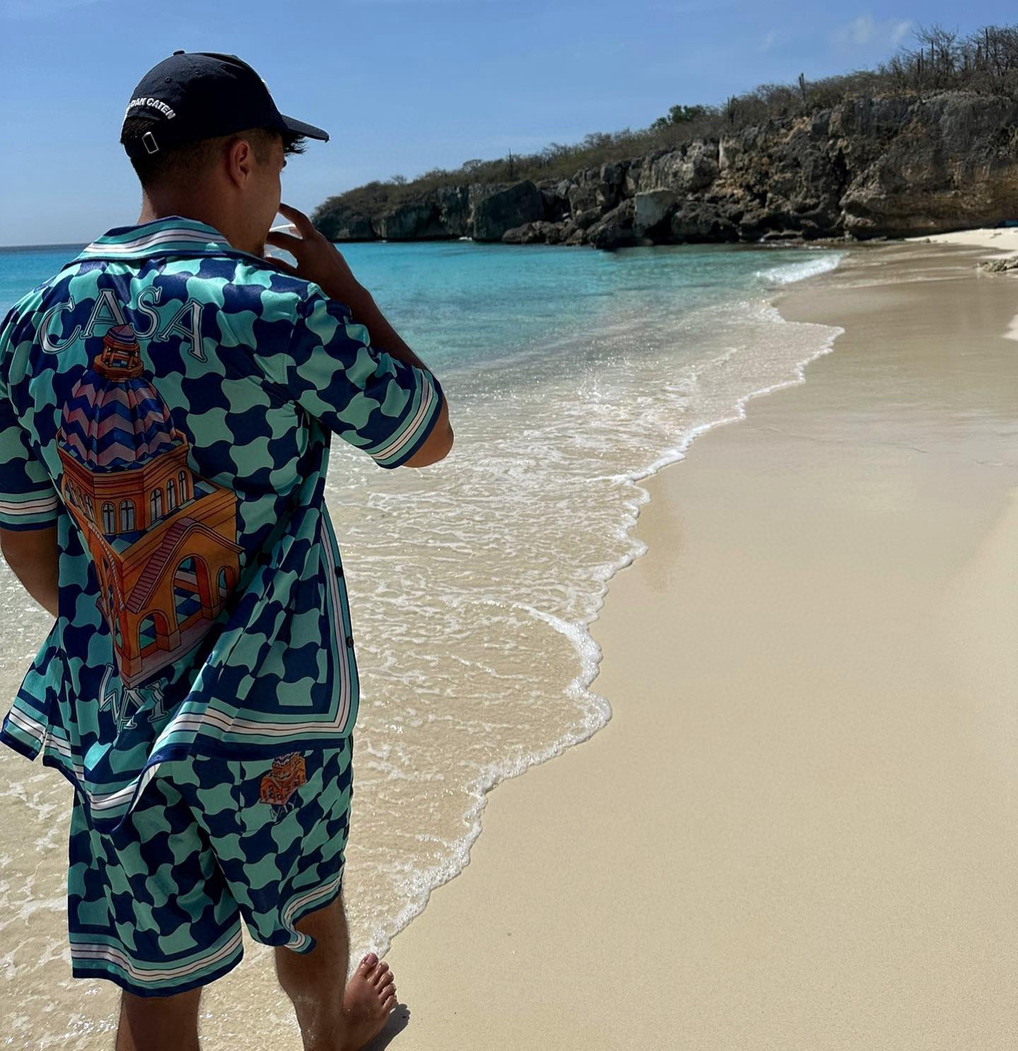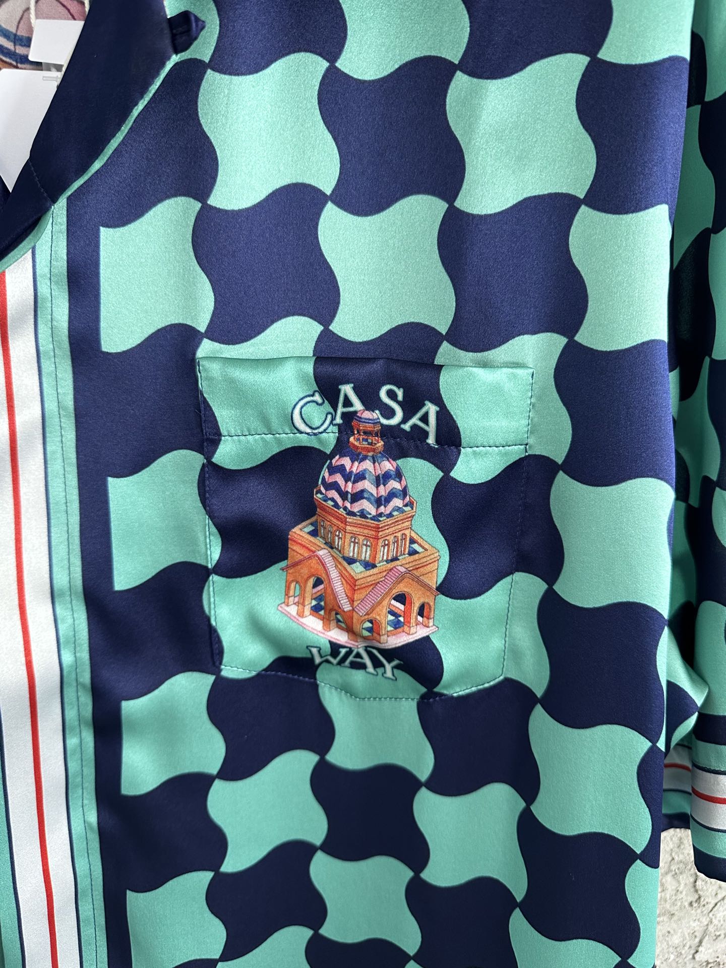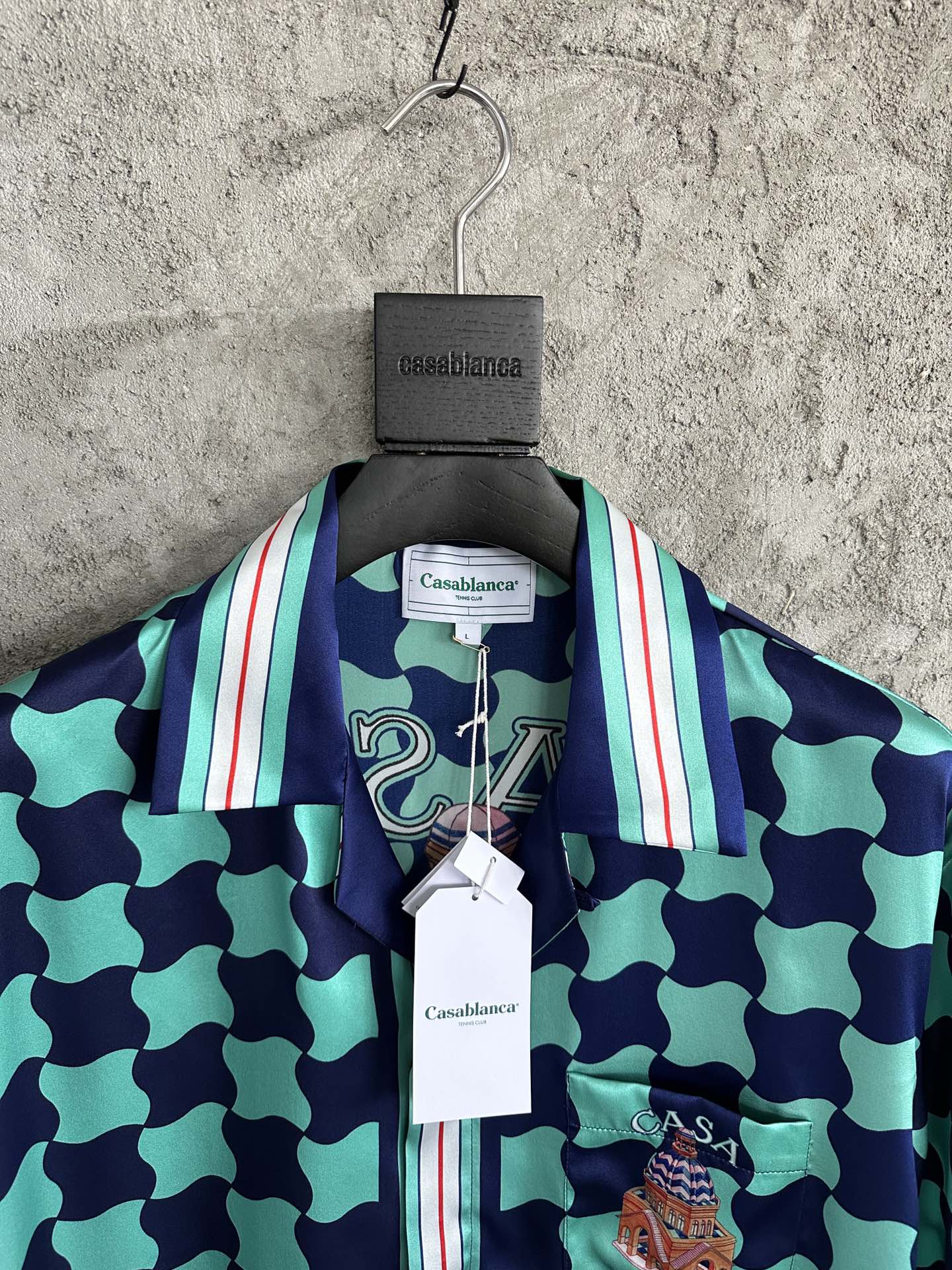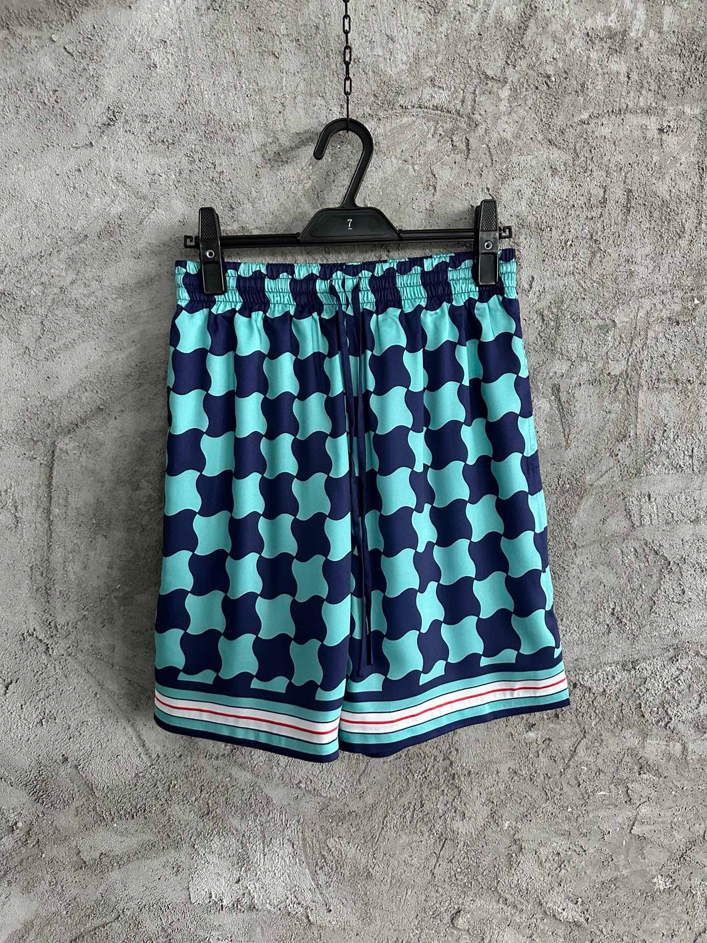 NIGO Casablanca Men's Summer Geometric Pattern Printed Single-Breasted Short-Sleeved Shirt and Casual Drawstring Shorts Set #nigo77127