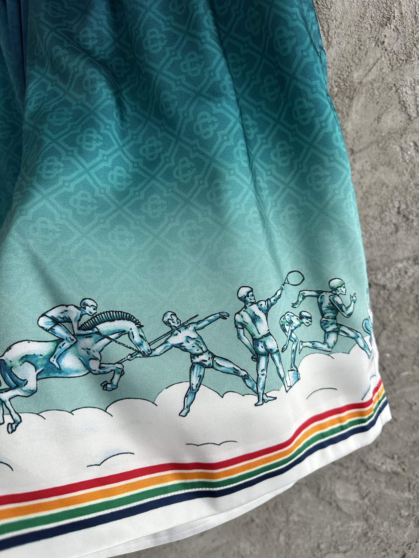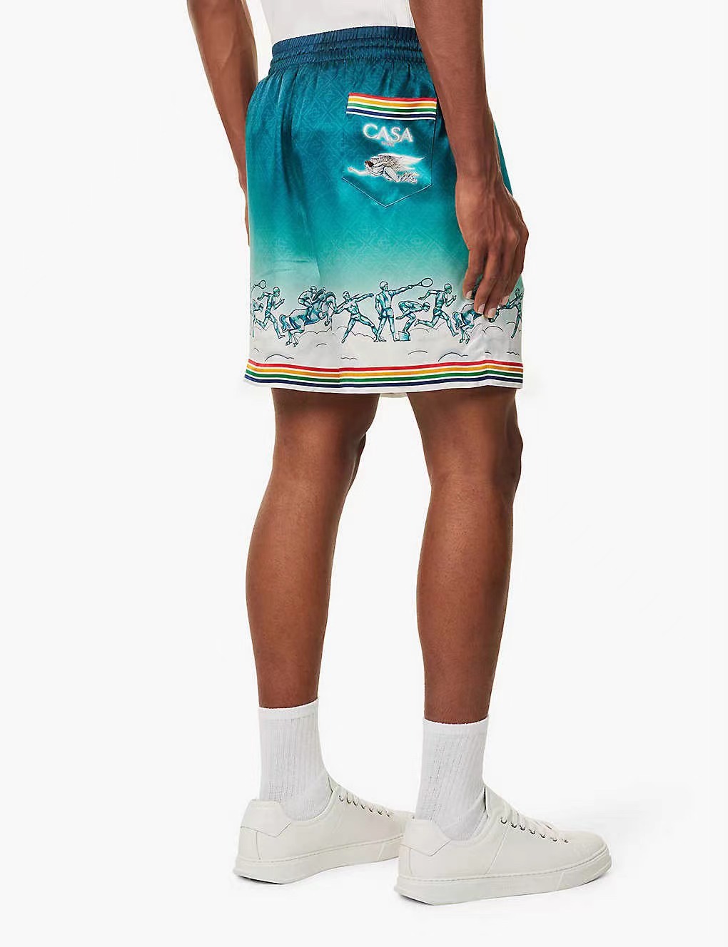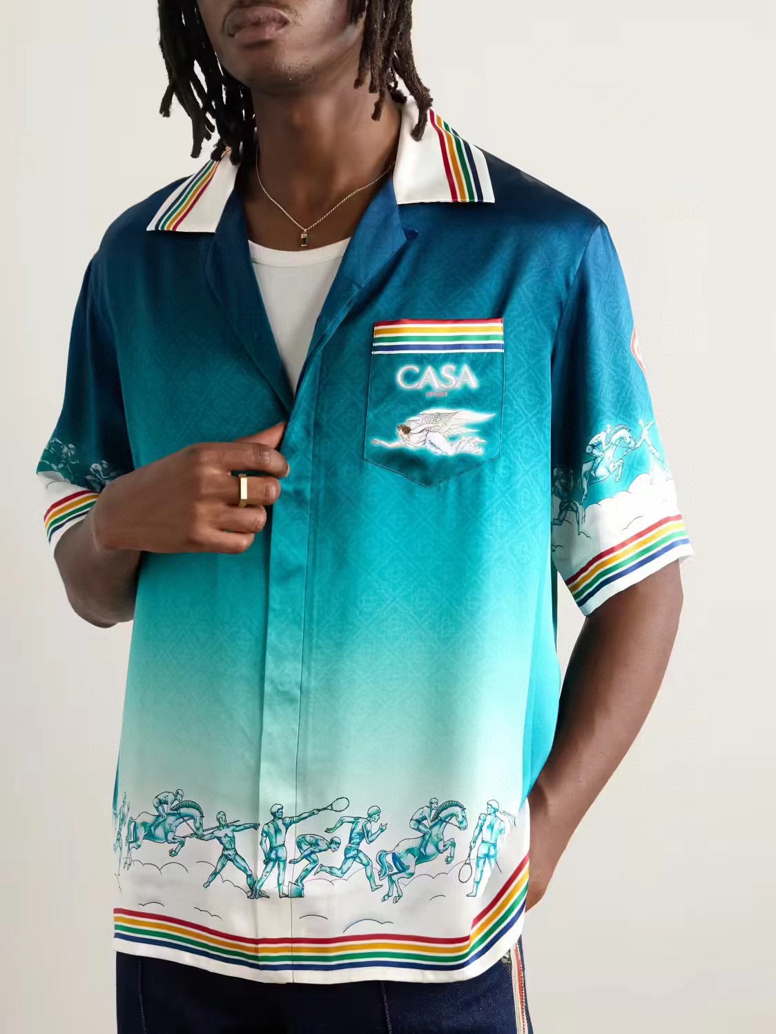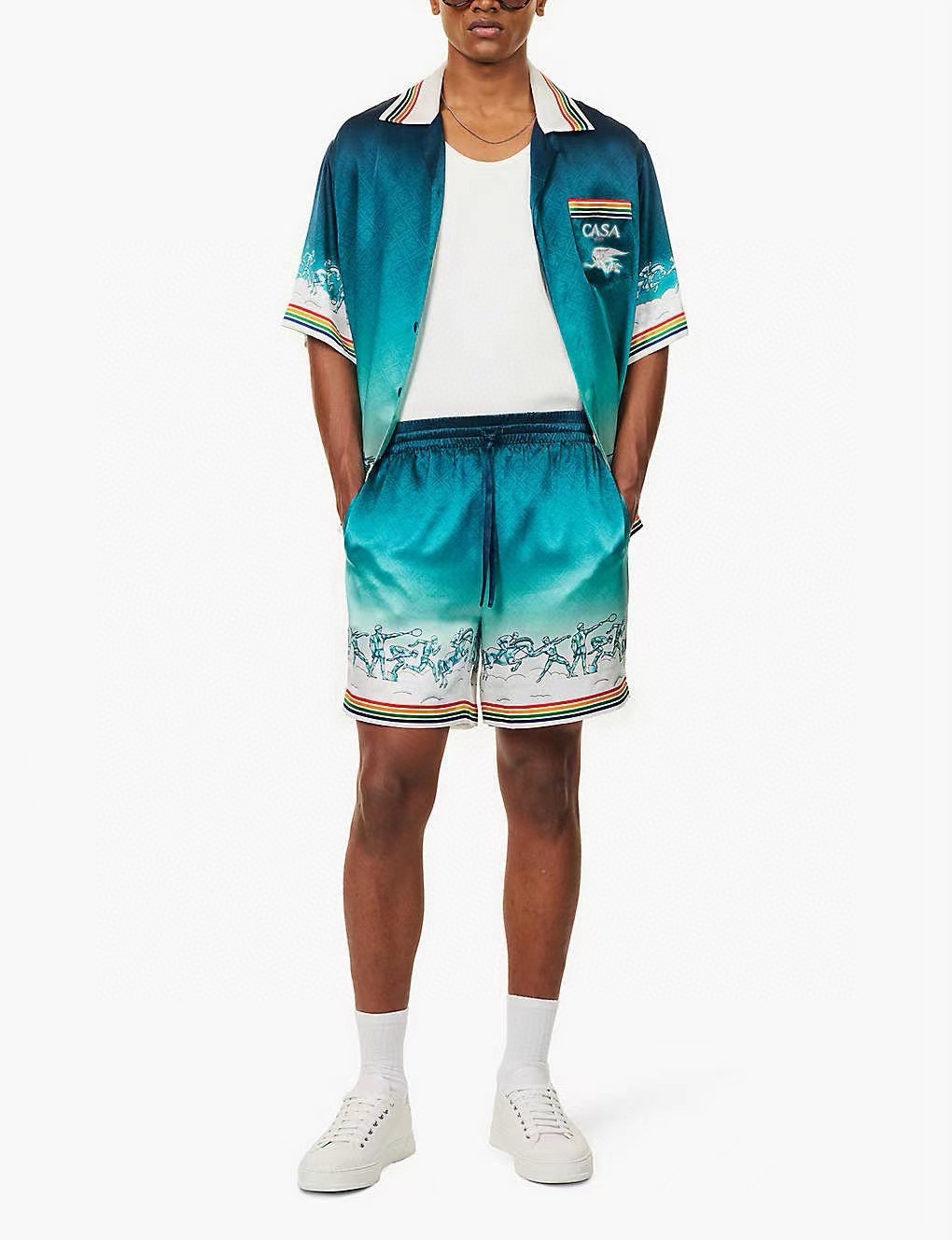 NIGO Casablanca Men's Summer Gradient Pattern Printed Lapel Loose Single Breasted Short Sleeve Shirt Tie Stretch Waistband Shorts Set Suit #nigo73425