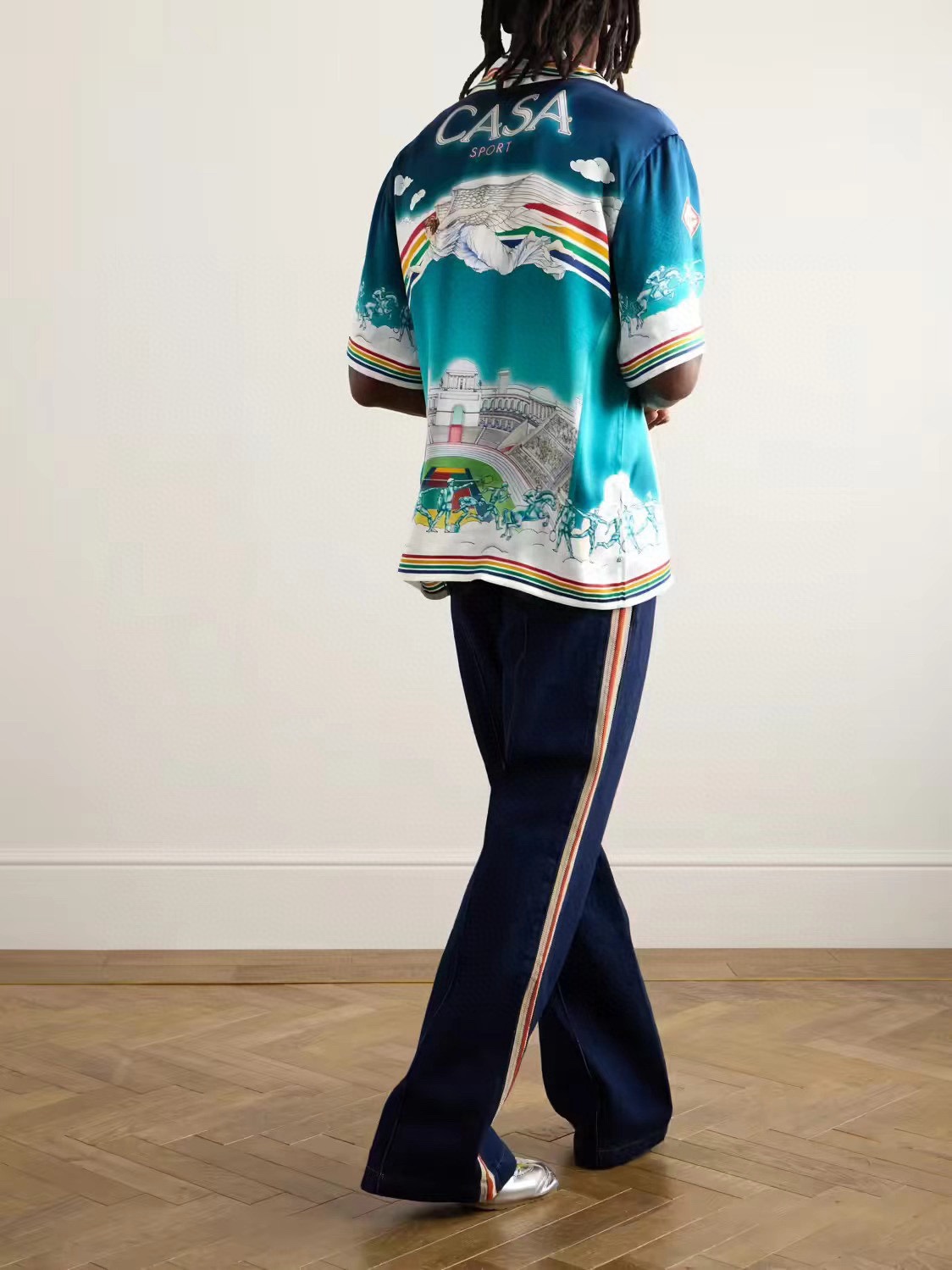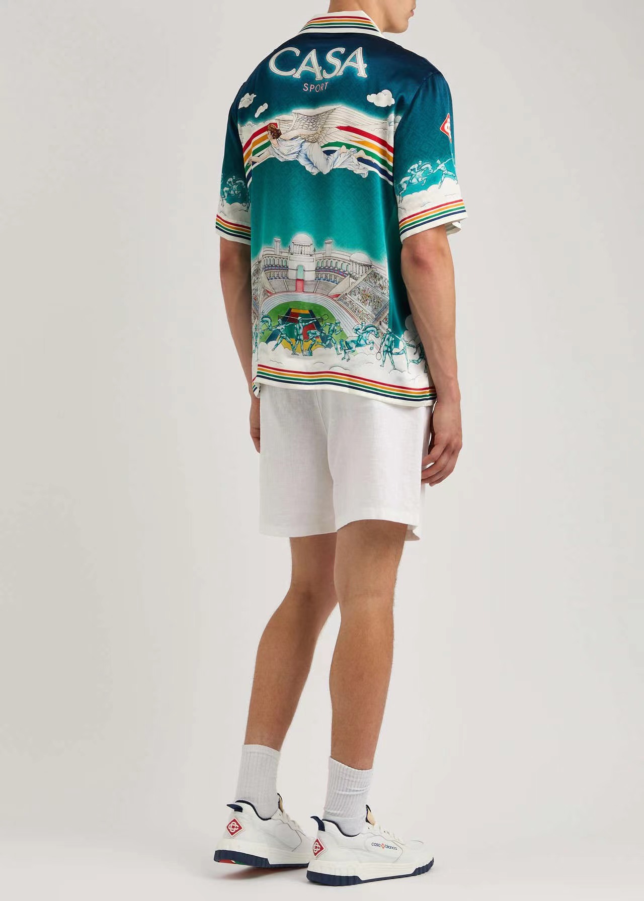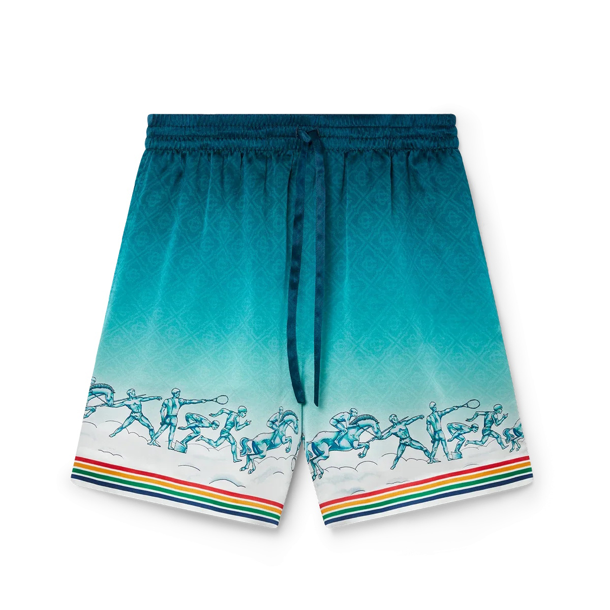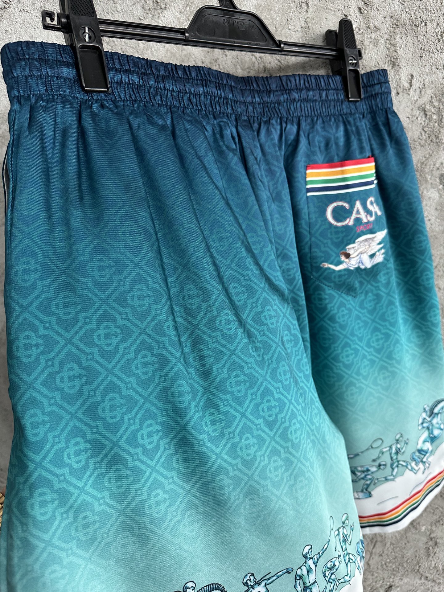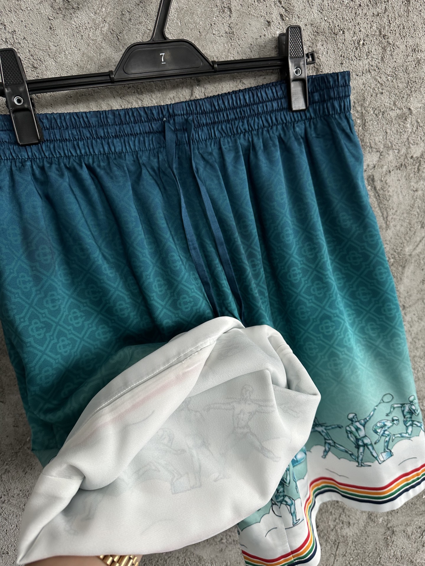 NIGO Casablanca Men's Summer Gradient Pattern Printed Lapel Loose Single Breasted Short Sleeve Shirt Tie Stretch Waistband Shorts Set Suit #nigo73425