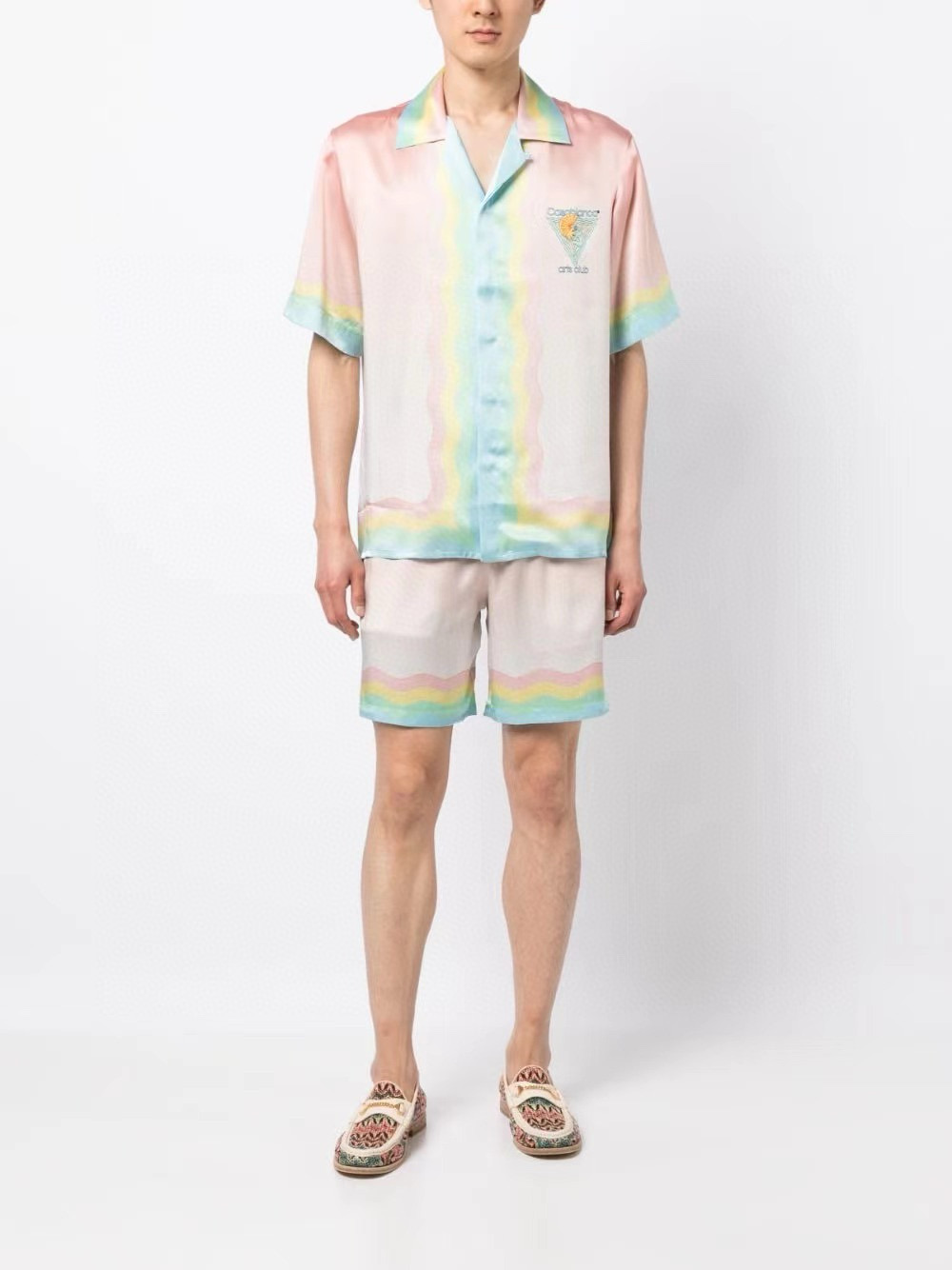 NIGO Casablanca Men's Summer Gradient Pattern Printed Single-Button Short-Sleeved Shirt and Casual Shorts Set Suit #nigo77745