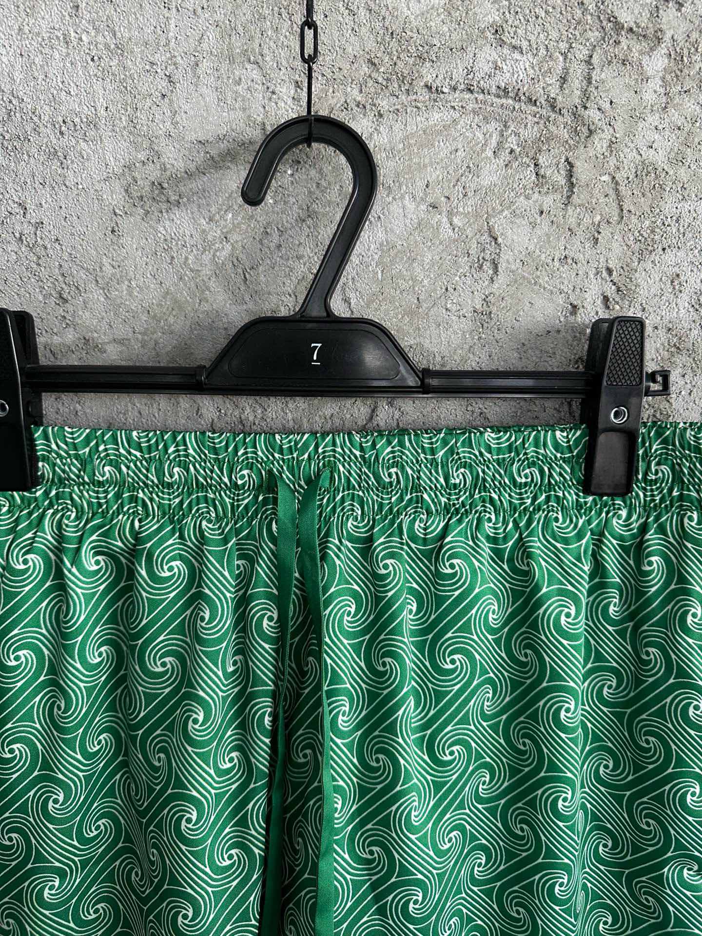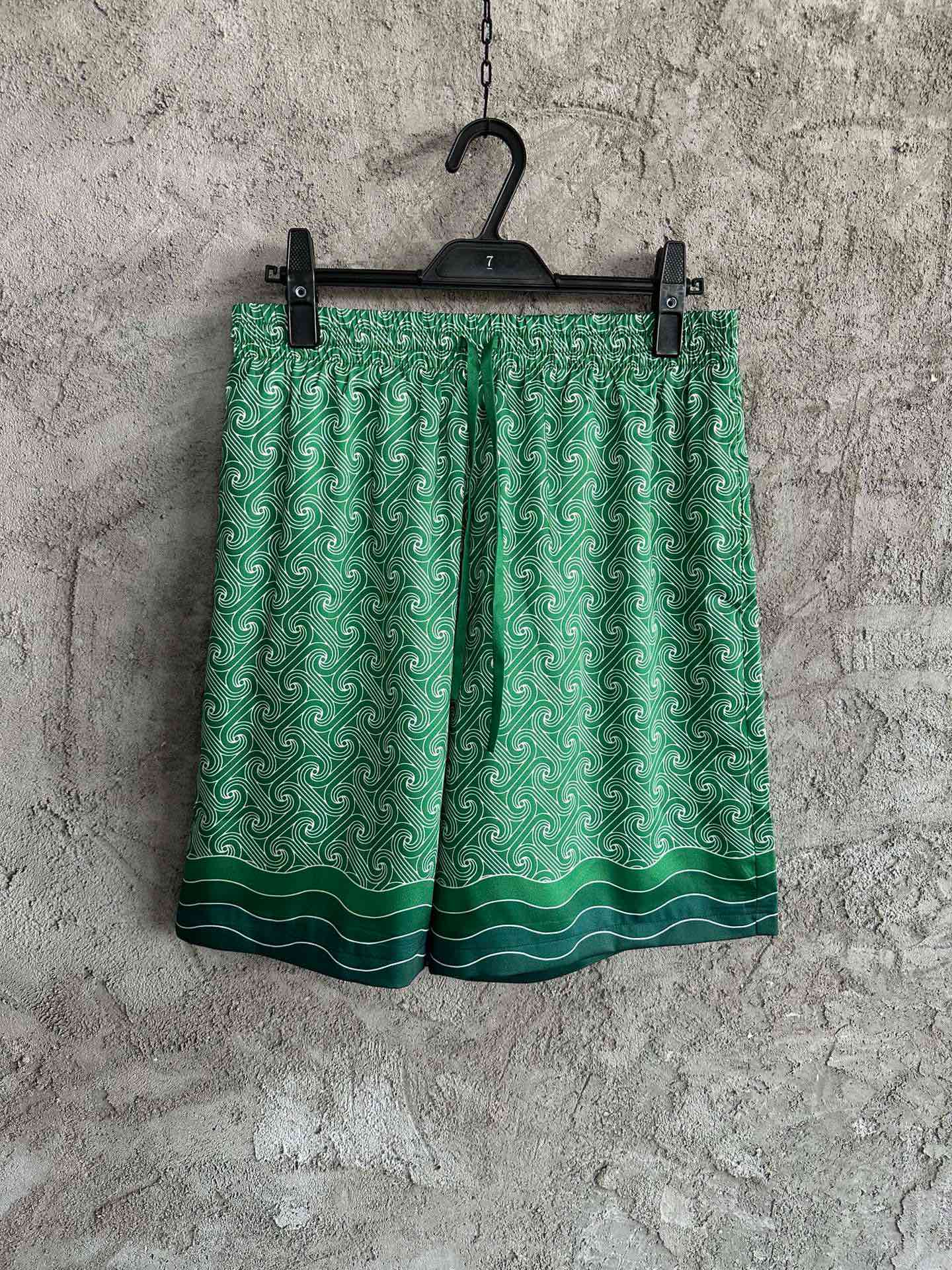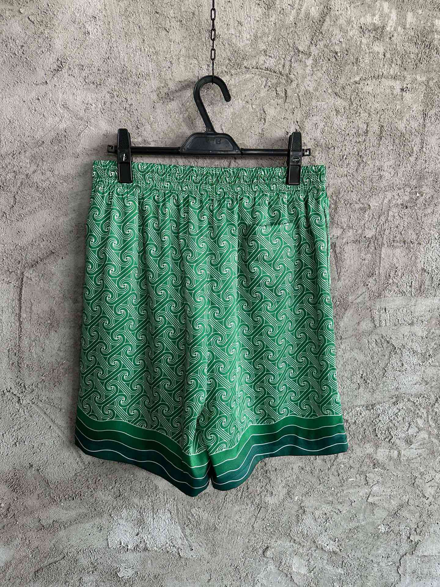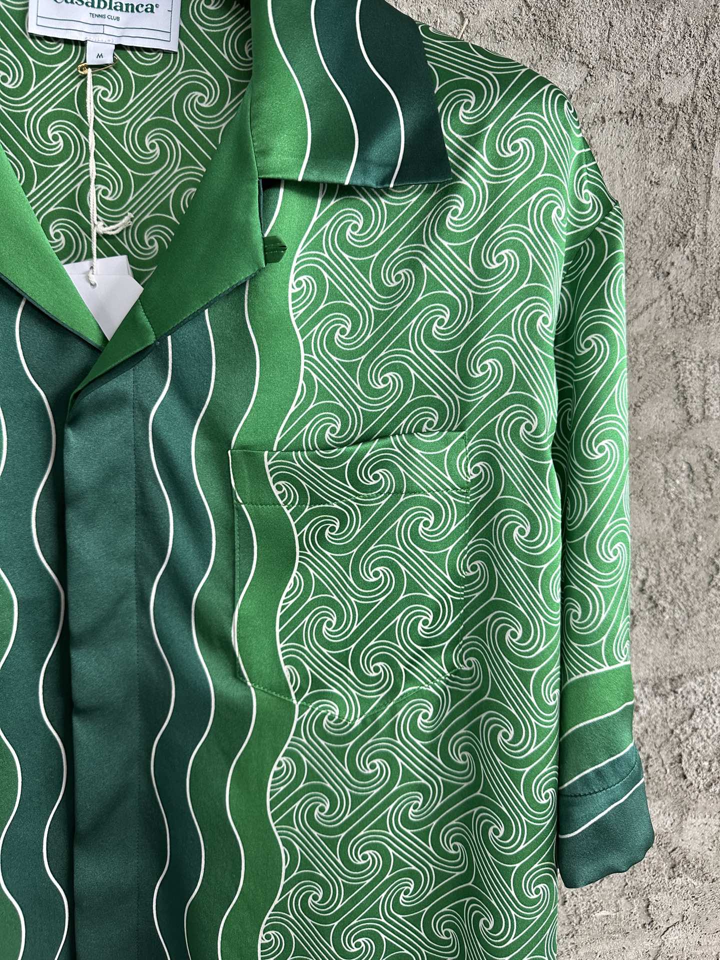 NIGO Casablanca Men's Summer Green Line Wave Print Lapel Single Breasted Short Sleeve Shirt Drawstring Tie Shorts Set Suit #nigo73575