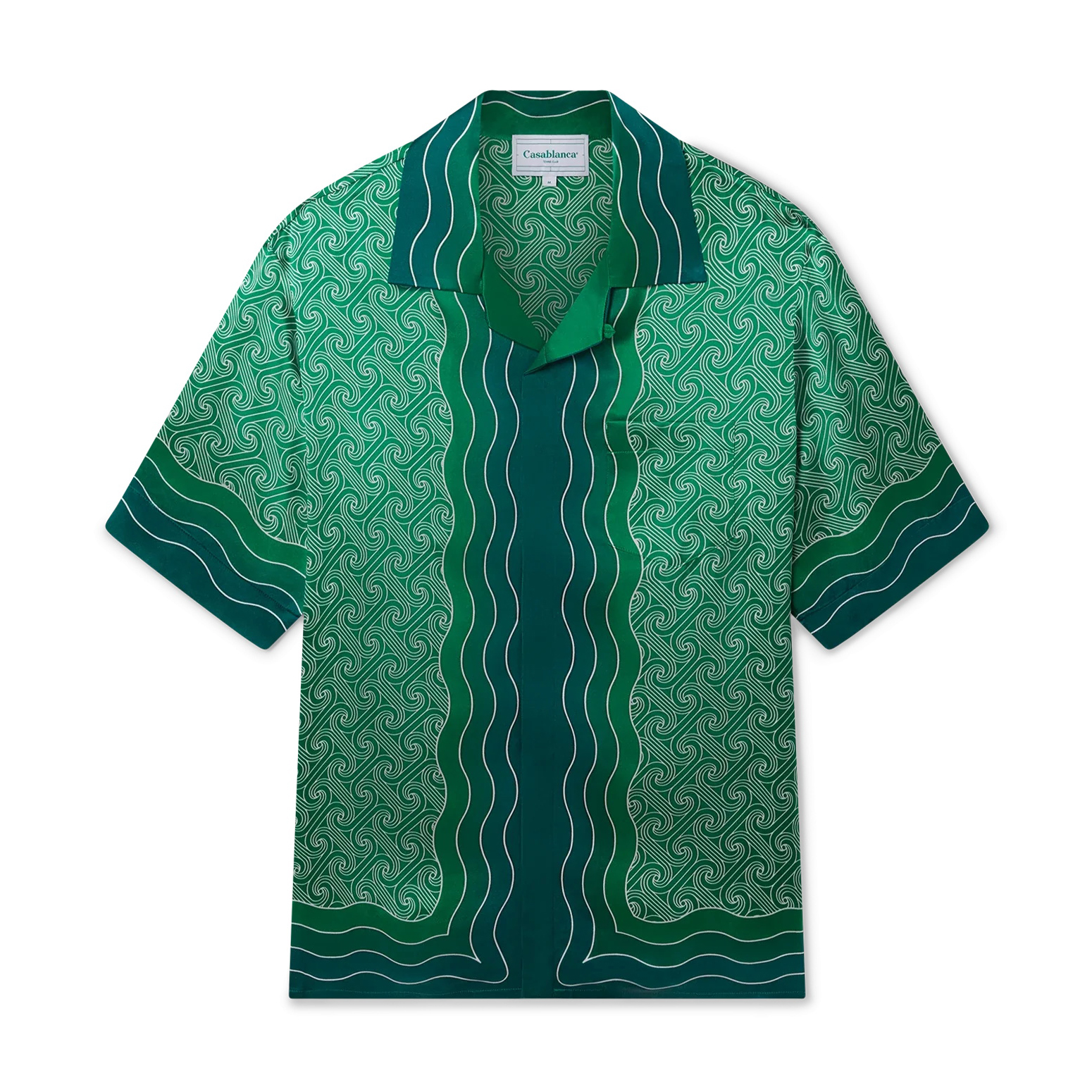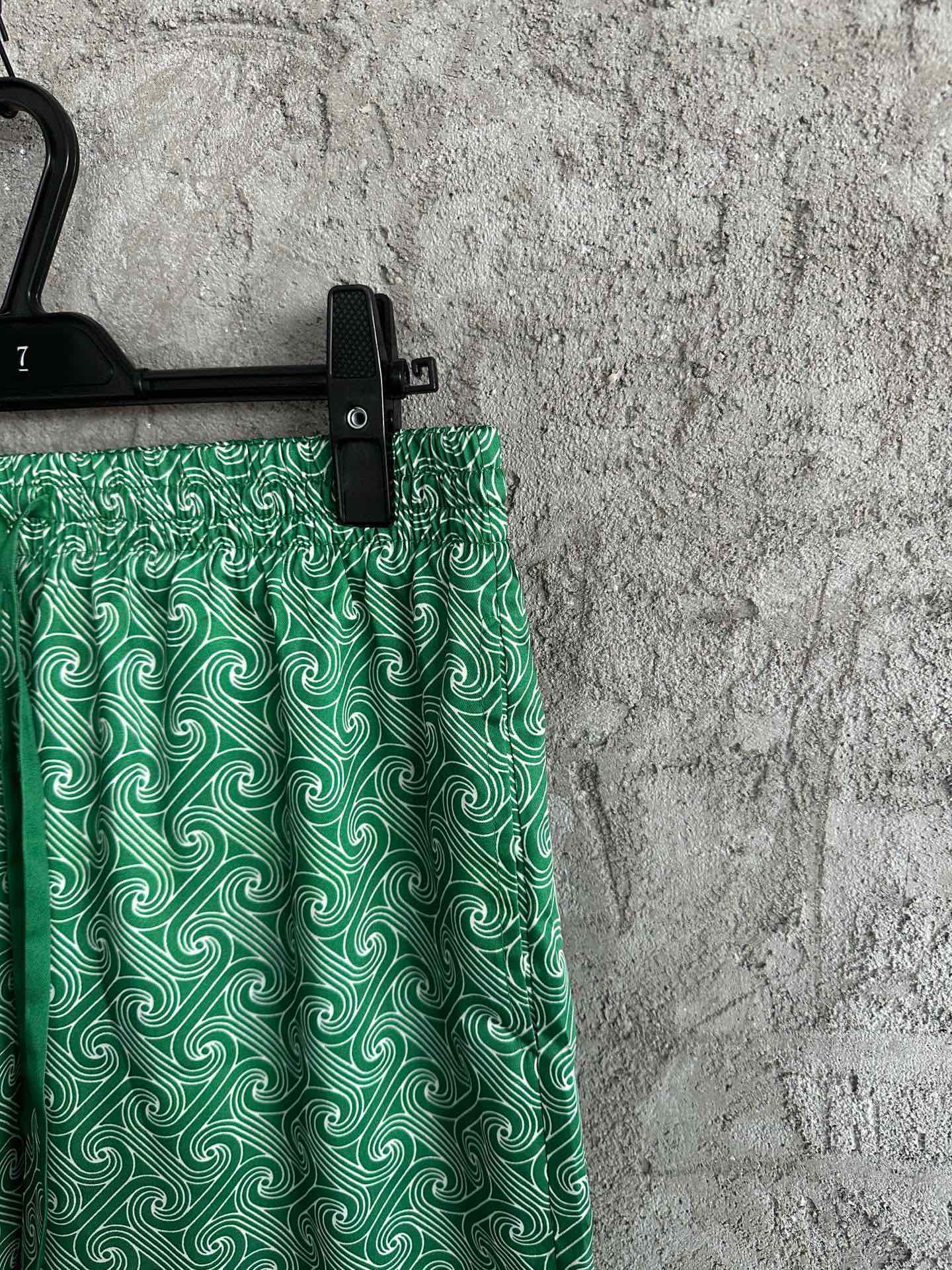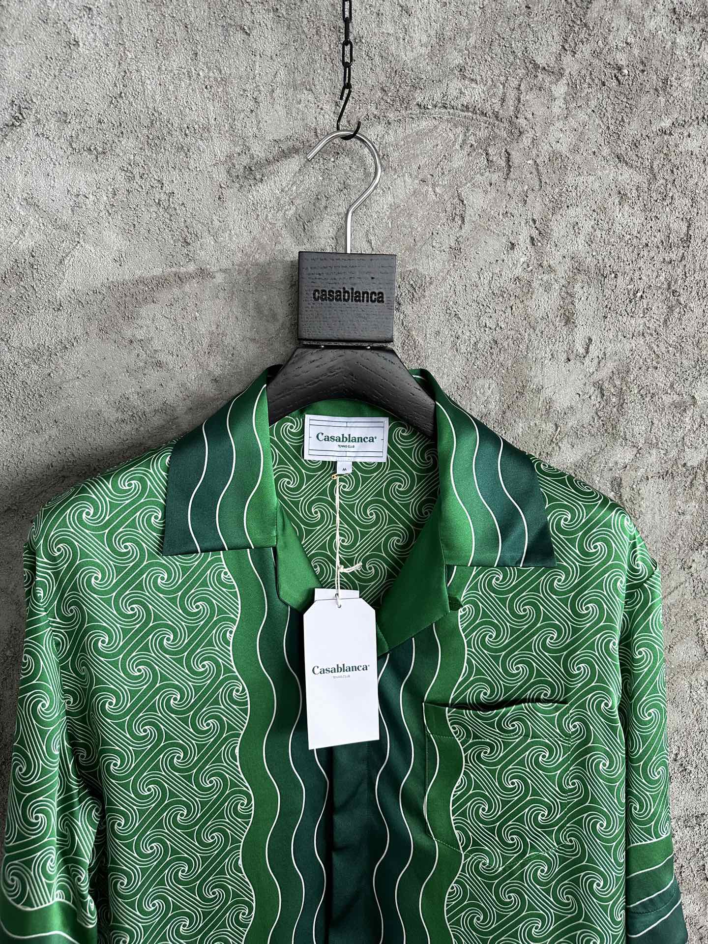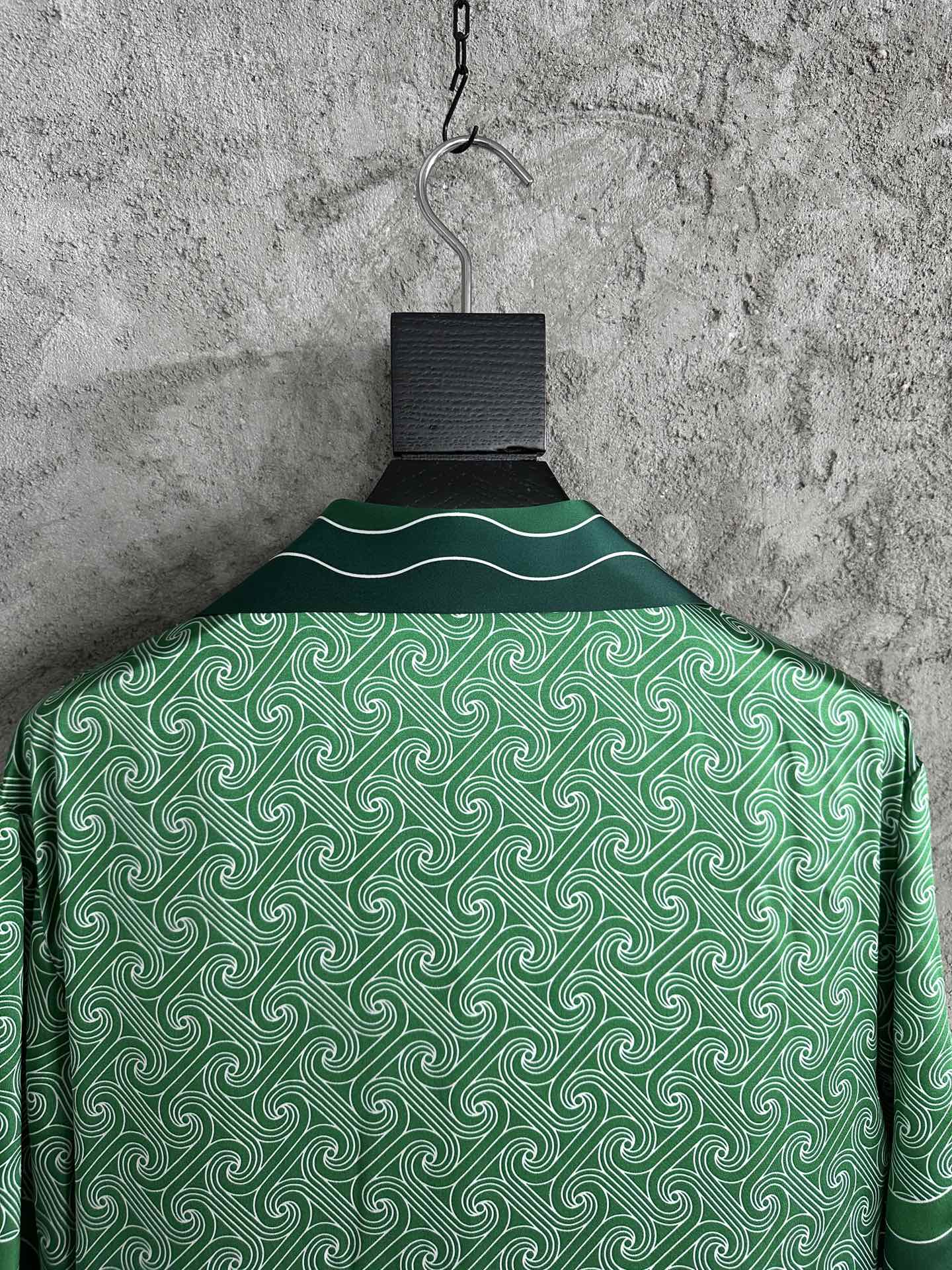 NIGO Casablanca Men's Summer Green Line Wave Print Lapel Single Breasted Short Sleeve Shirt Drawstring Tie Shorts Set Suit #nigo73575