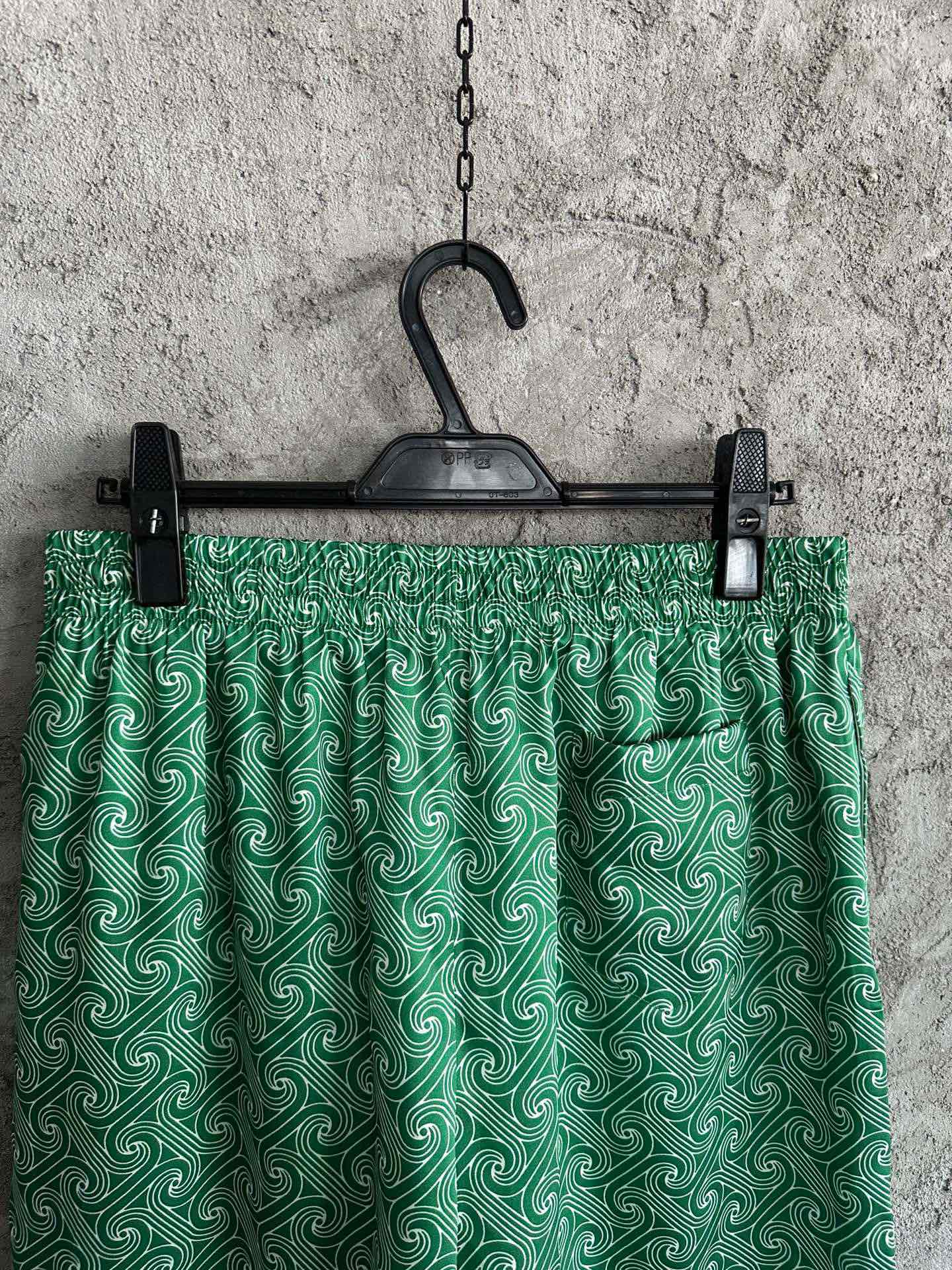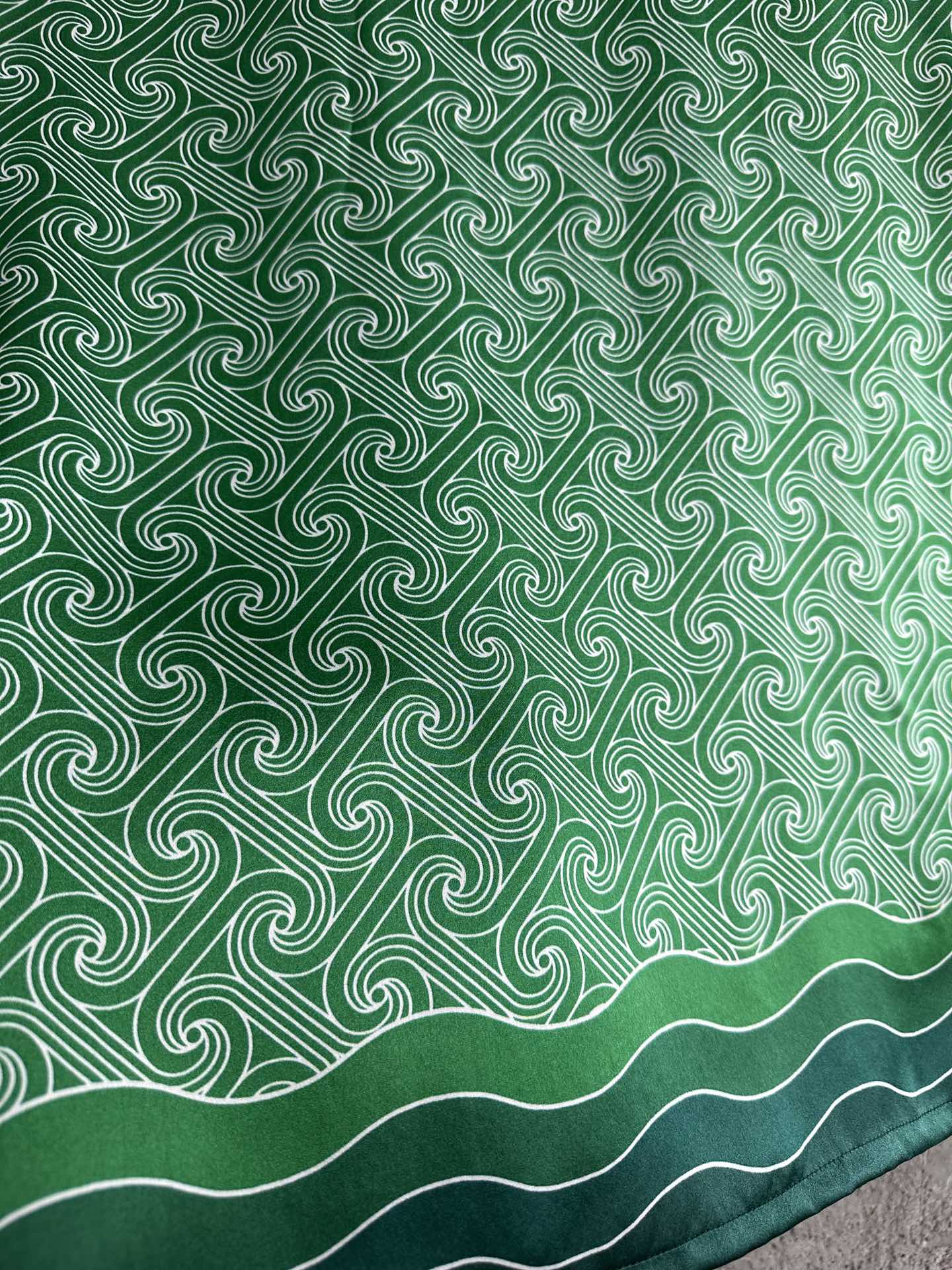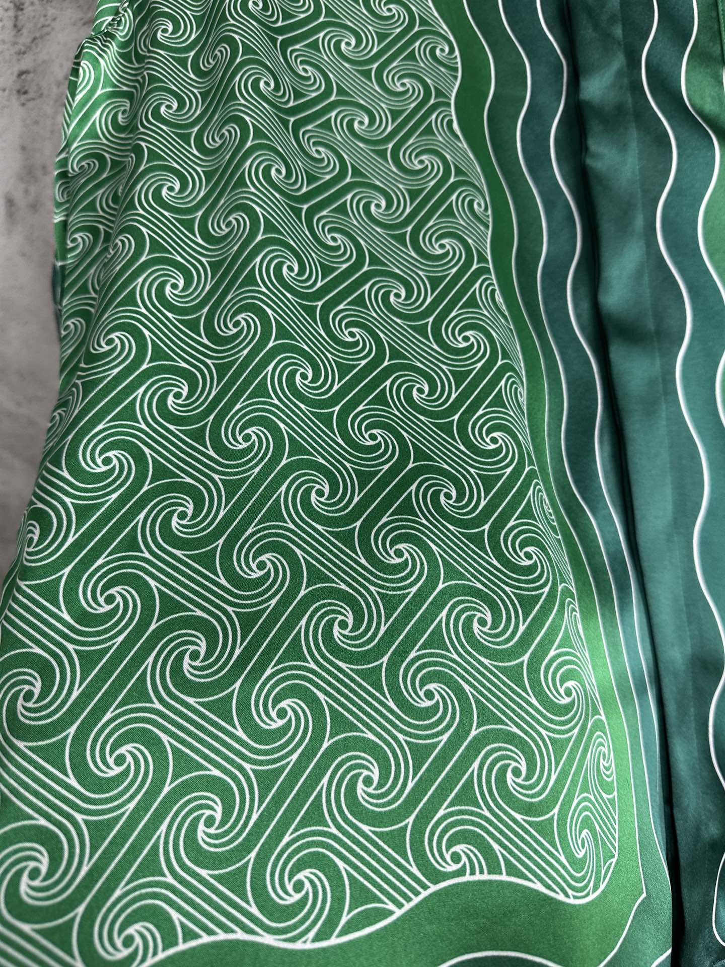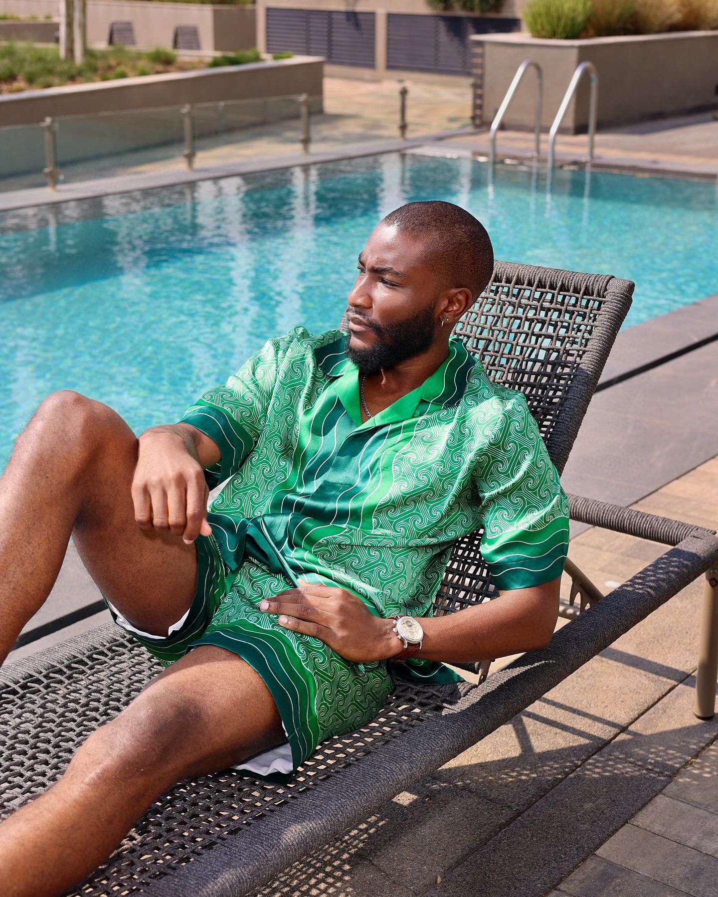 NIGO Casablanca Men's Summer Green Line Wave Print Lapel Single Breasted Short Sleeve Shirt Drawstring Tie Shorts Set Suit #nigo73575