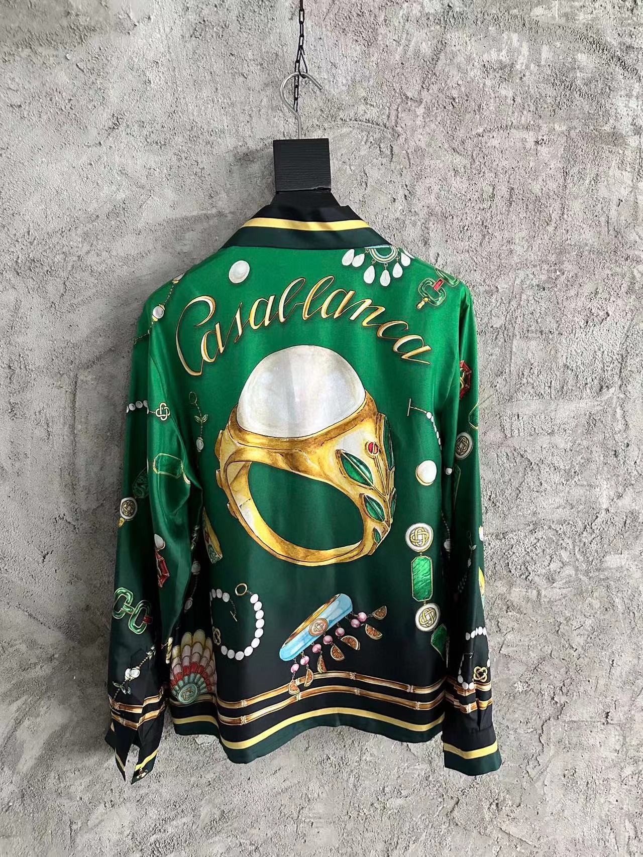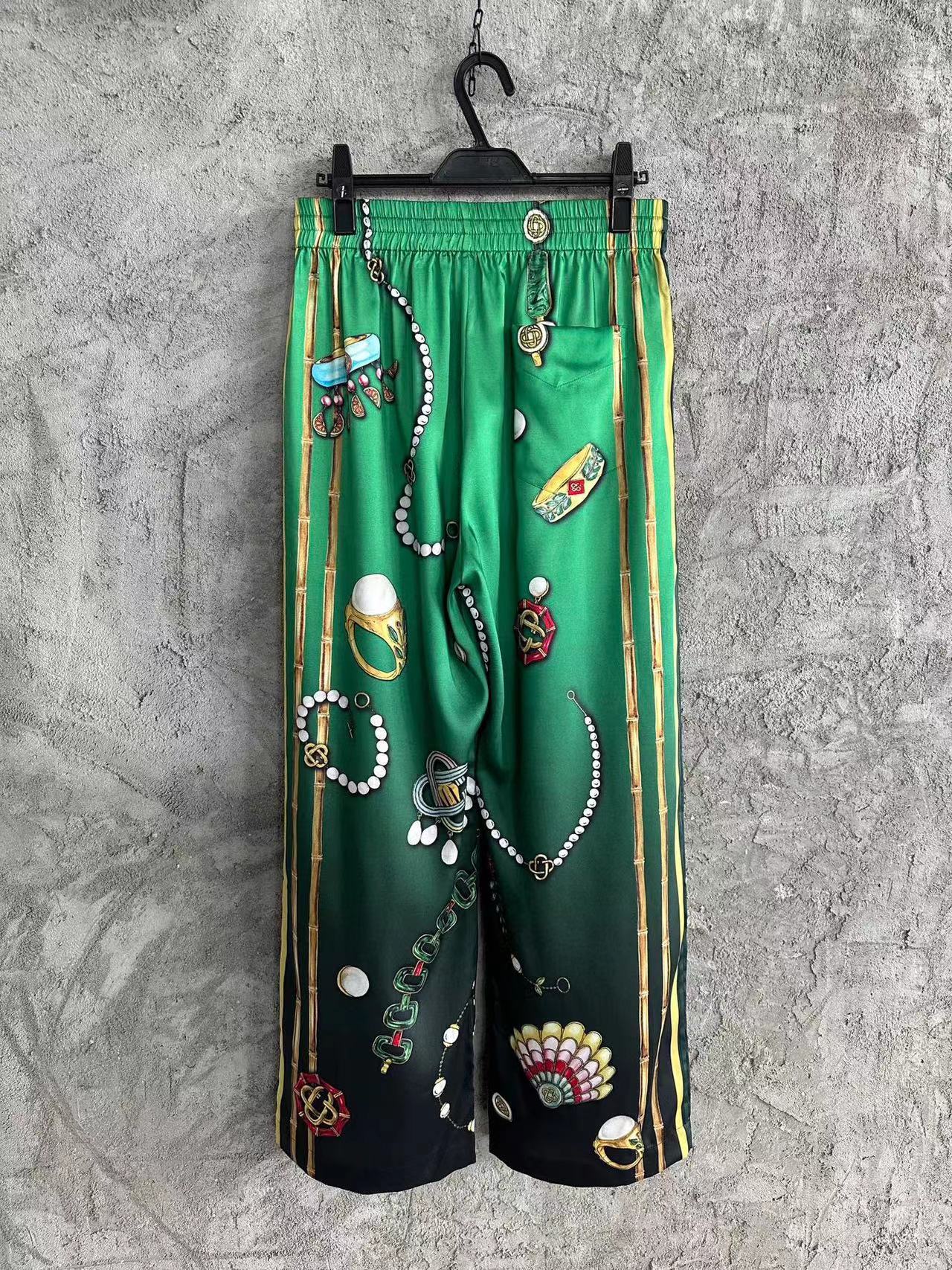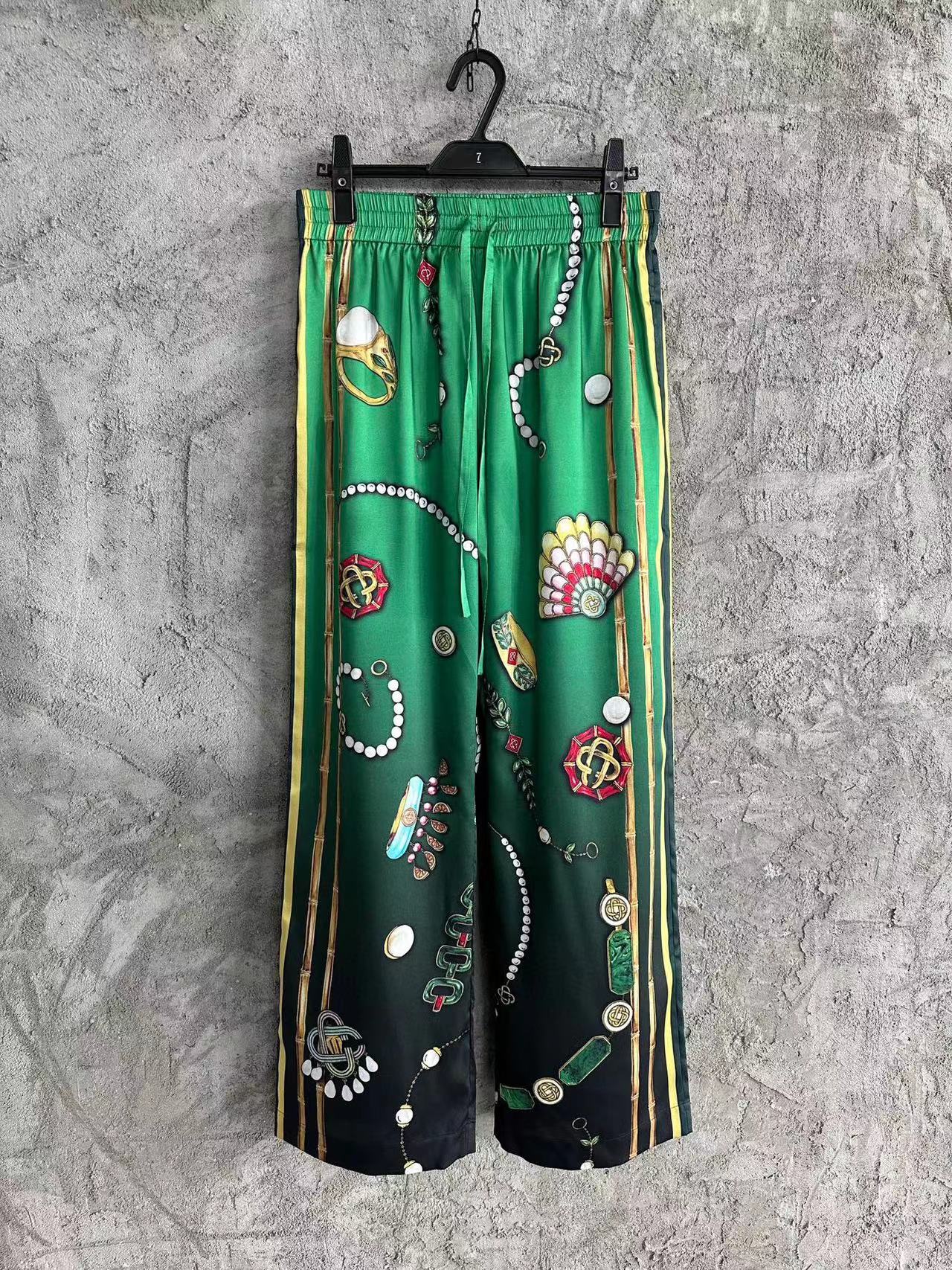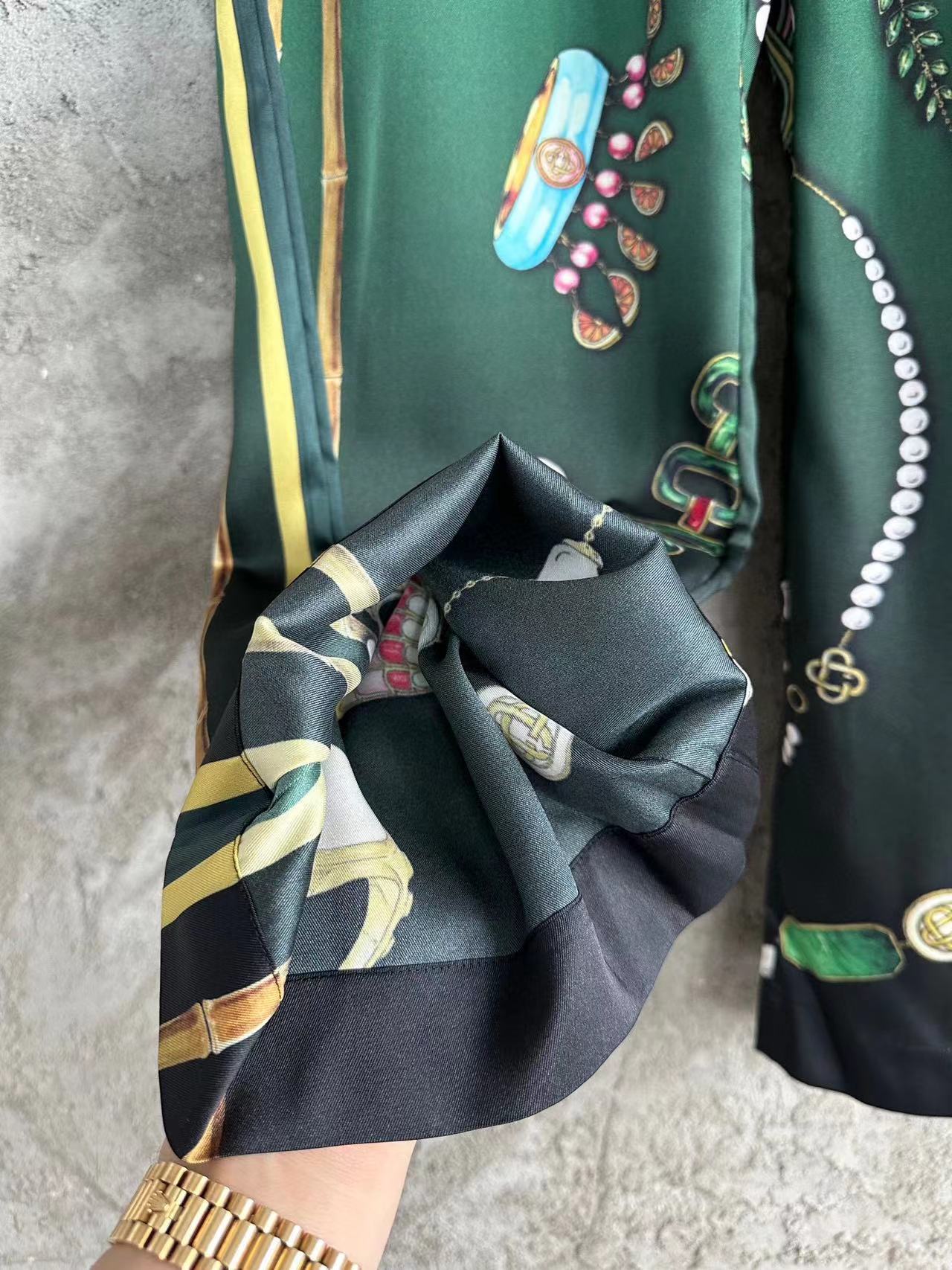 NIGO Casablanca Men's Summer Green Pattern Printed Single Breasted Long Sleeve Shirt Loose Wide Leg Casual Pants Set Suit #nigo72295