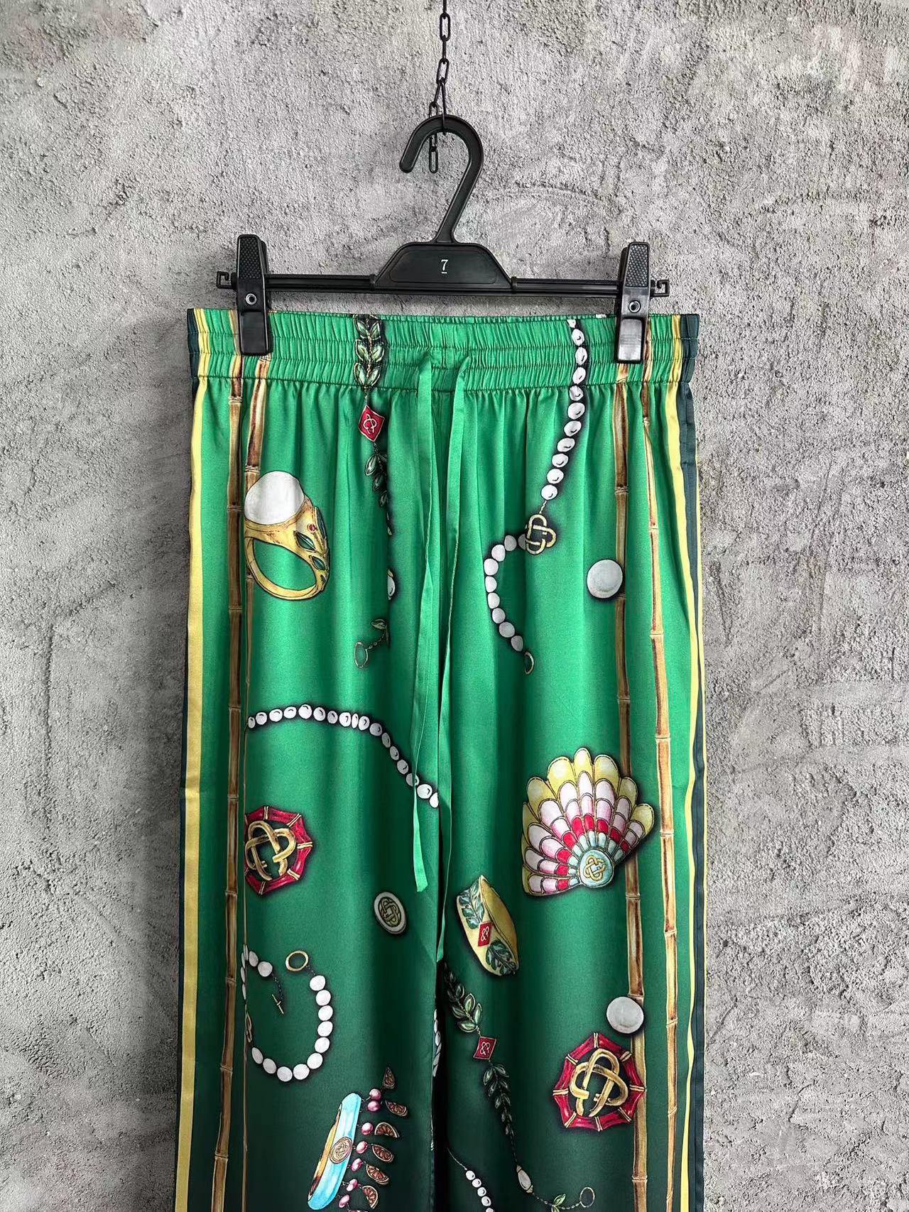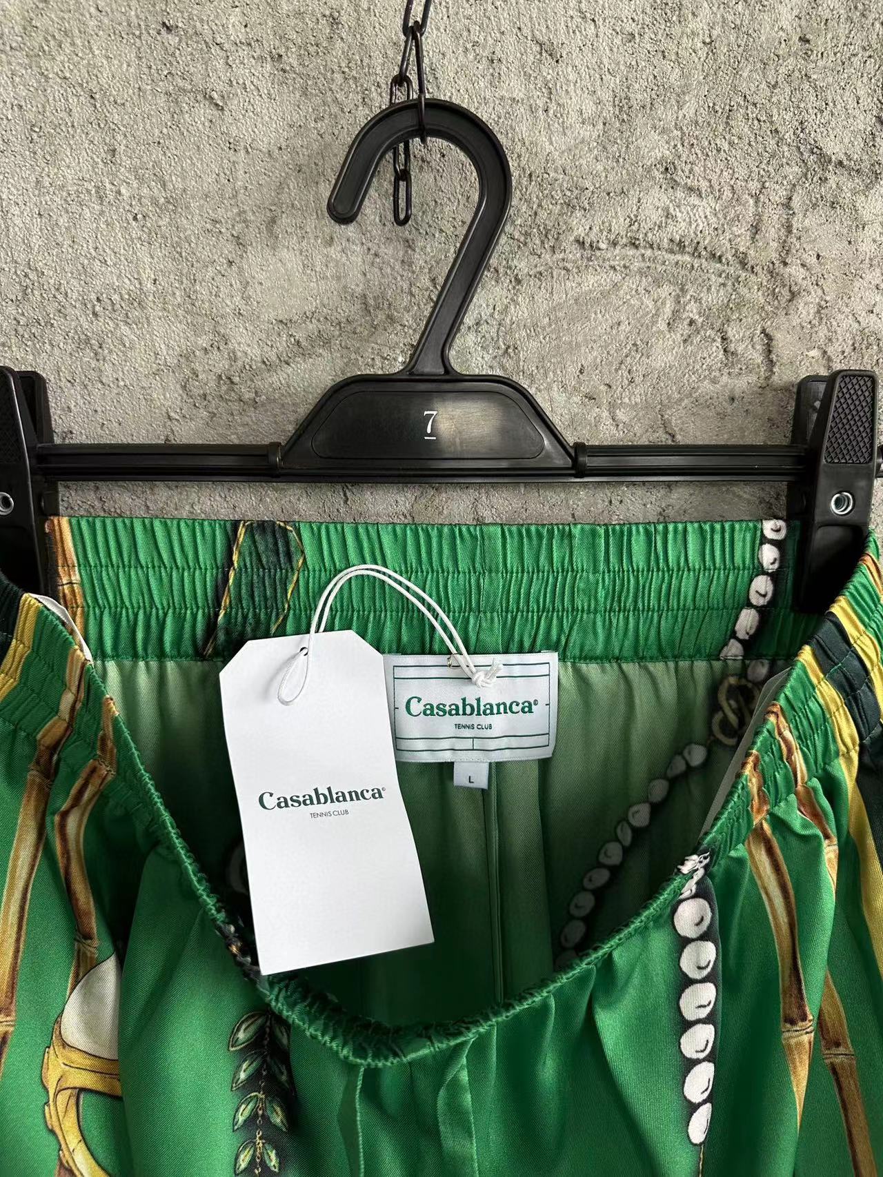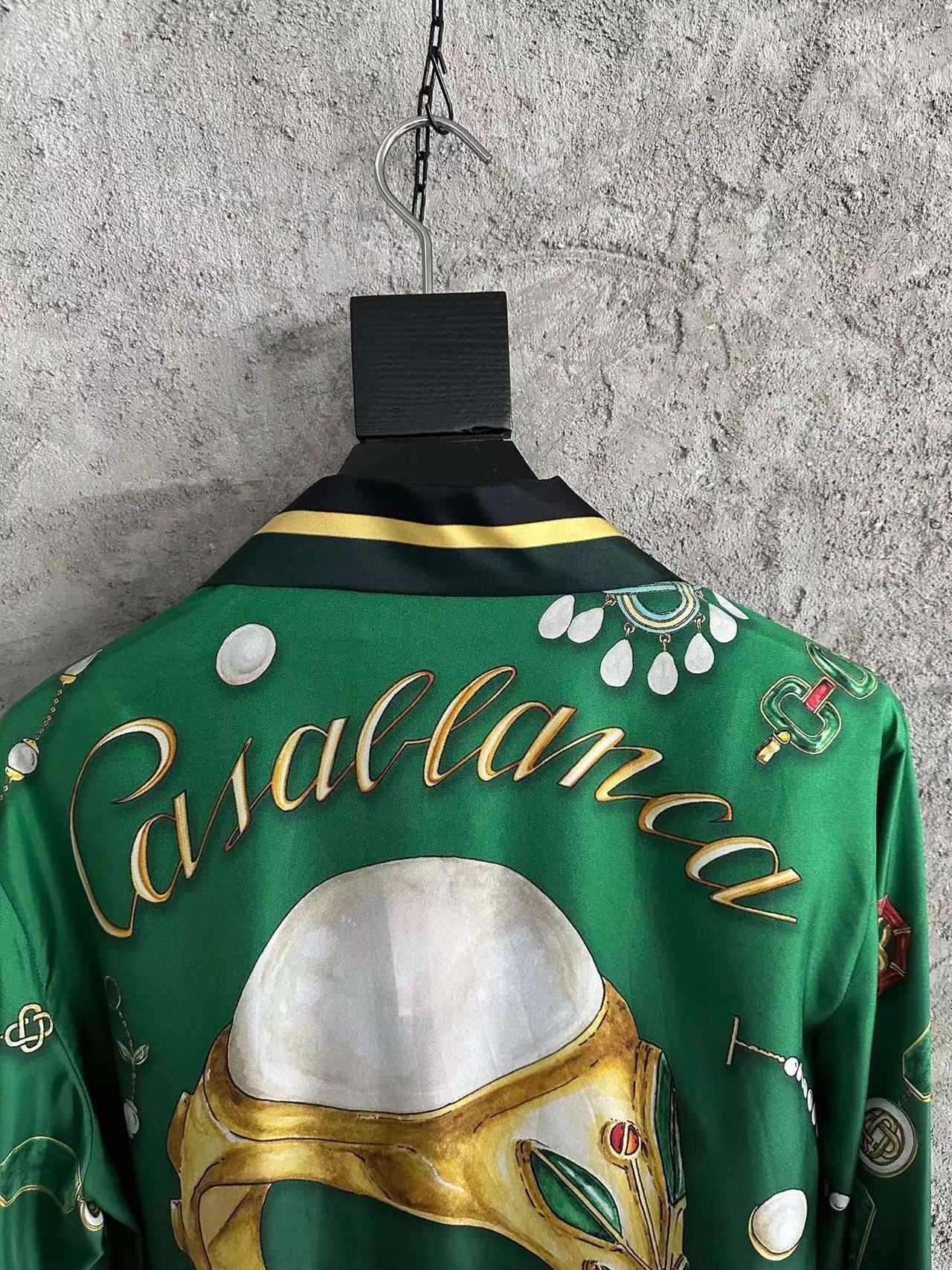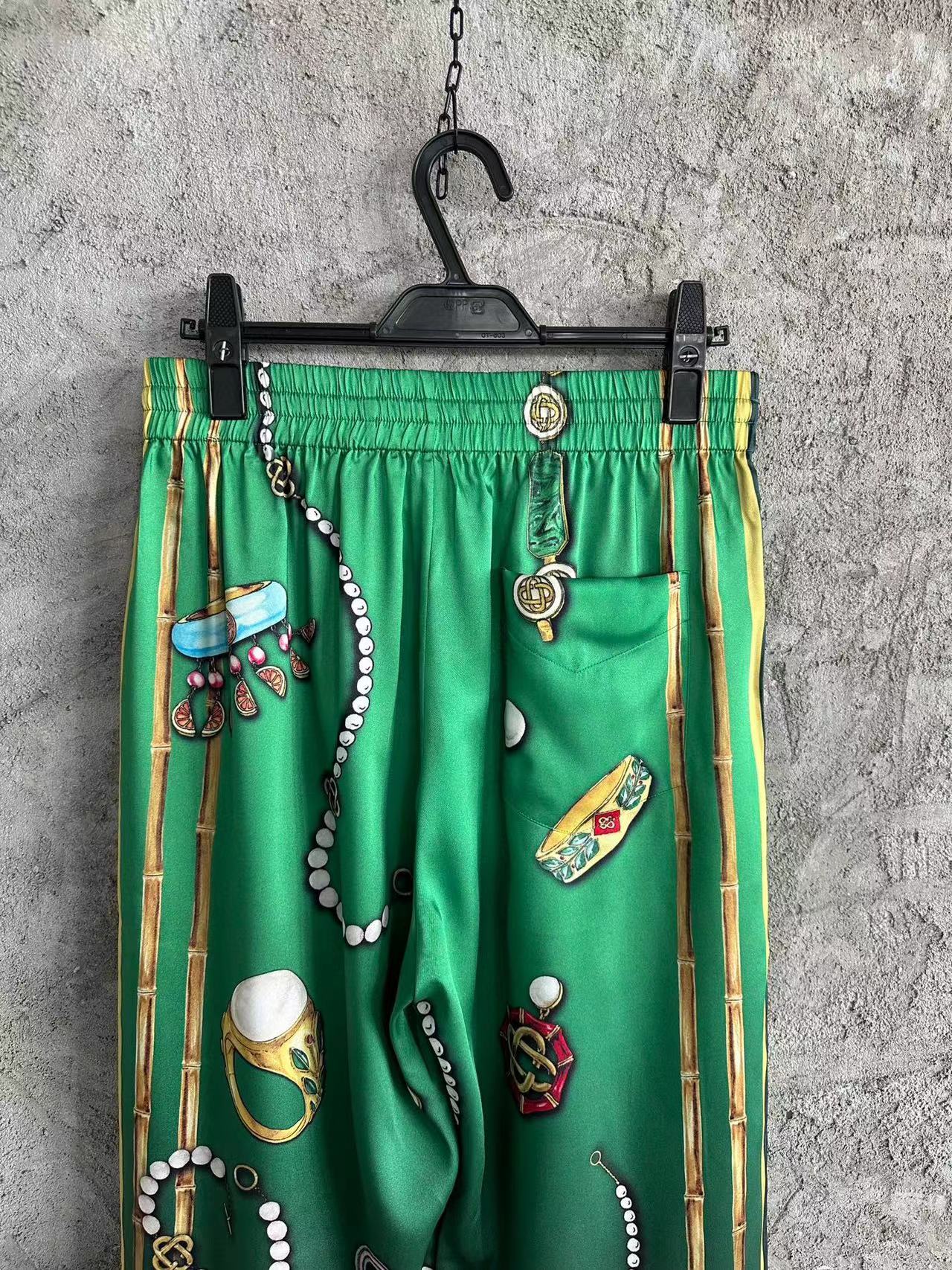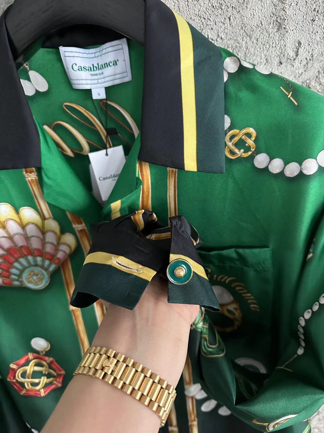 NIGO Casablanca Men's Summer Green Pattern Printed Single Breasted Long Sleeve Shirt Loose Wide Leg Casual Pants Set Suit #nigo72295