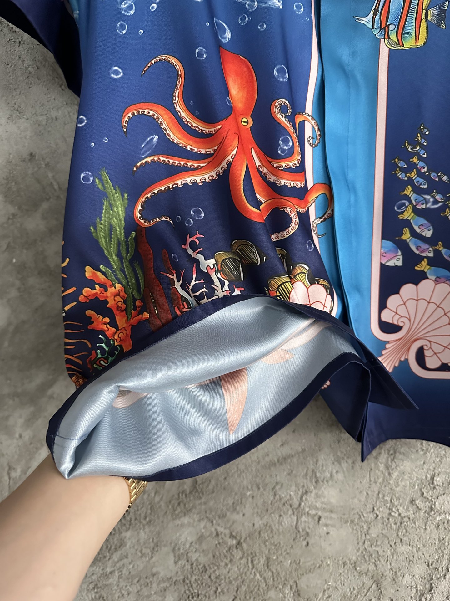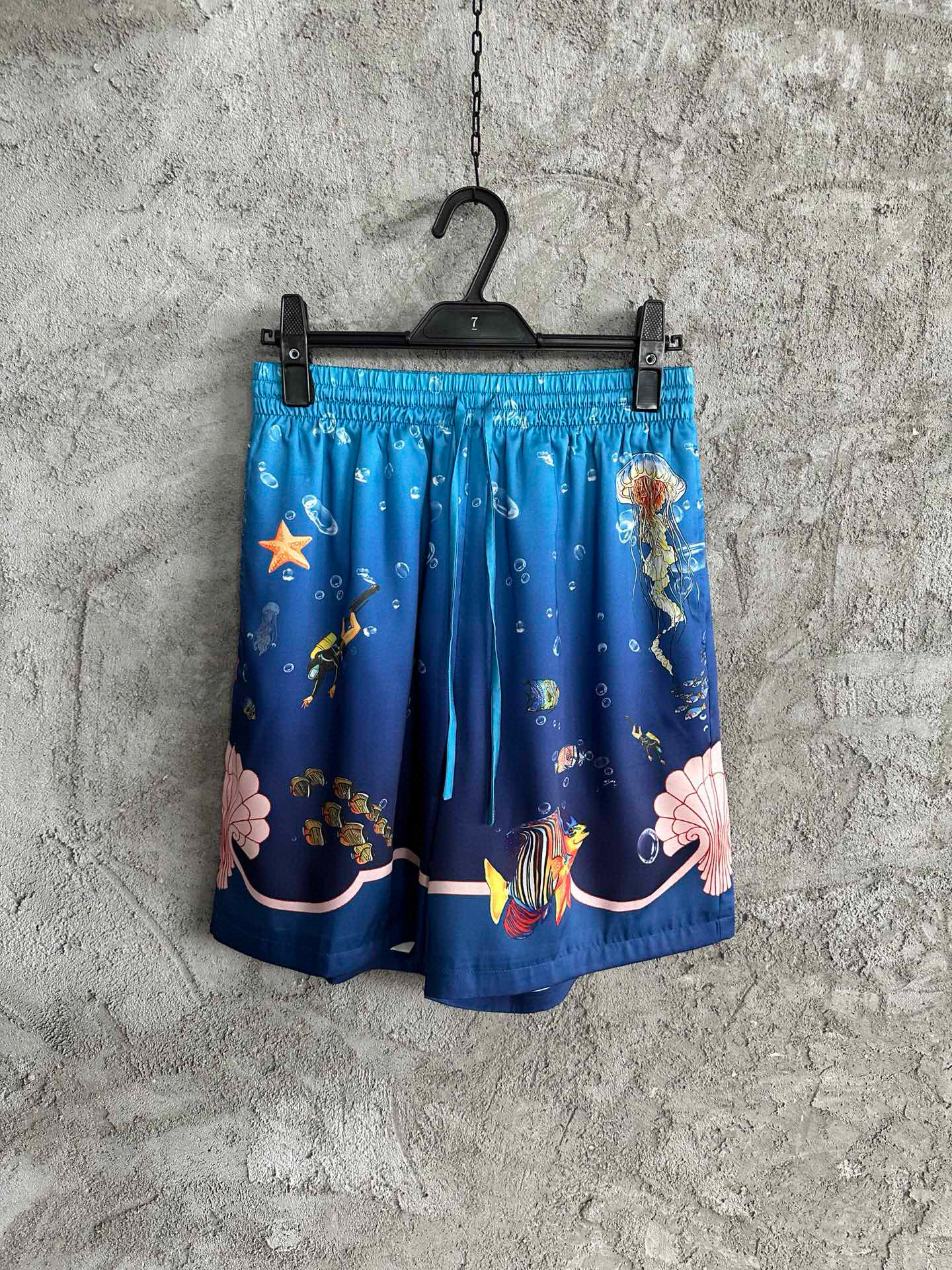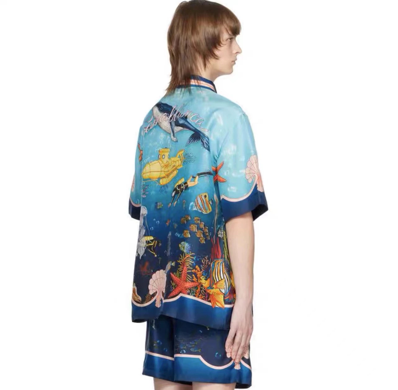 NIGO Casablanca Men's Summer Underwater World Pattern Printed Single Breasted Short Sleeve Shirt Casual Lace Up Shorts Set Suit #nigo77126