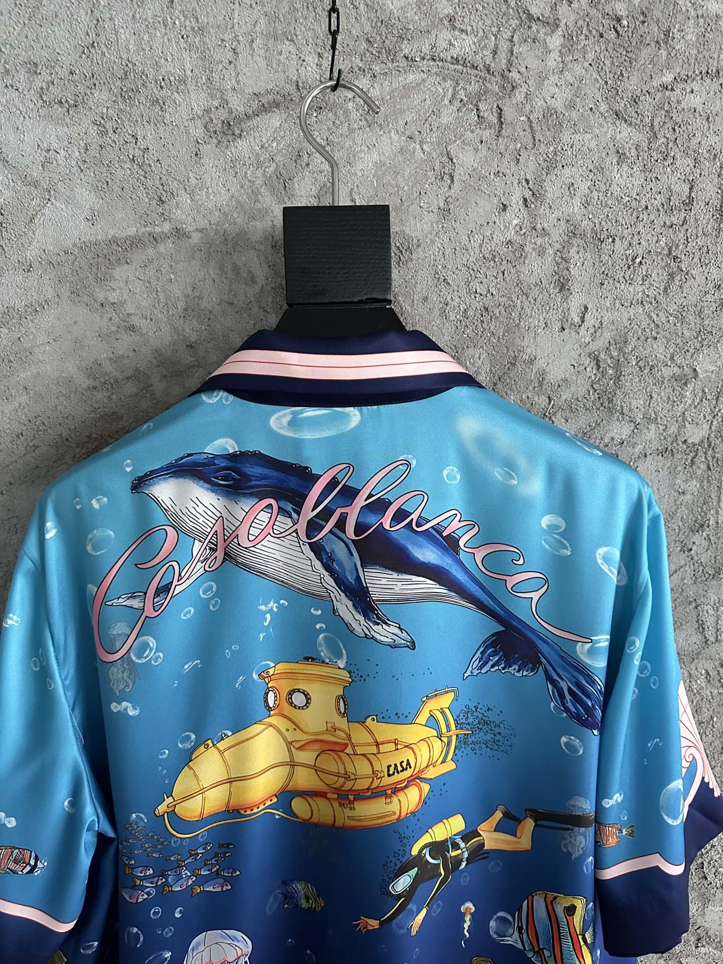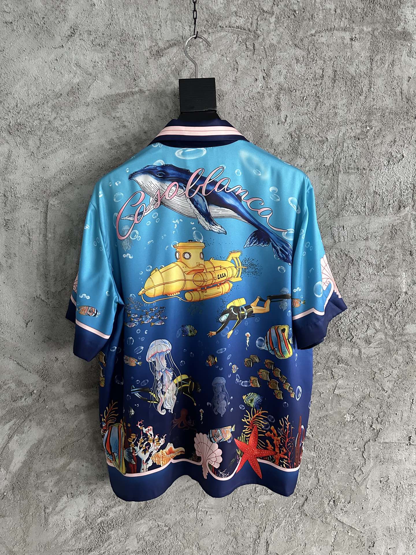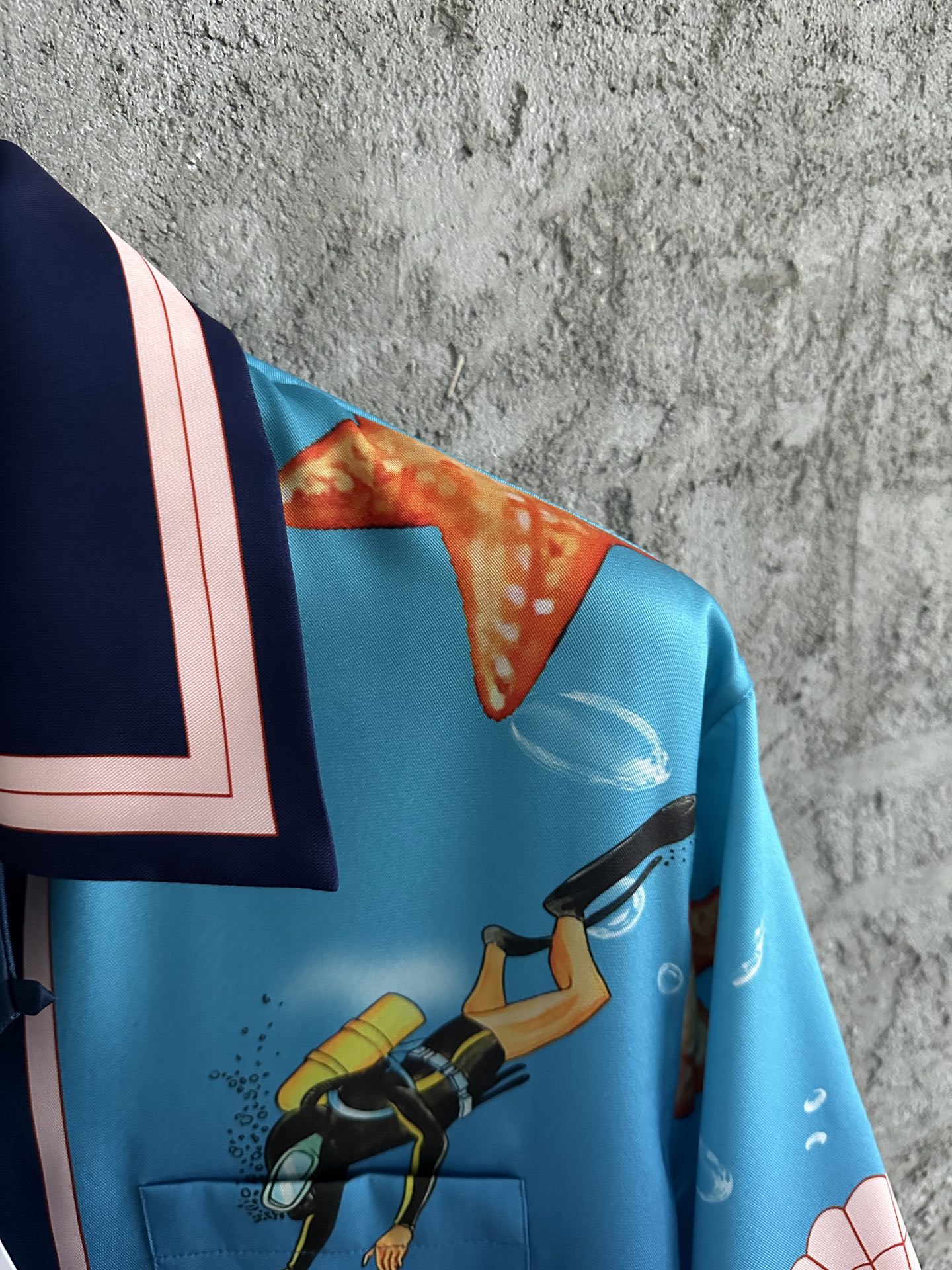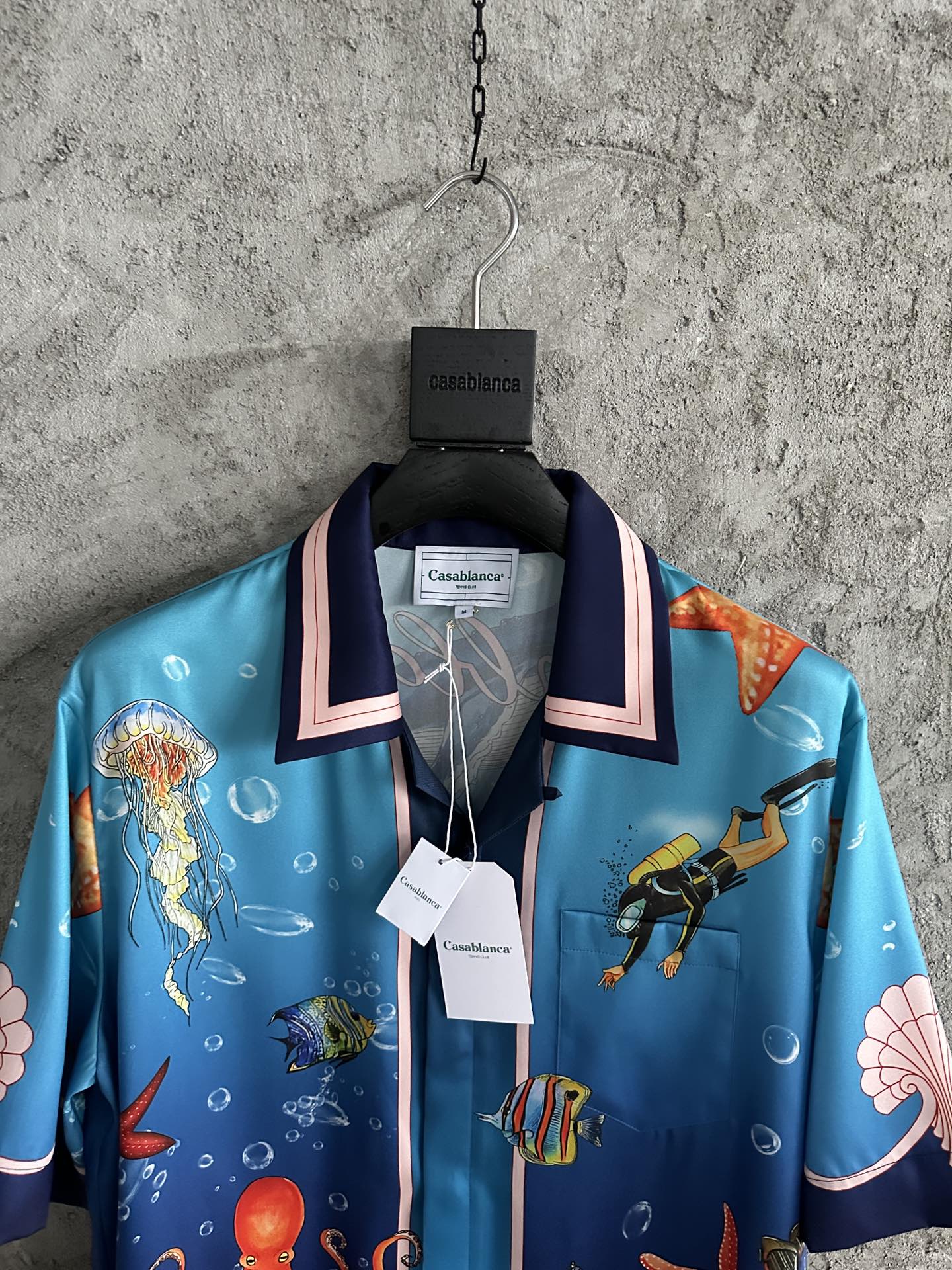 NIGO Casablanca Men's Summer Underwater World Pattern Printed Single Breasted Short Sleeve Shirt Casual Lace Up Shorts Set Suit #nigo77126