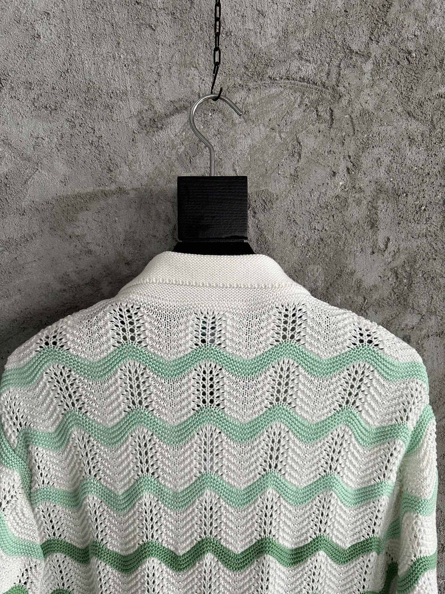 NIGO Casablanca Men's Summer Wave Stripe Single Breasted Knit Short Sleeve Shirt Cotton Shorts Pants Suit Set #nigo98831
