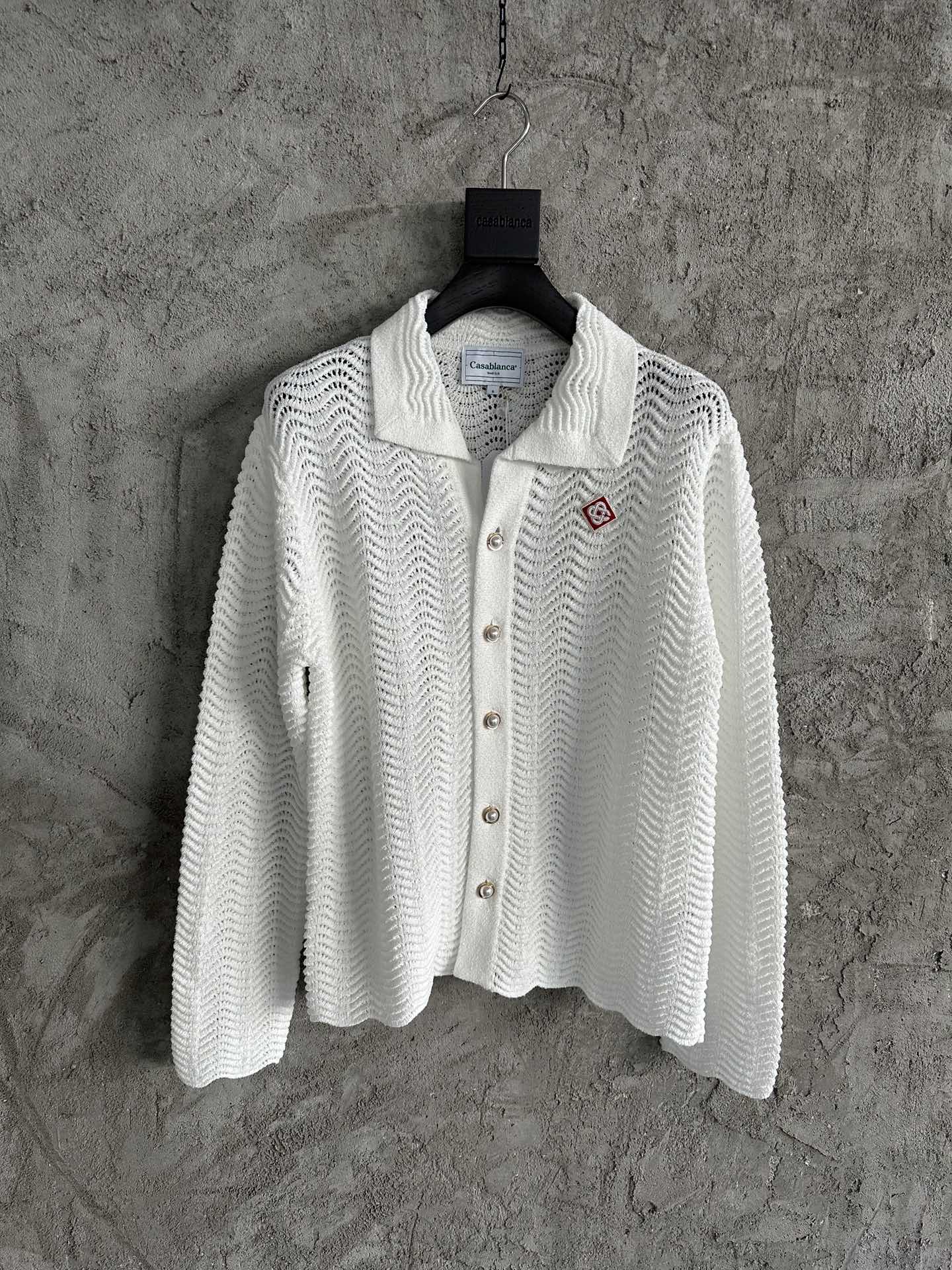 NIGO Casablanca Men's Summer White Lapel Single Breasted Skeleton Long Sleeve Knit Jacket #nigo72868