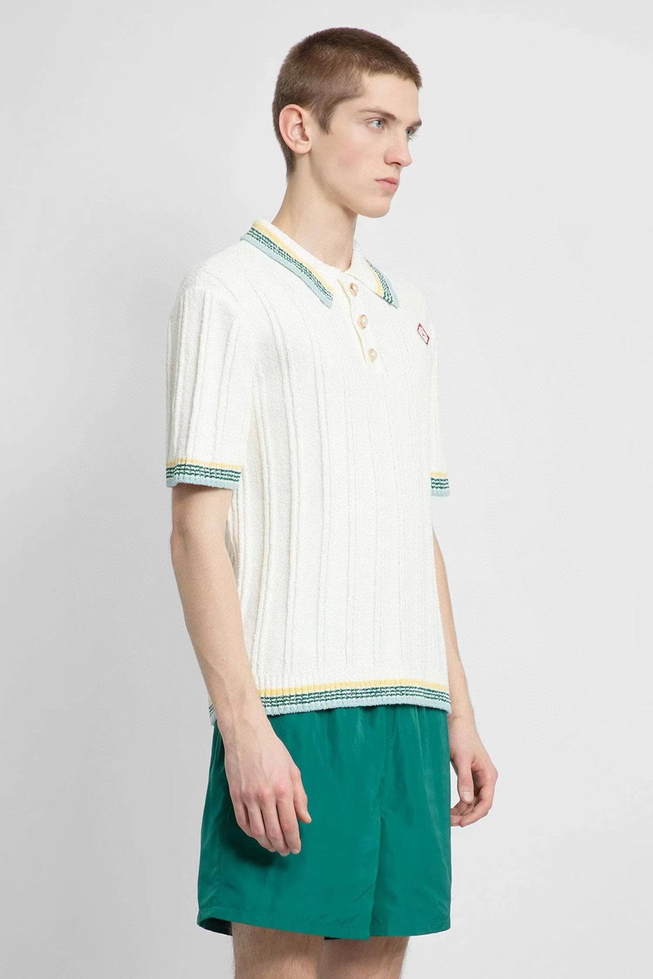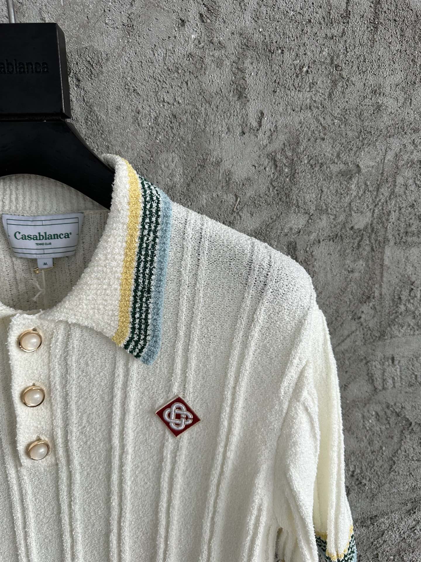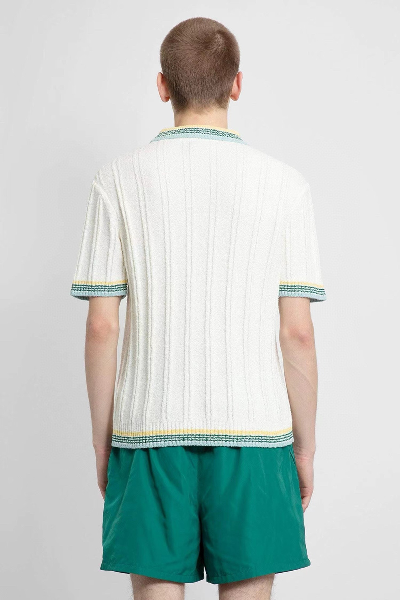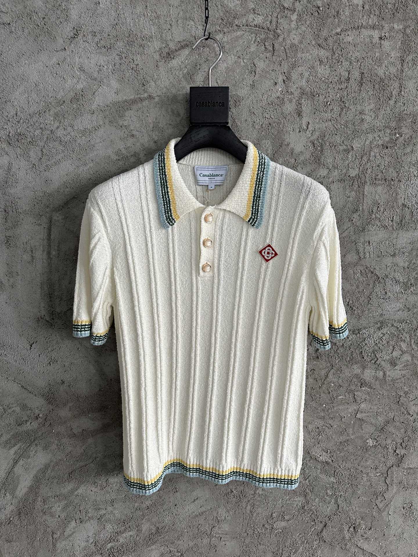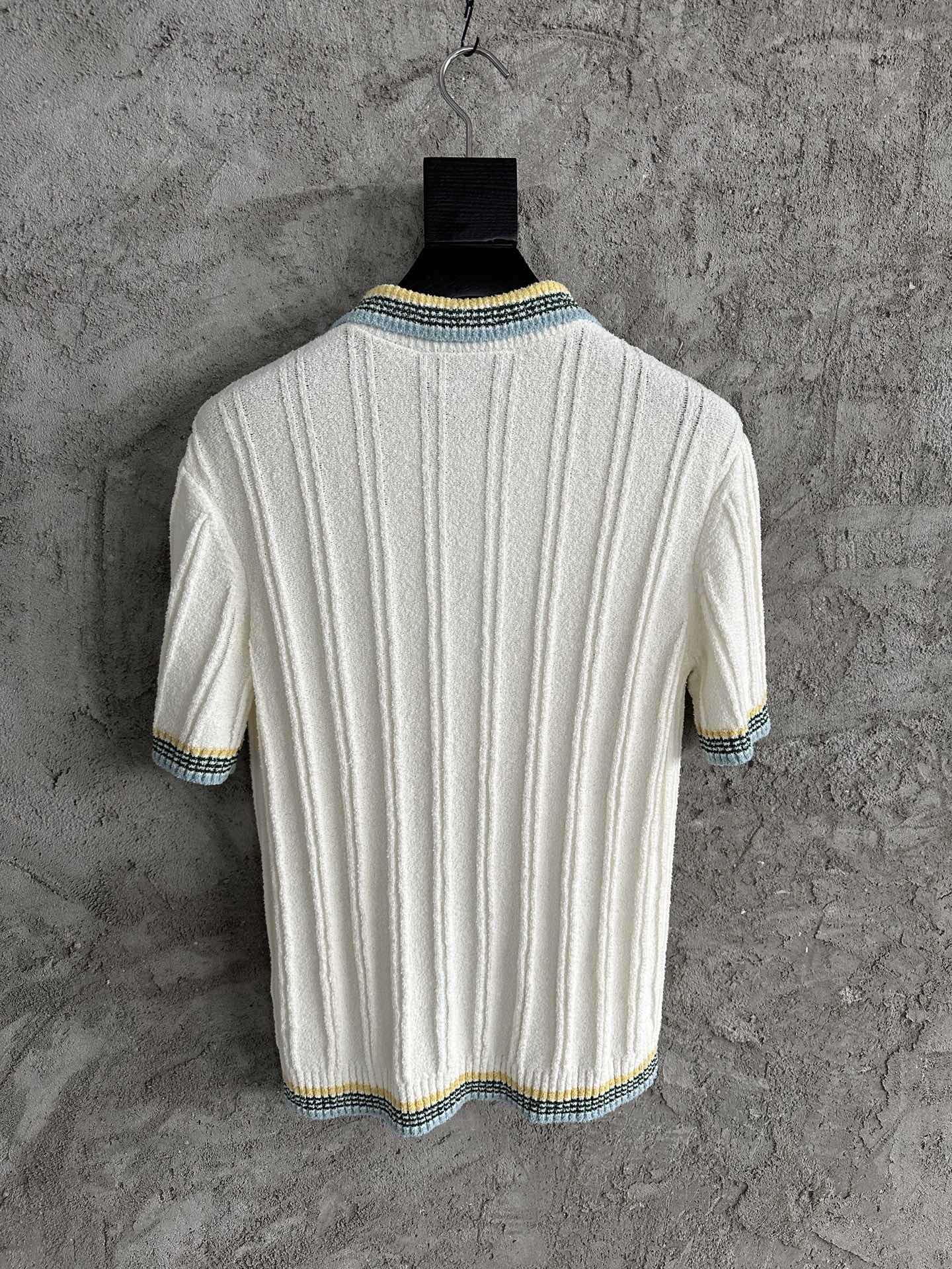 NIGO Casablanca Men's Summer White Striped Trim Comfortable Ribbed Knit Short Sleeve Polo T-Shirt #nigo73227