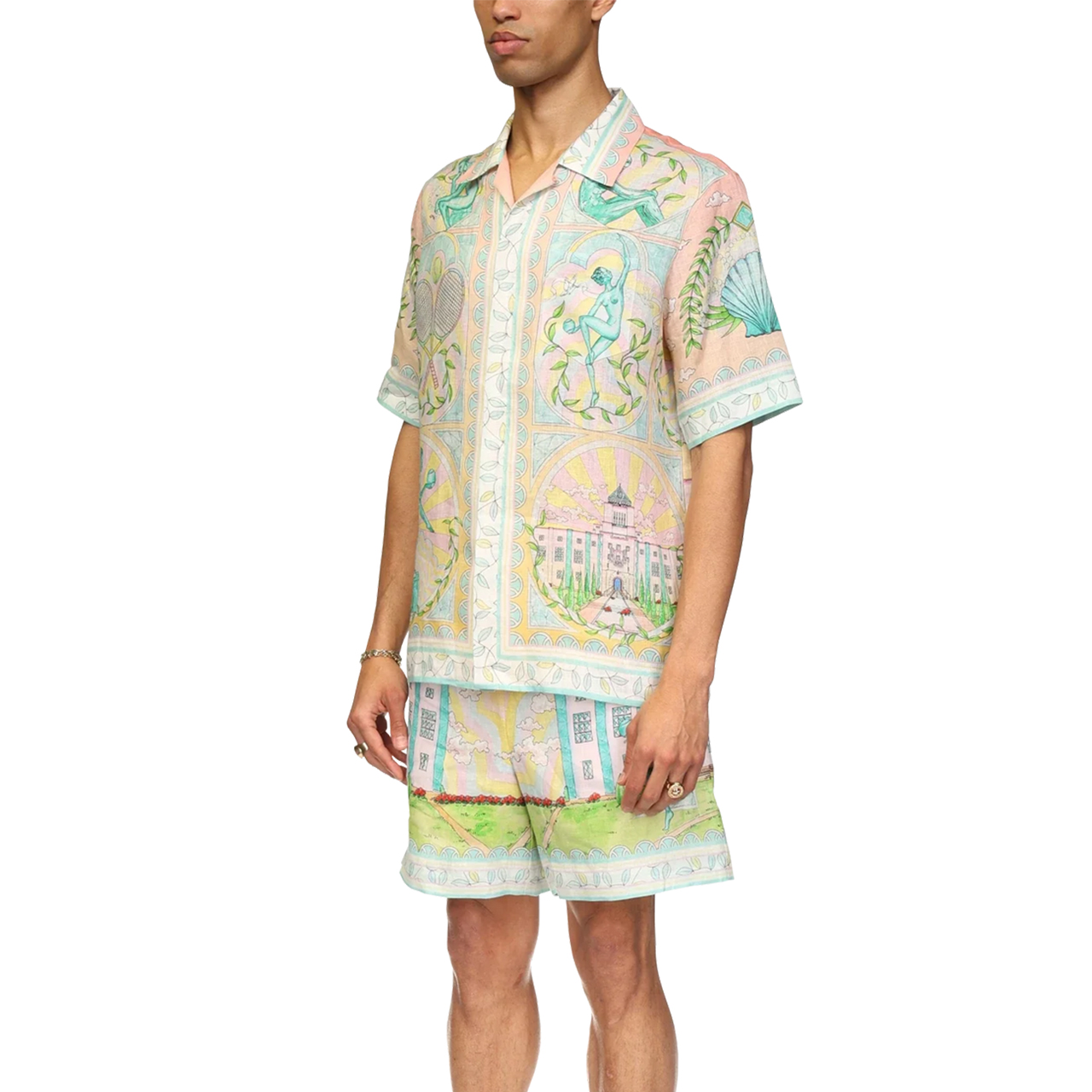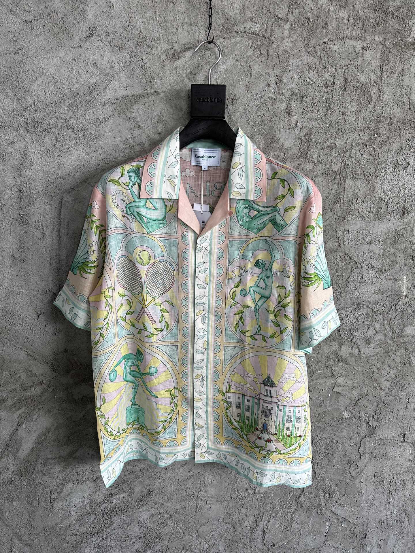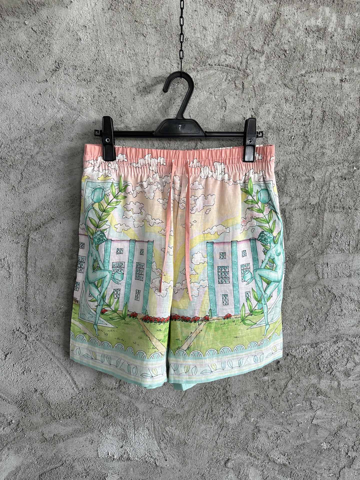 NIGO Casablanca Men's Women's Spring And Autumn Vase Print Lapel Single-Breasted Short-Sleeved Linen Shirt Casual Elastic Waist Loose Shorts Ngvp #nigo9386