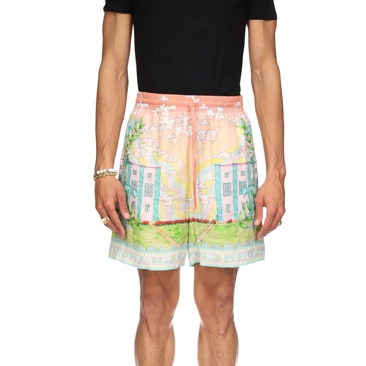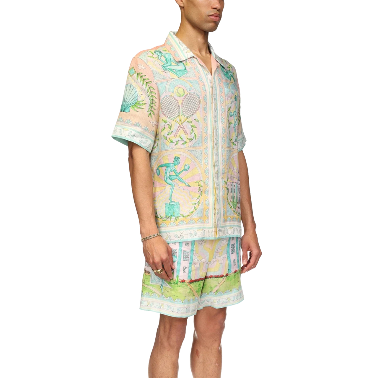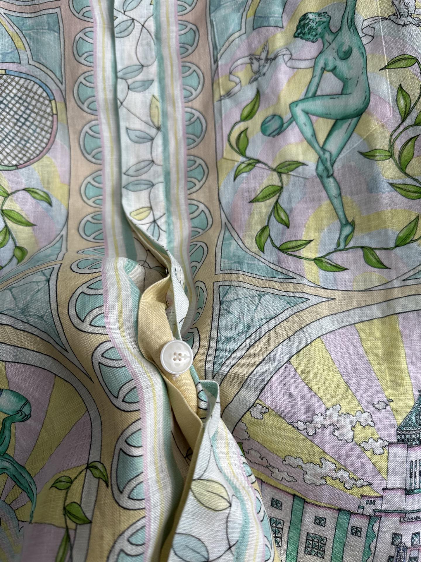 NIGO Casablanca Men's Women's Spring And Autumn Vase Print Lapel Single-Breasted Short-Sleeved Linen Shirt Casual Elastic Waist Loose Shorts Ngvp #nigo9386