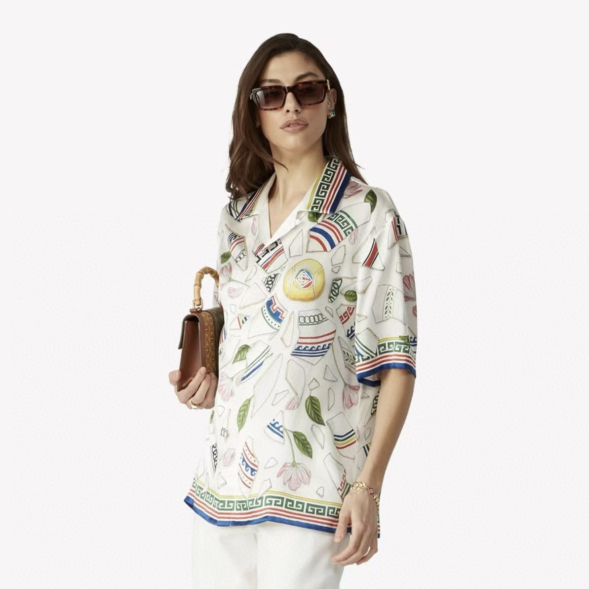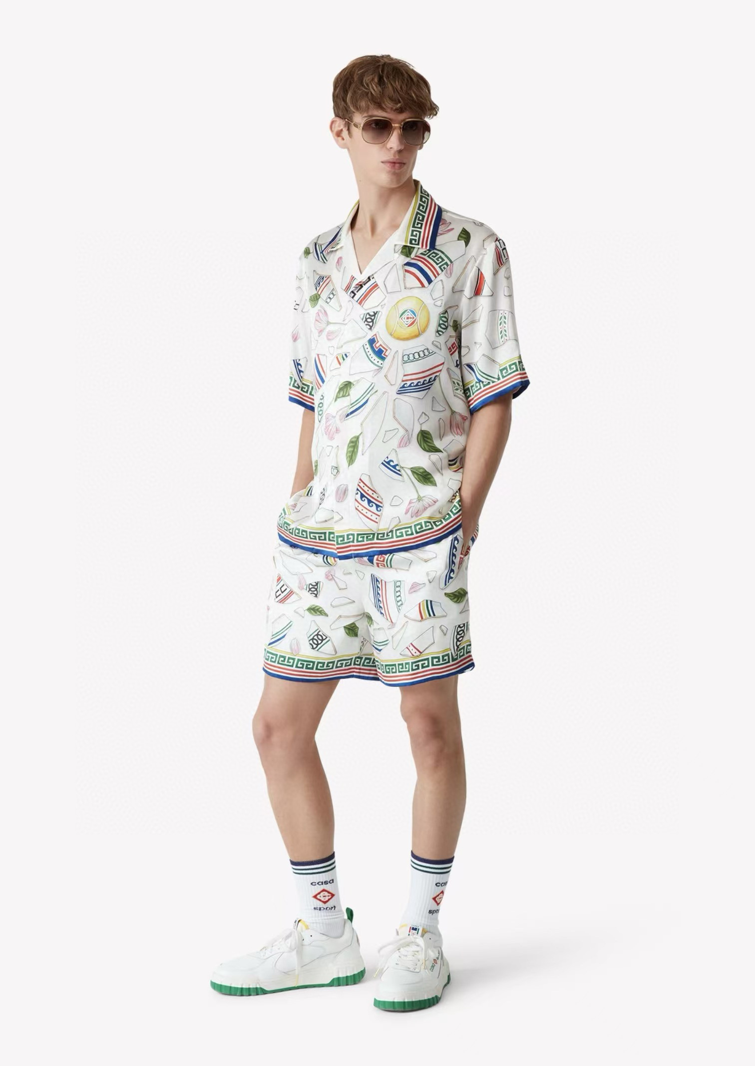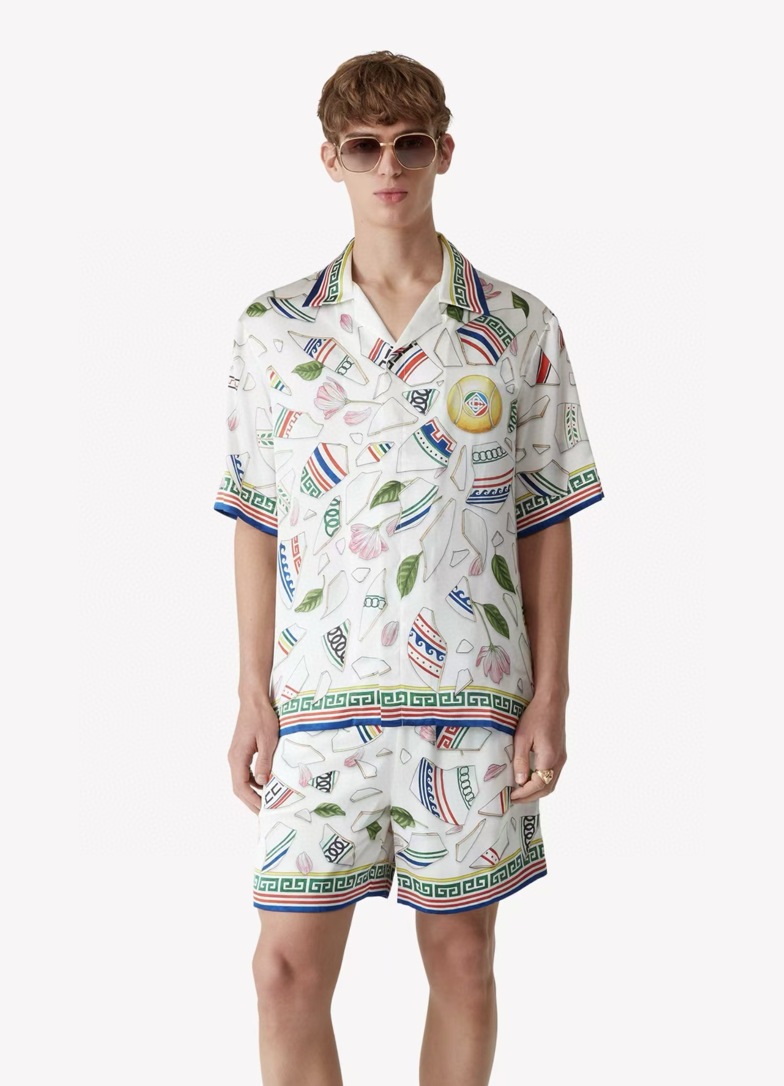 NIGO Casablanca Men's Women's Summer Silk Floral Print Loose Short Sleeved Shirt Casual Drawstring Shorts Ngvp #nigo9927