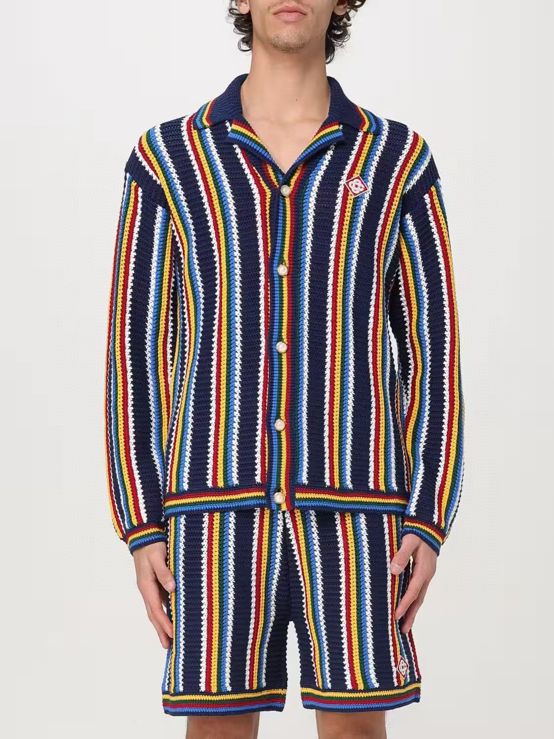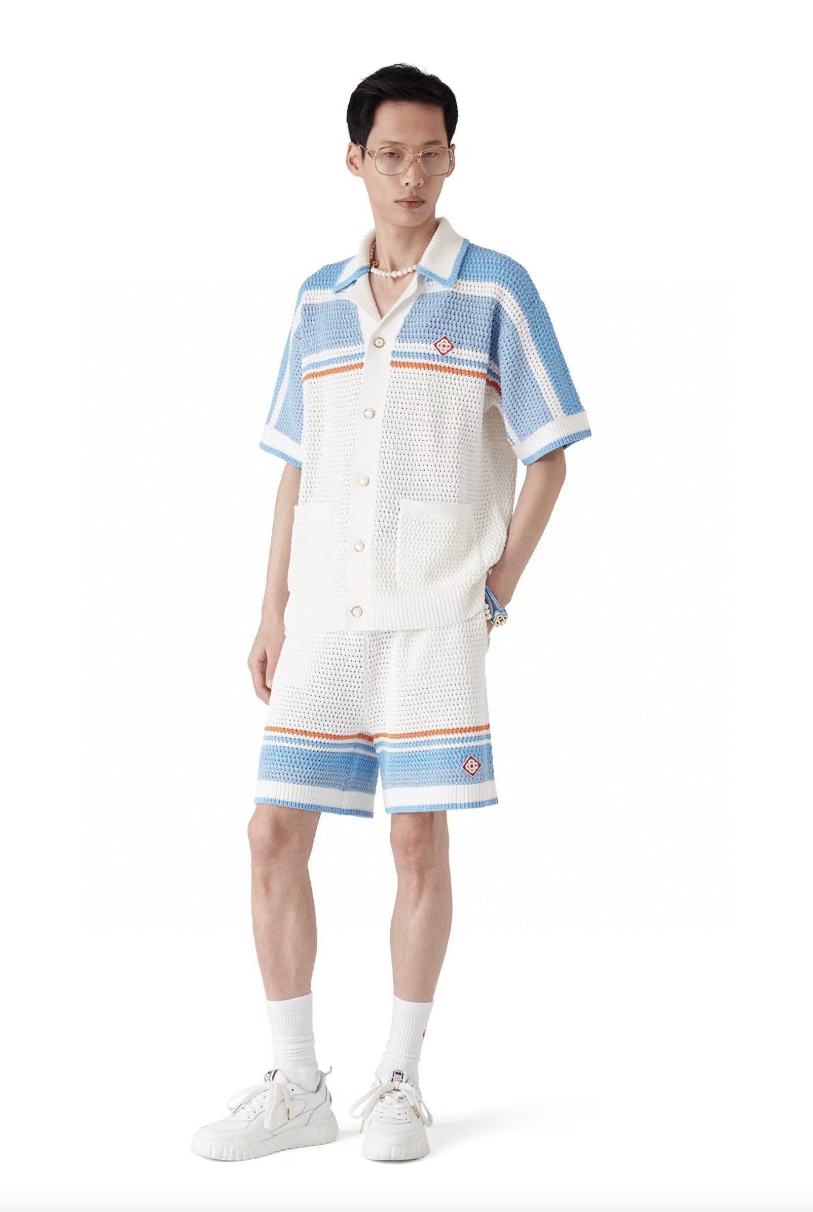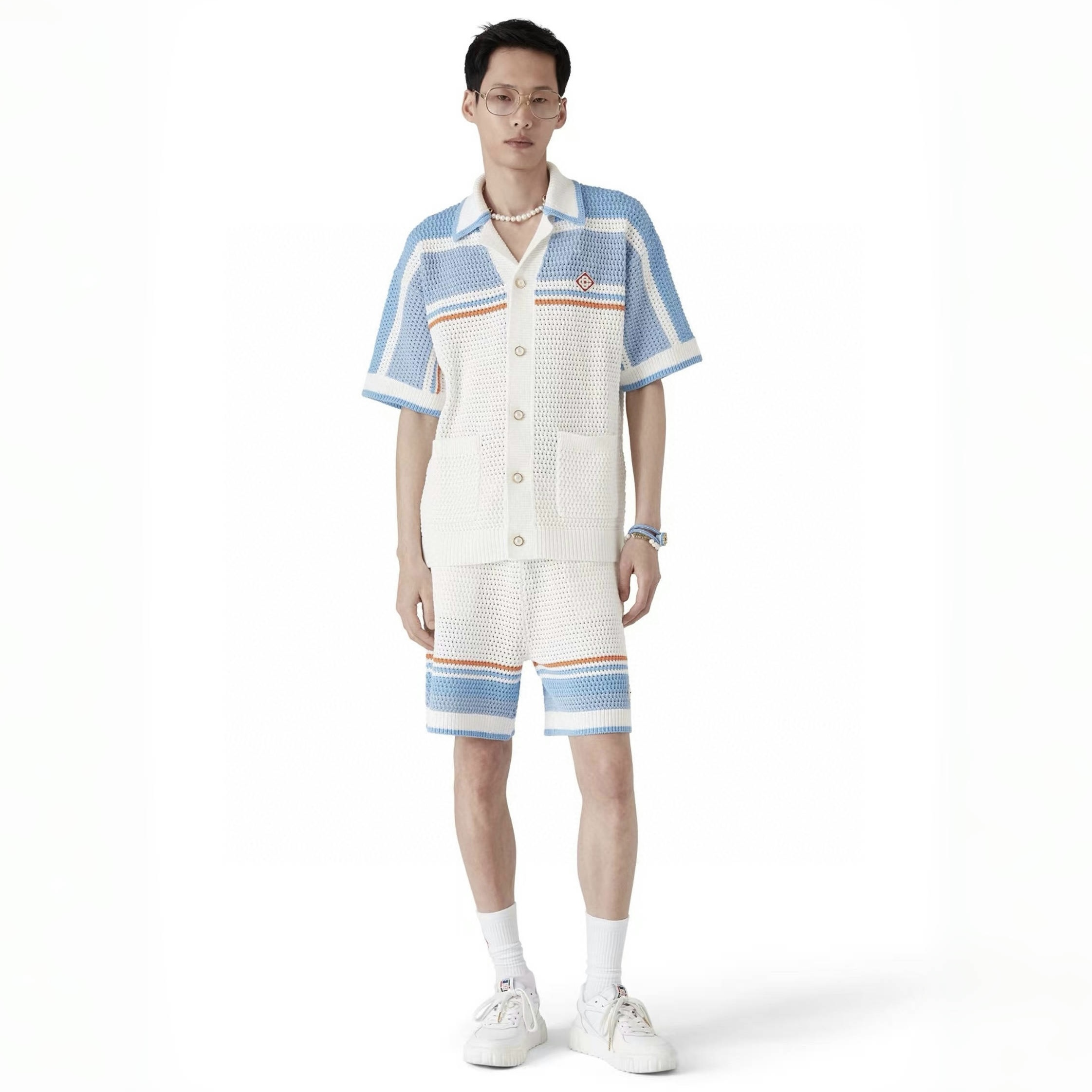 NIGO Casablanca Men's Summer Solid Color Single Breasted Knit Short Sleeve Shirt Lace Up Casual Shorts Set Suit #nigo75965
