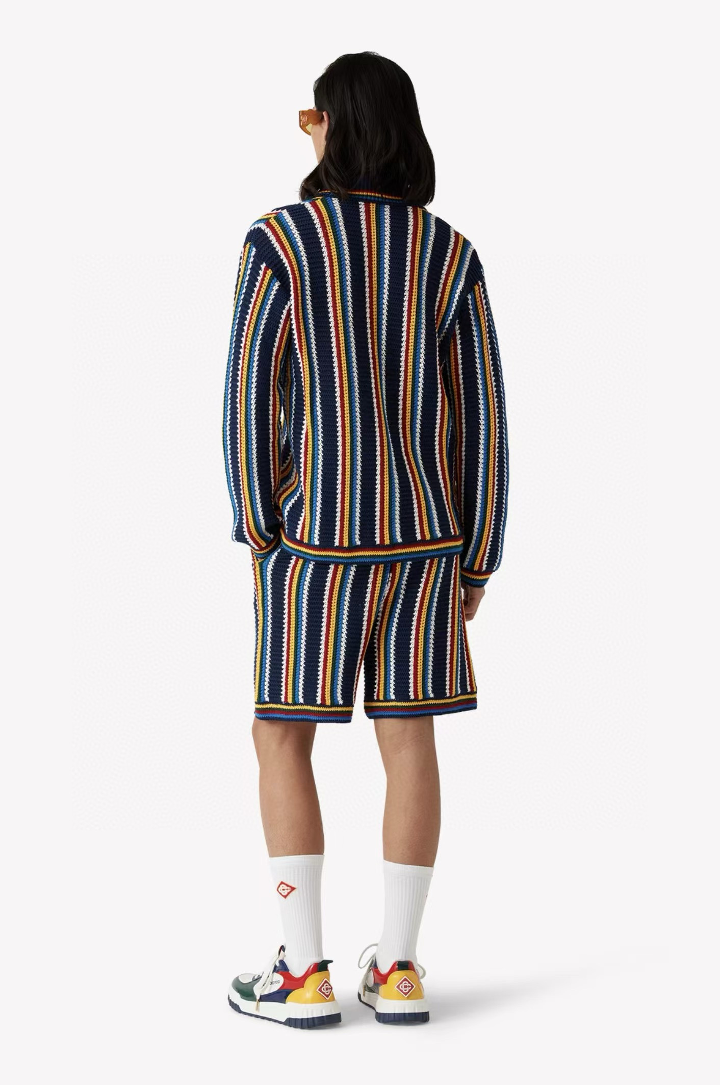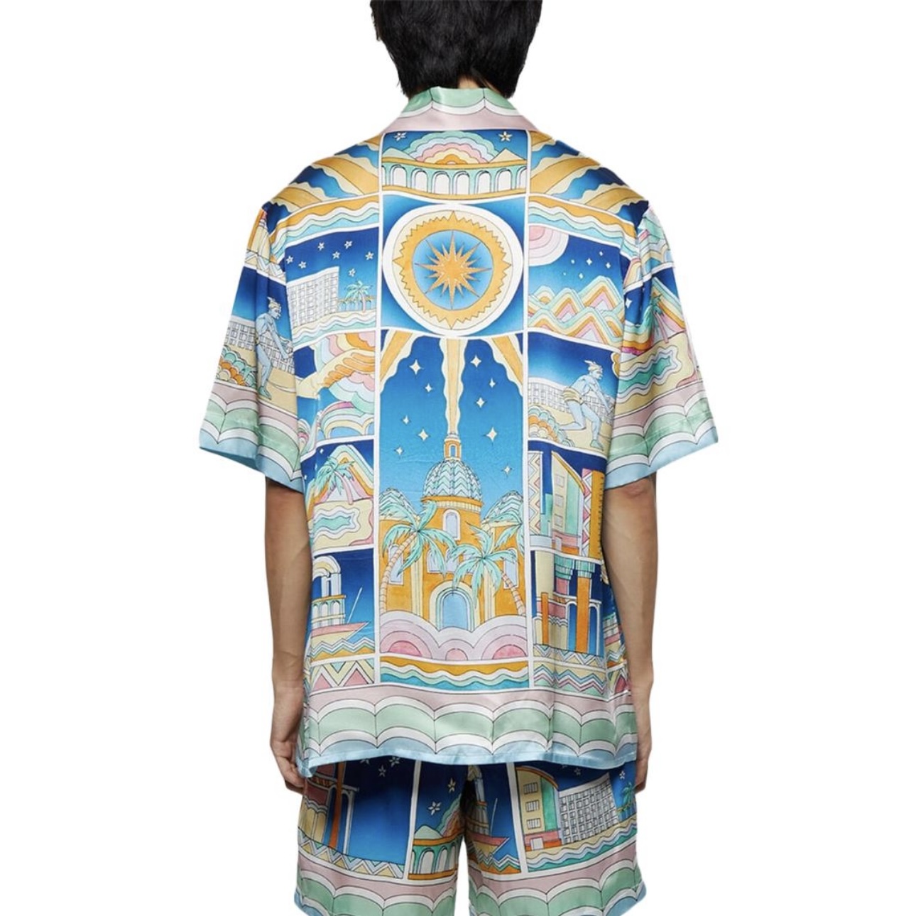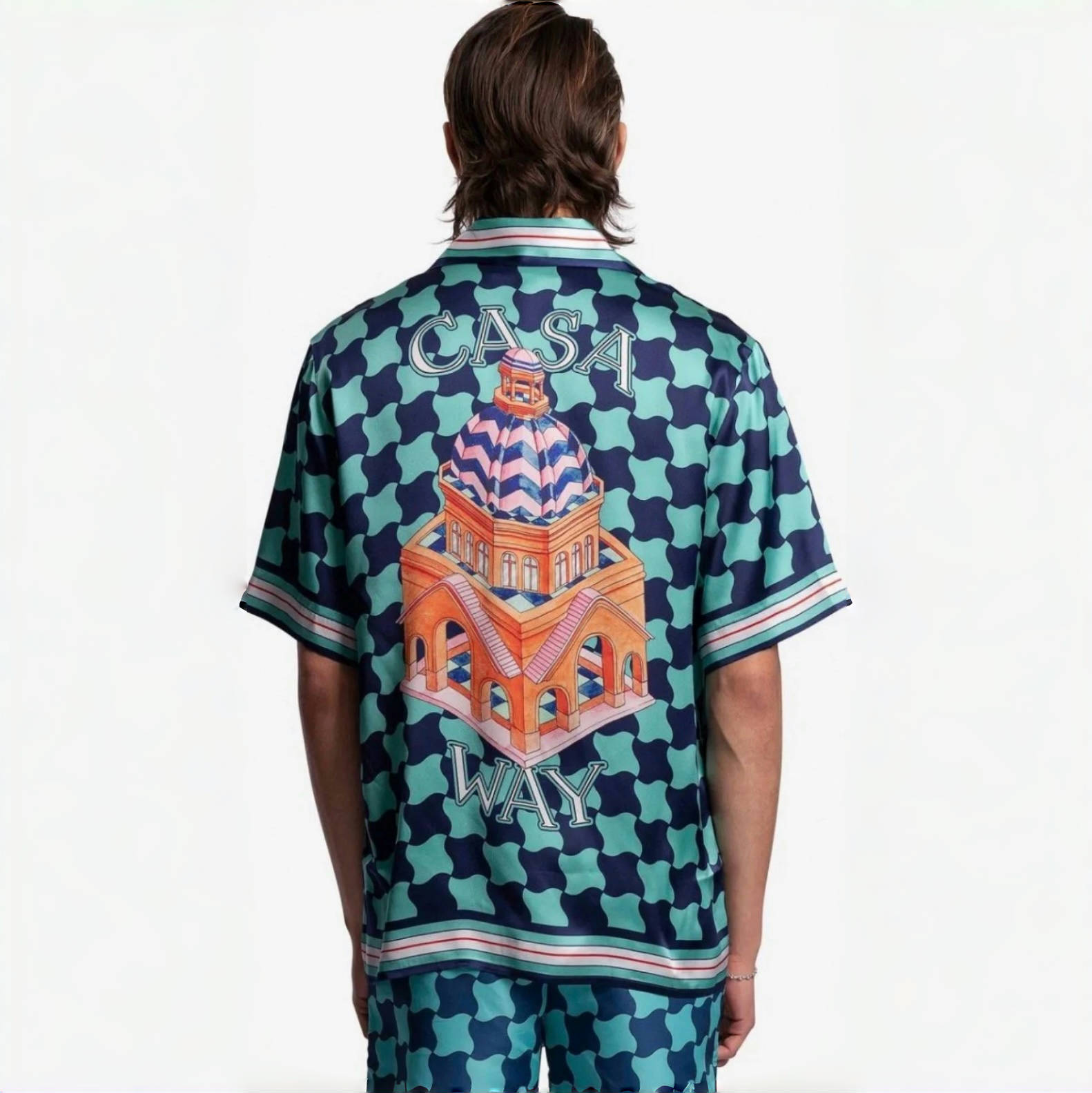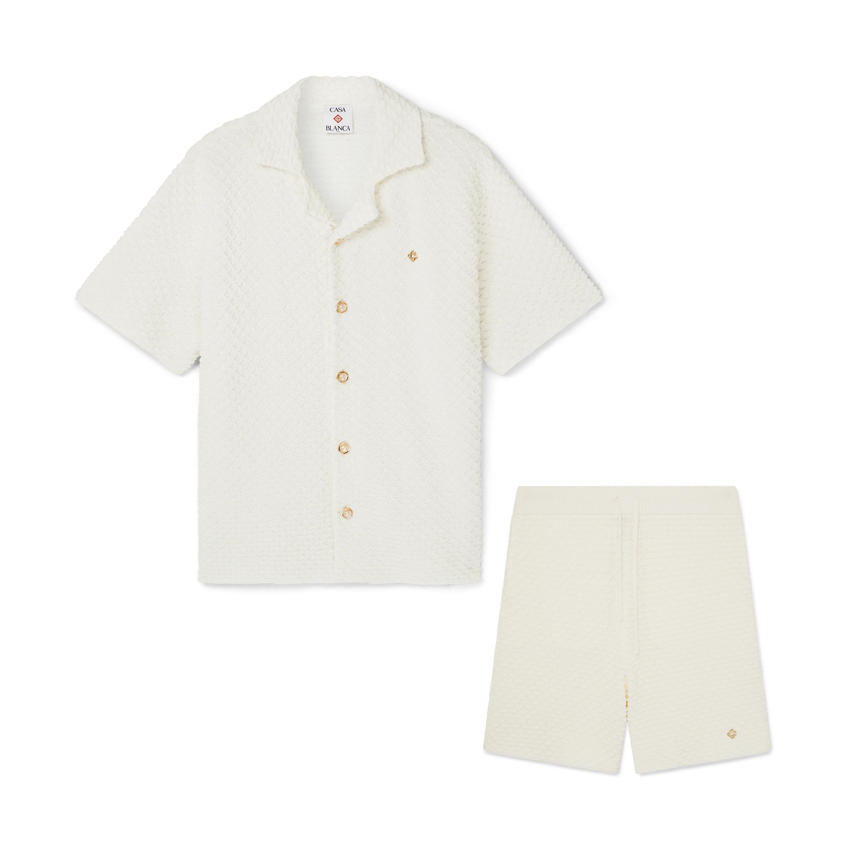 NIGO Casablanca Men's Summer Solid Color Single Breasted Knit Short Sleeve Shirt Lace Up Casual Shorts Set Suit #nigo75965