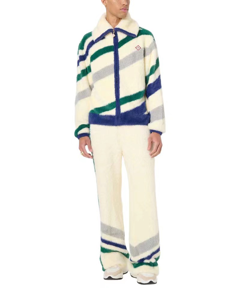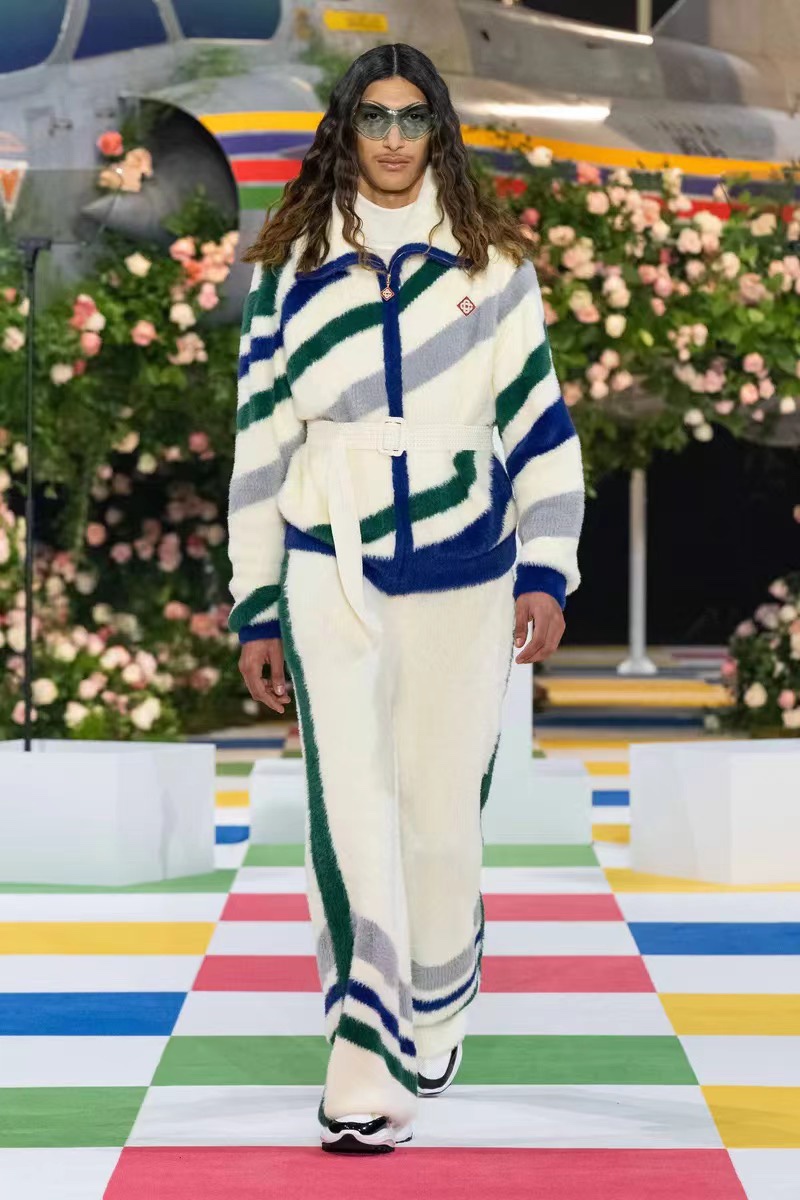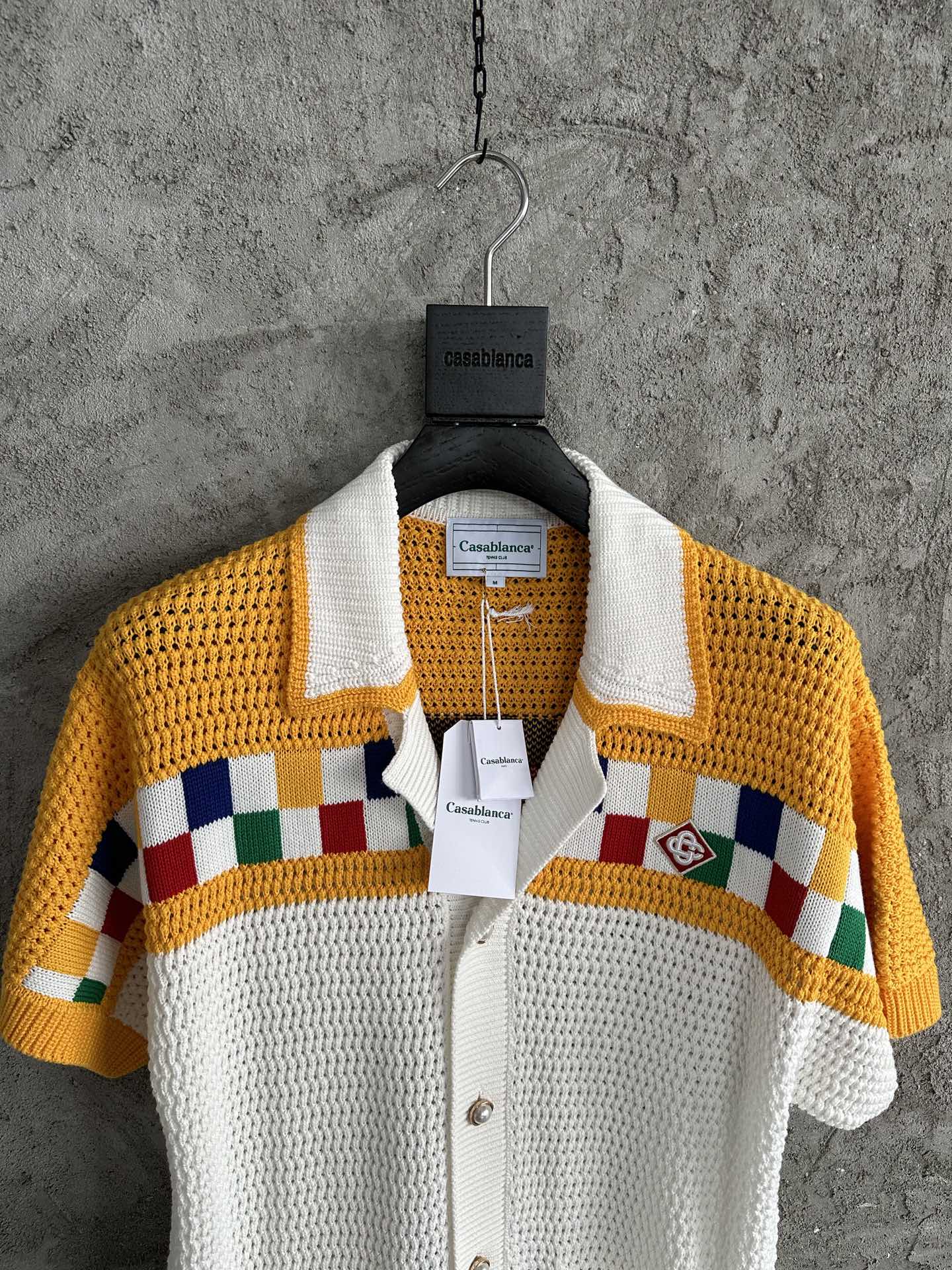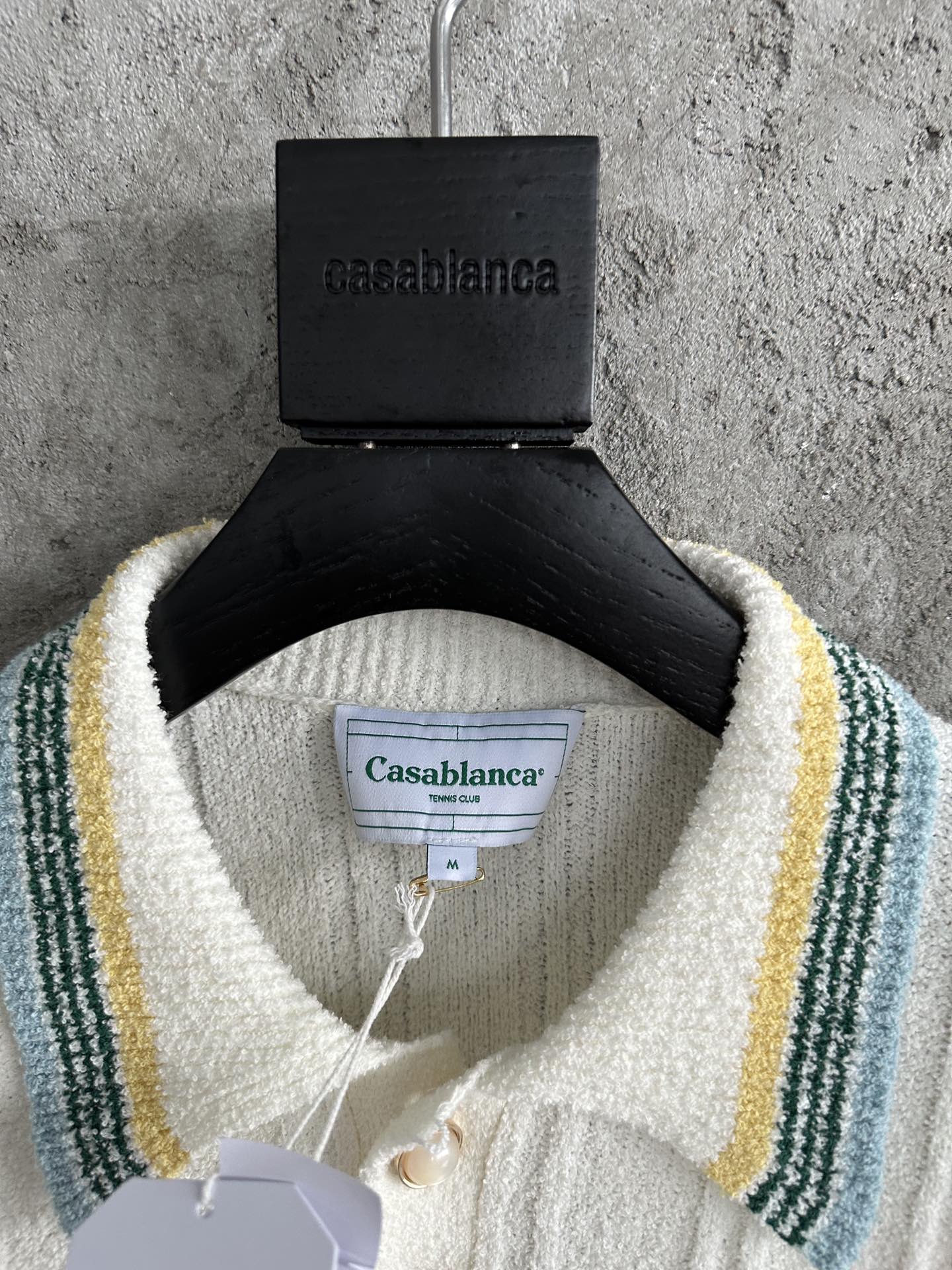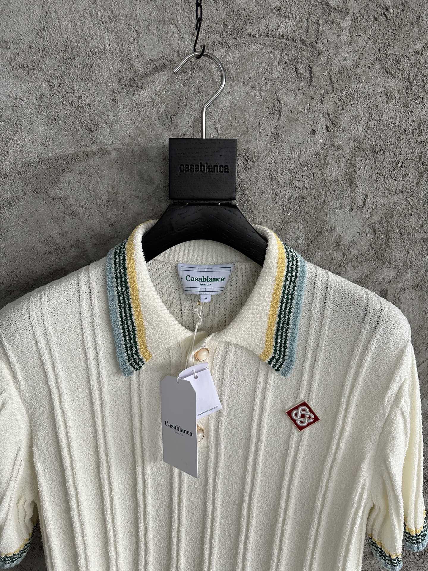 NIGO Casablanca Men's Summer White Striped Trim Comfortable Ribbed Knit Short Sleeve Polo T-Shirt #nigo73227