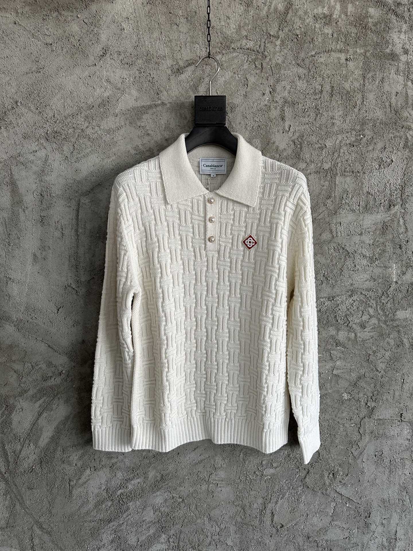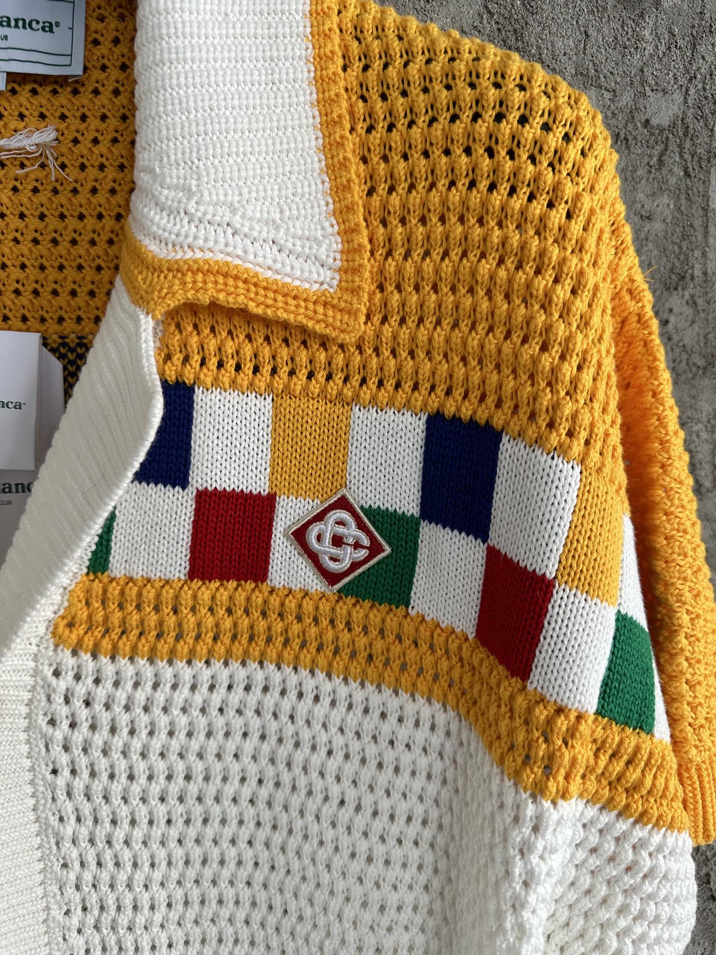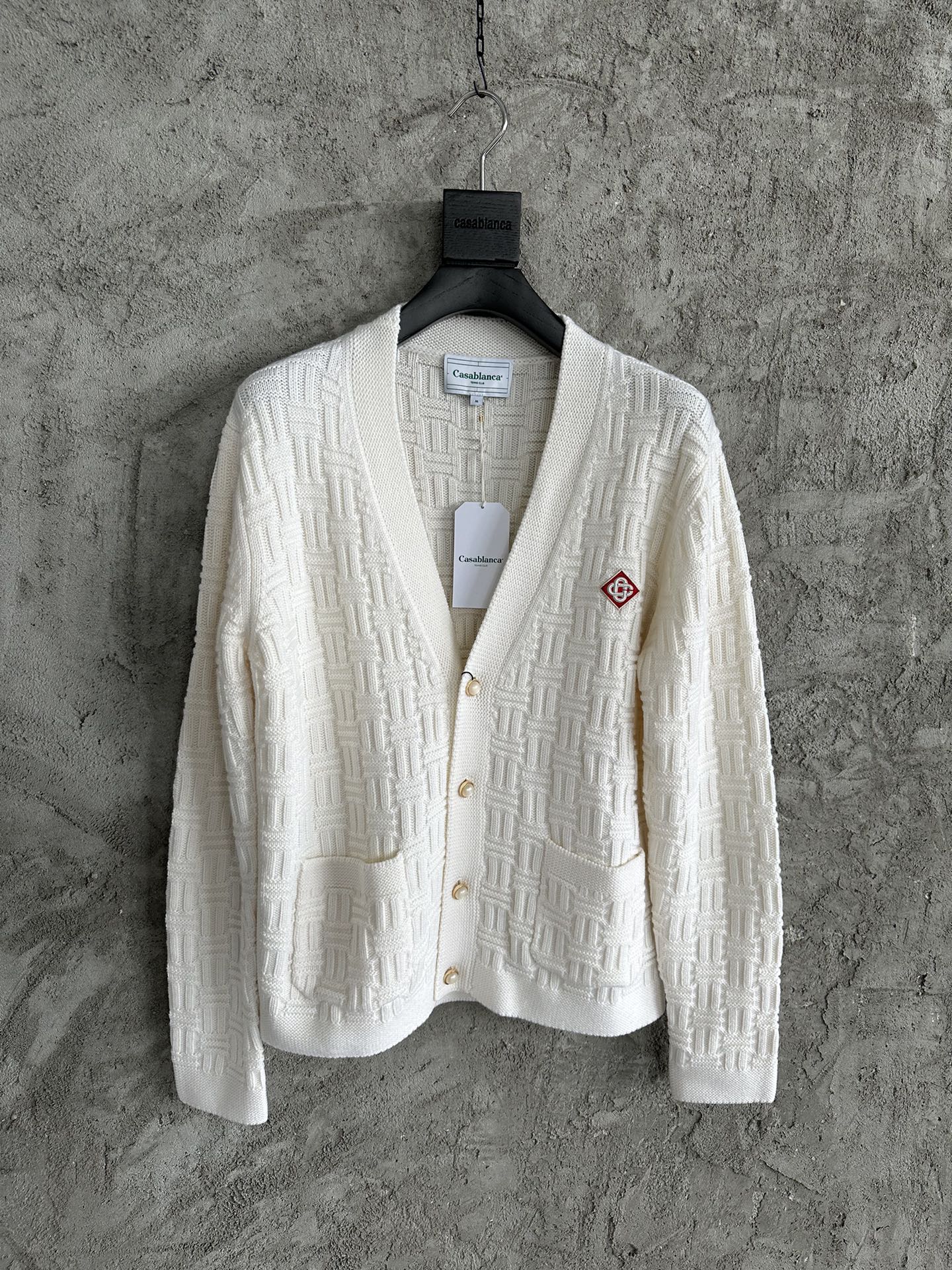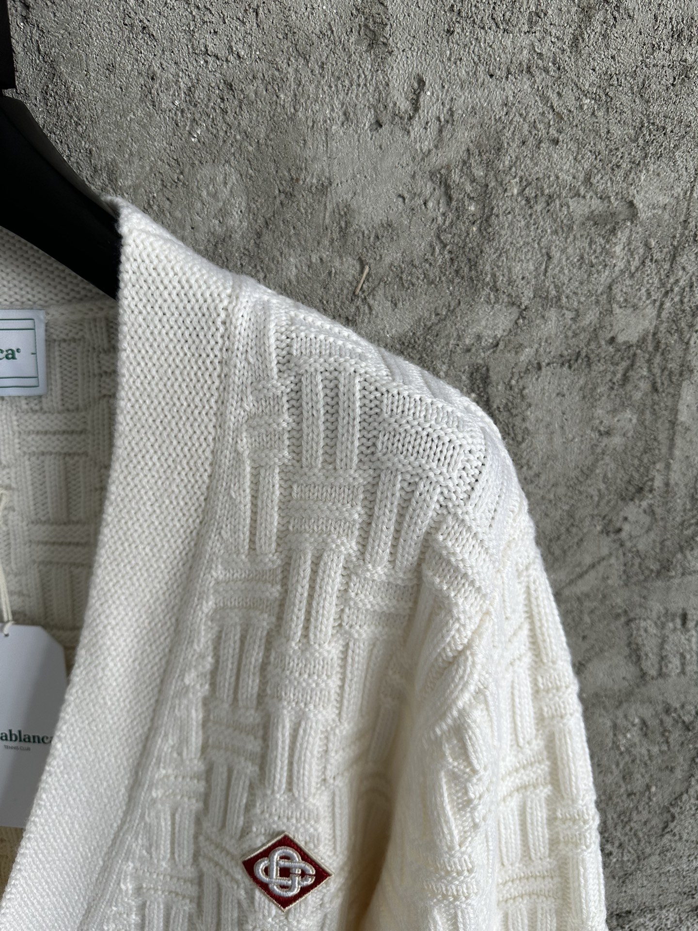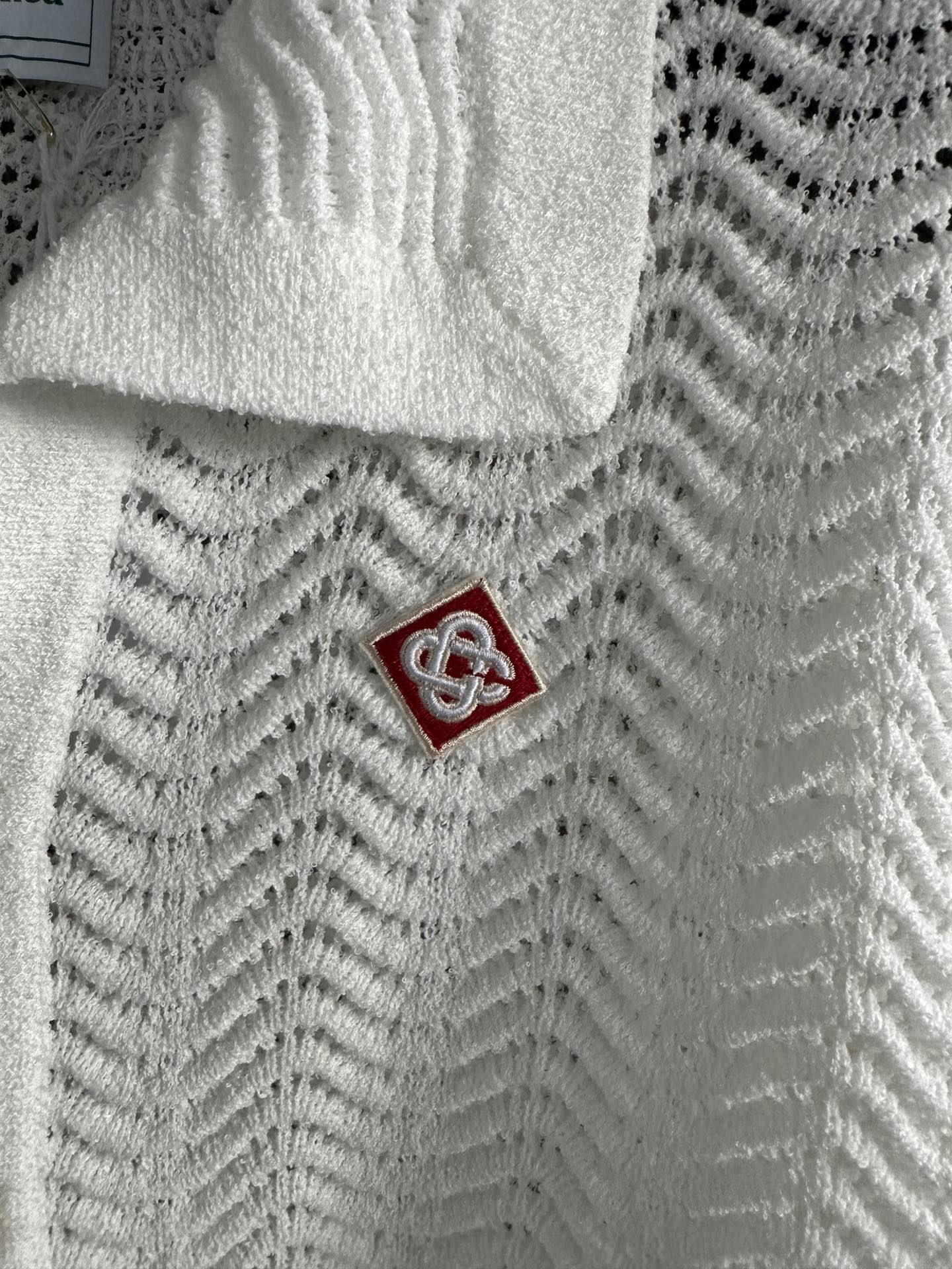 NIGO Casablanca Men's Summer White Lapel Single Breasted Skeleton Long Sleeve Knit Jacket #nigo72868