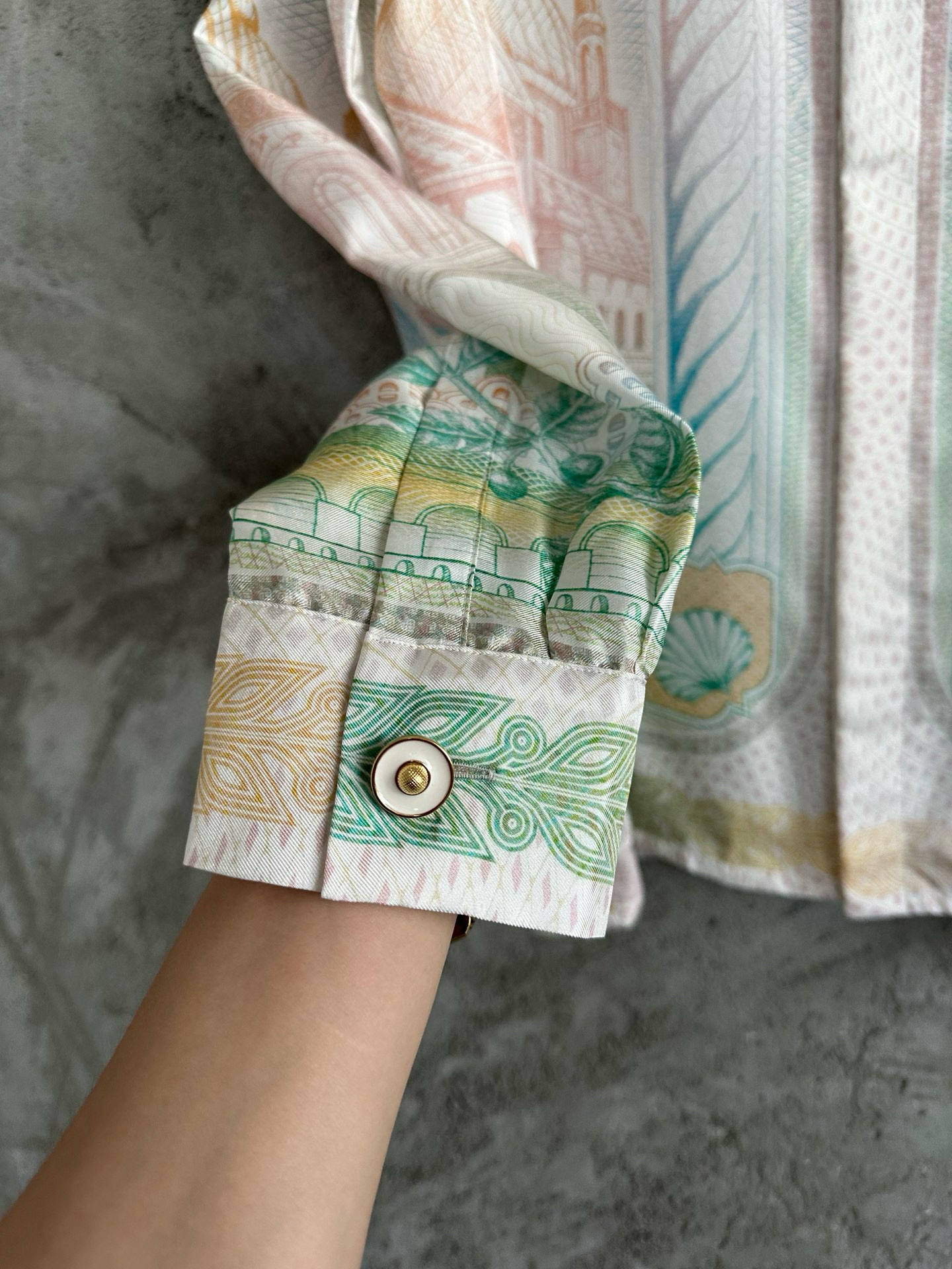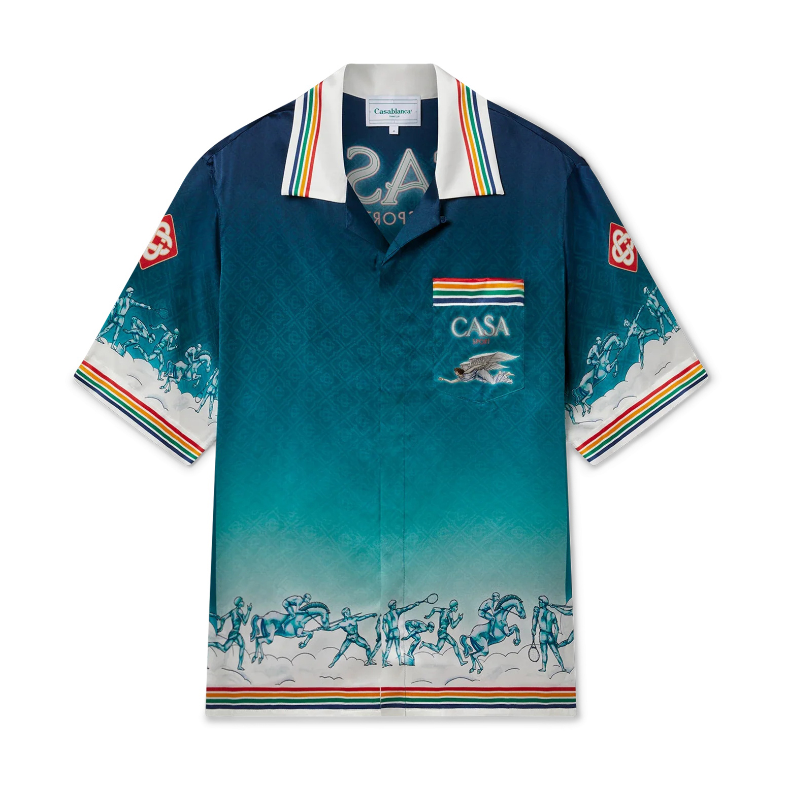 NIGO Casablanca Men's Summer Gradient Pattern Printed Lapel Loose Single Breasted Long Sleeve Shirt #nigo73424