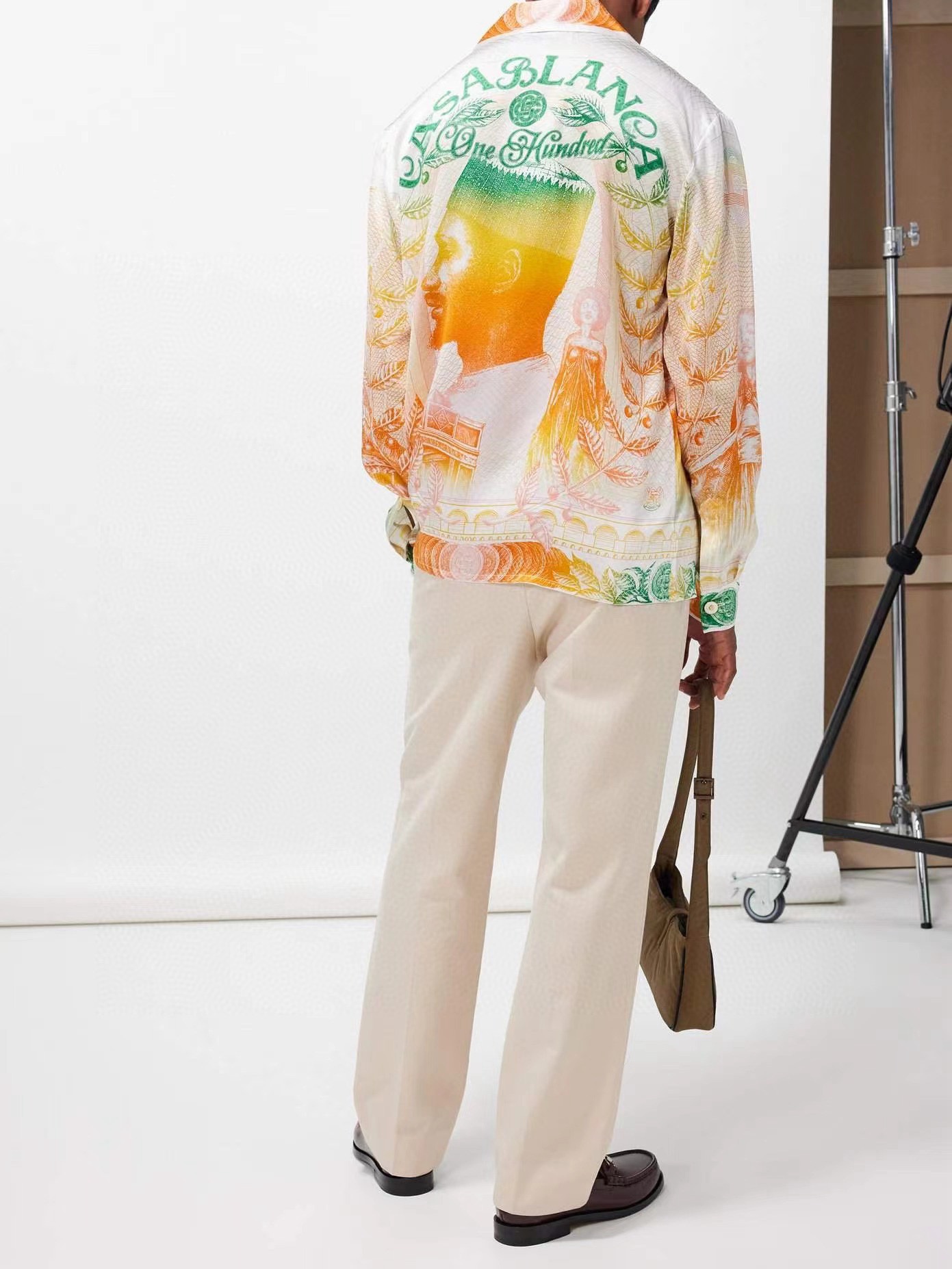 NIGO Casablanca Men's Summer Portrait Print Lapel Long Sleeve Single Breasted Shirt #nigo73579