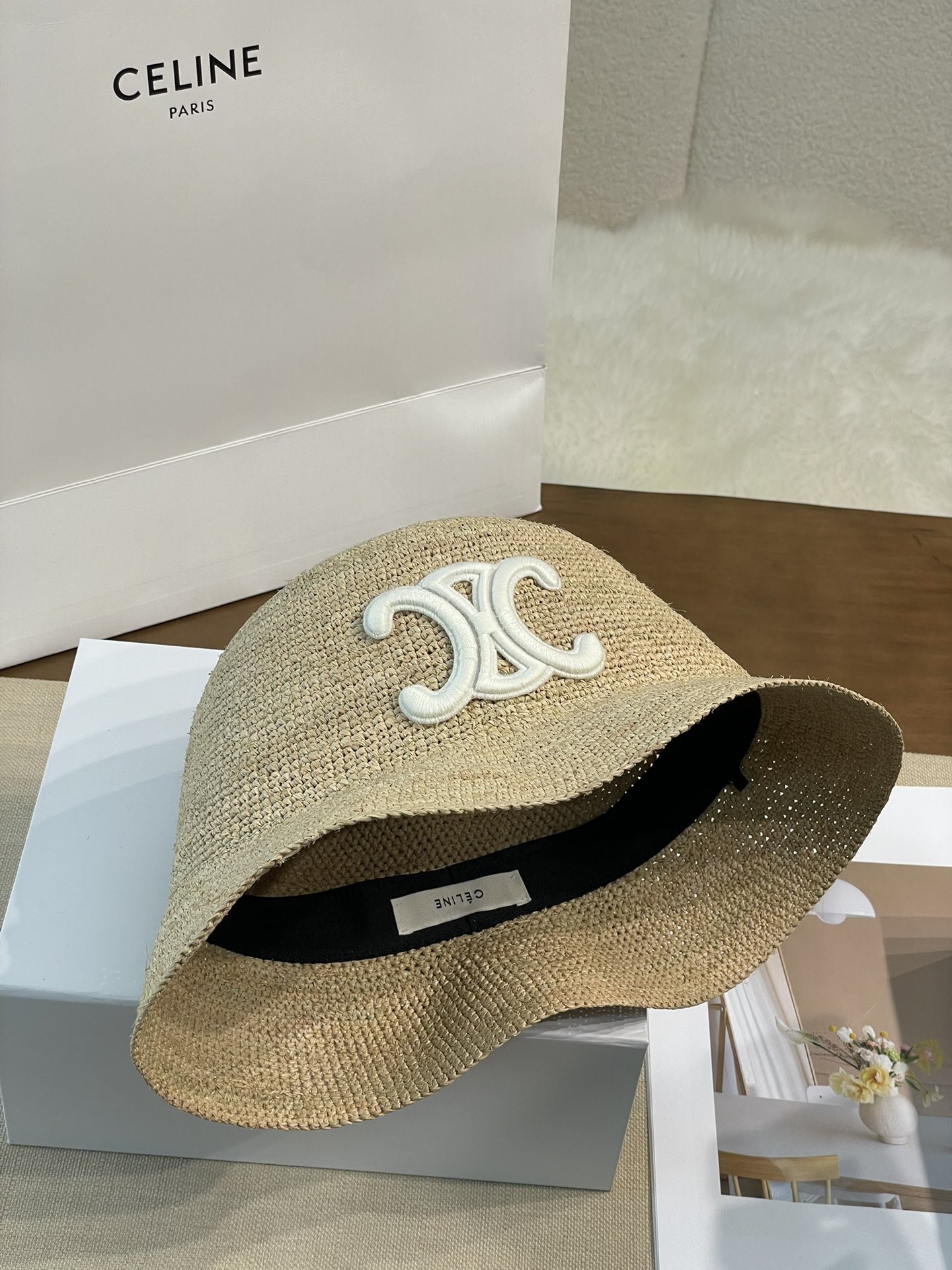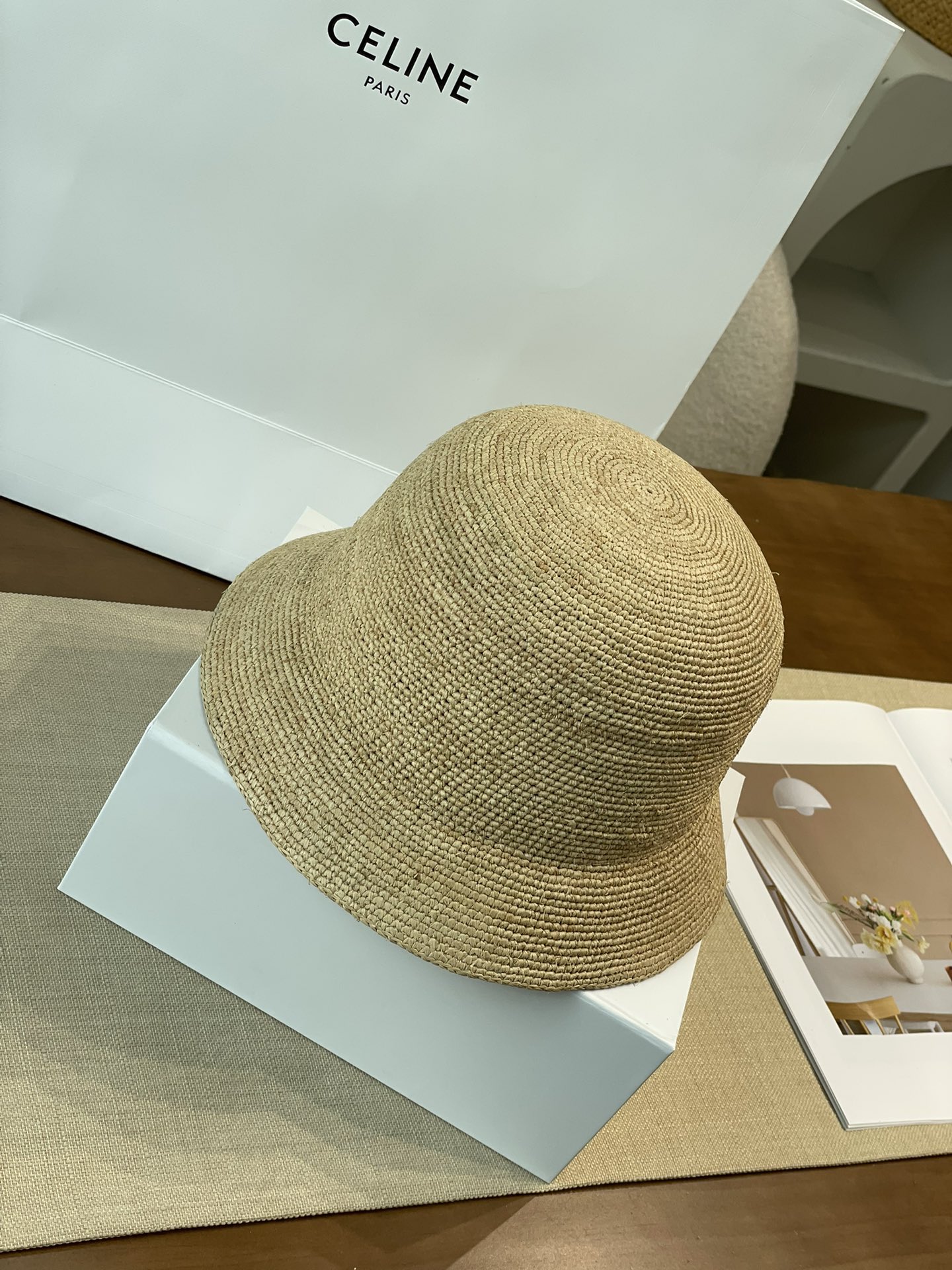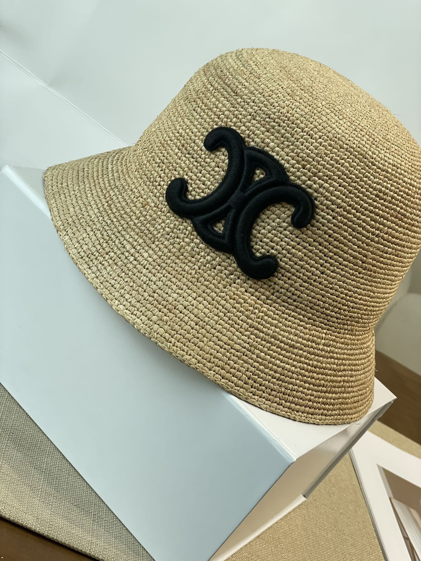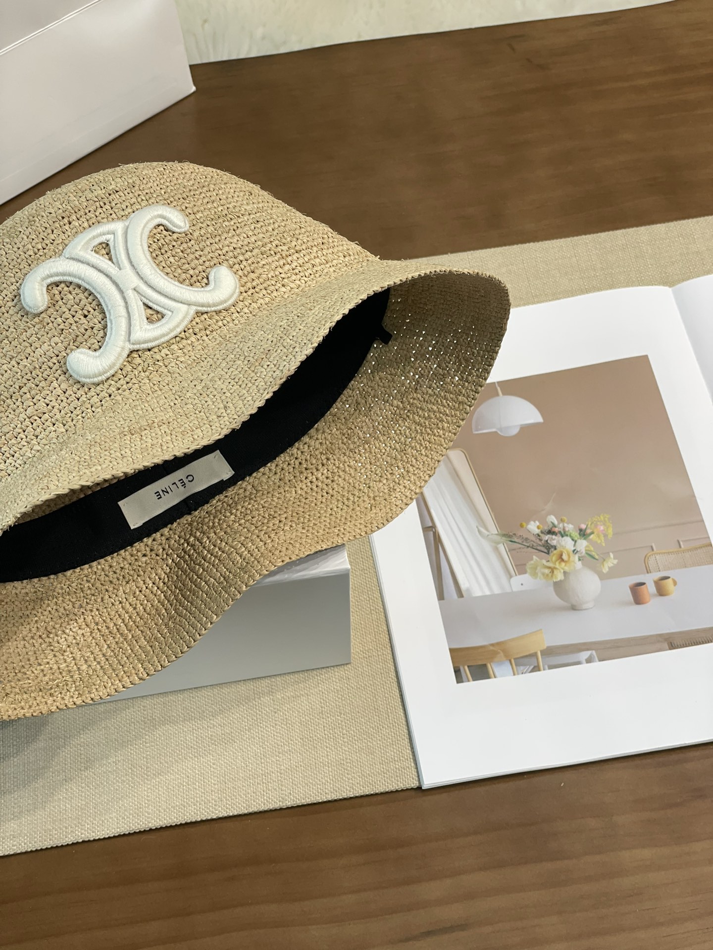 NIGO Celine Men's and Women's Embroidered Logo Pattern Khaki Raffia Woven Fisherman's Hat Cap #nigo76174