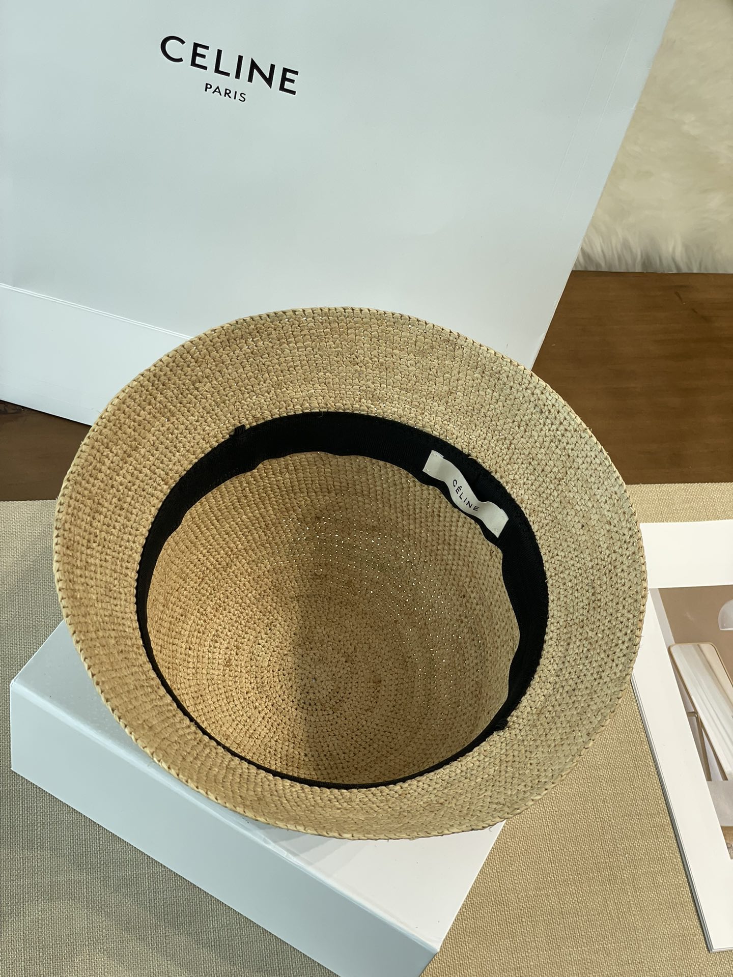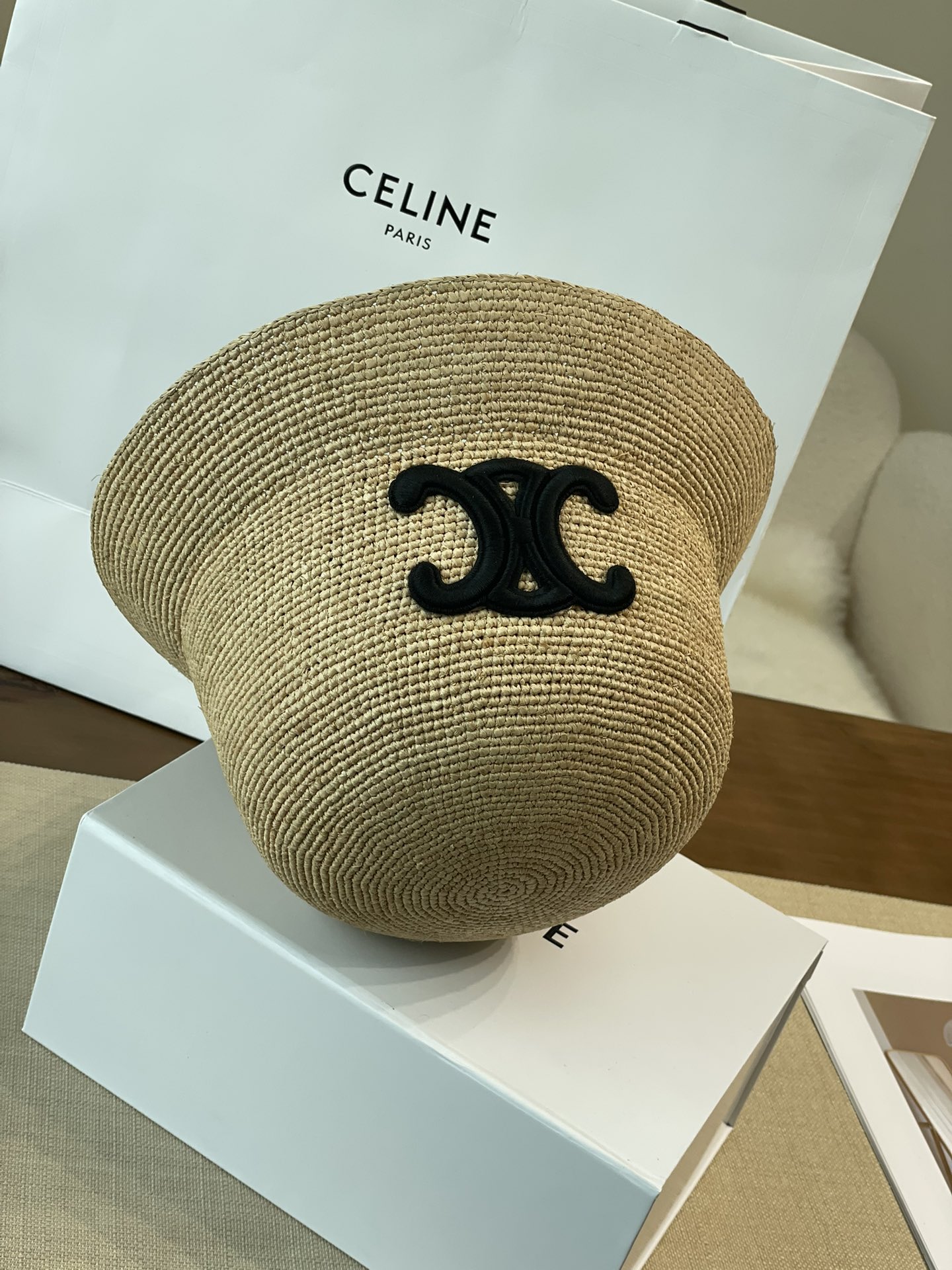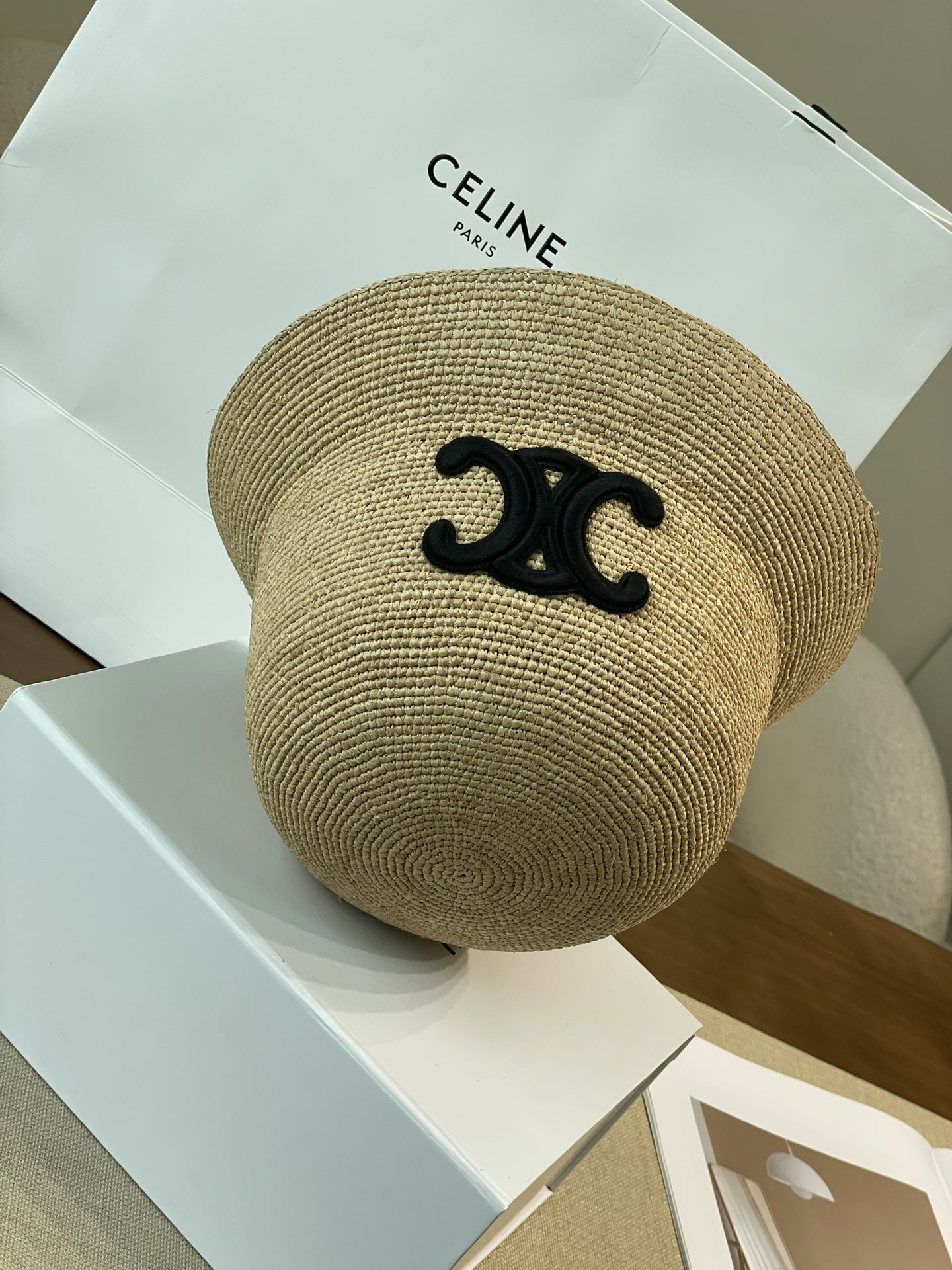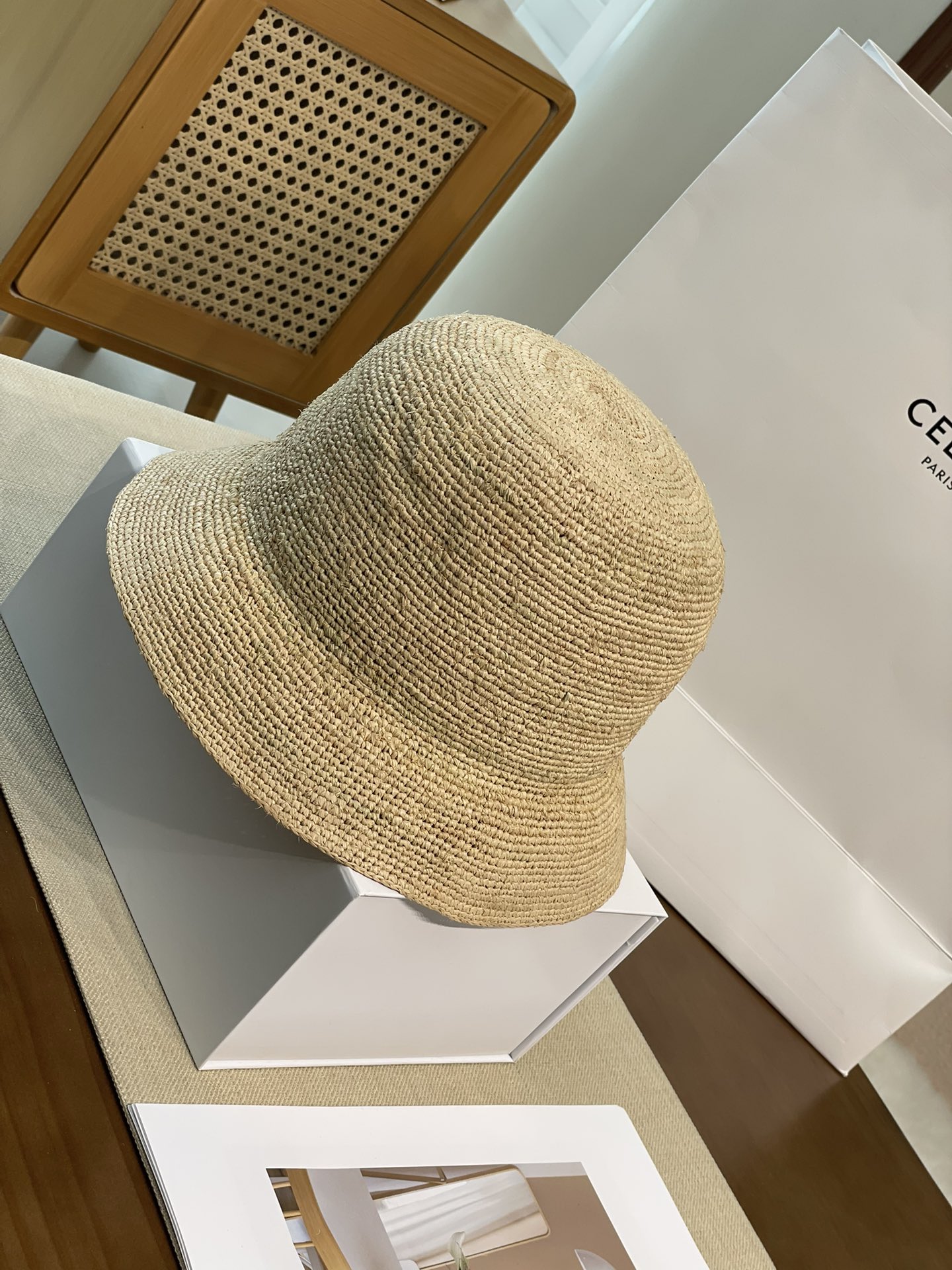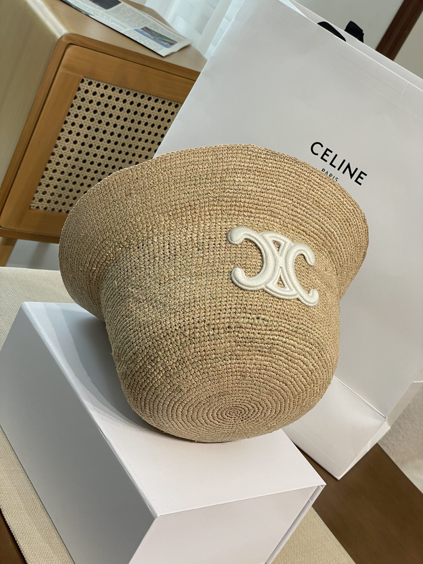 NIGO Celine Men's and Women's Embroidered Logo Pattern Khaki Raffia Woven Fisherman's Hat Cap #nigo76174