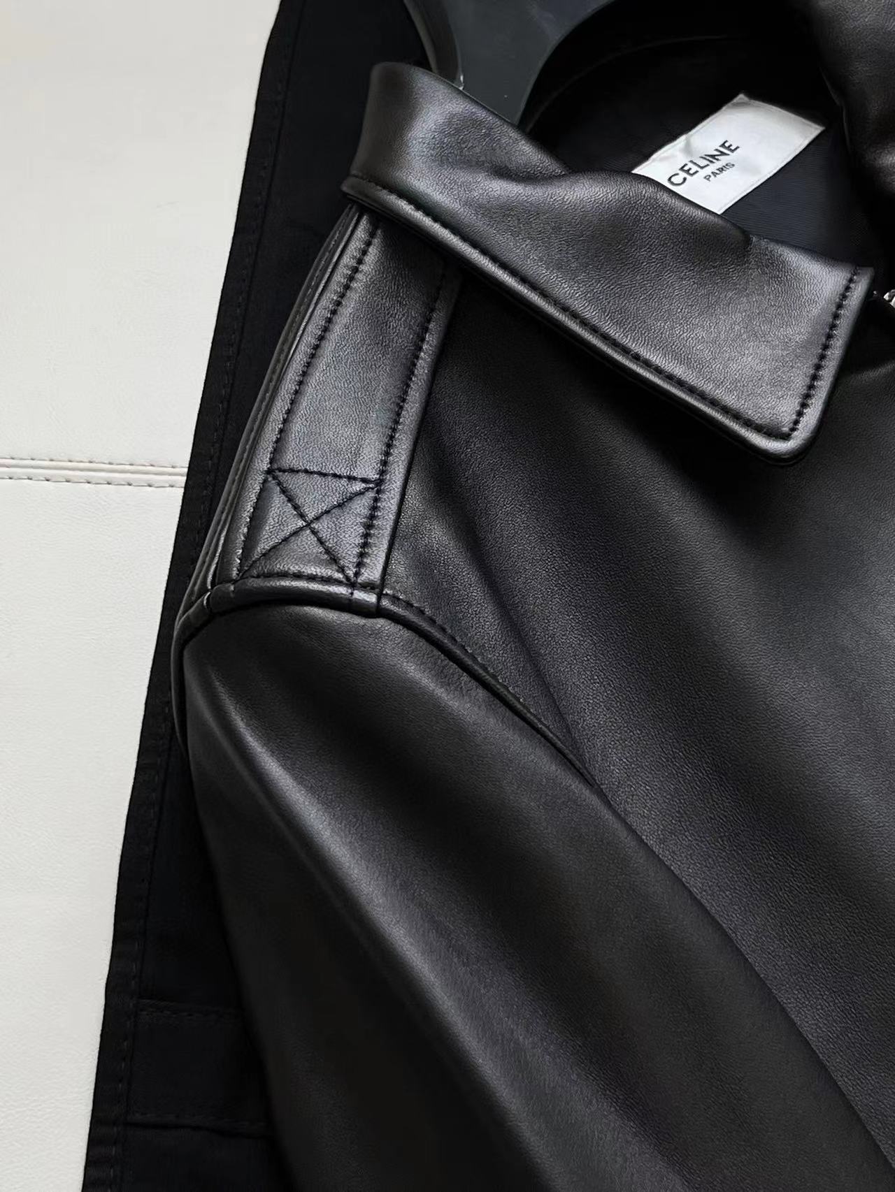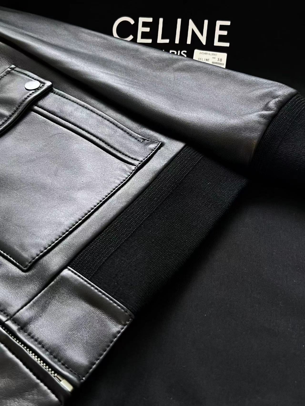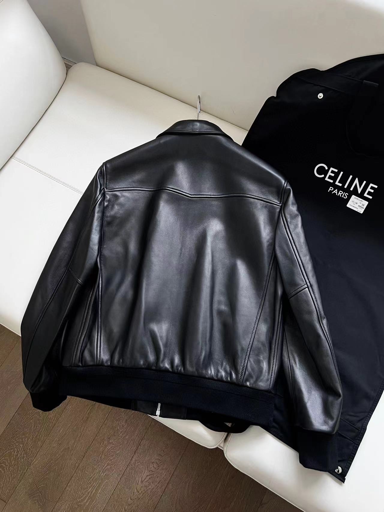 NIGO Celine Men's Fall And Winter Black Lambskin Lapel Zipper Long Sleeve Jacket #nigo98456