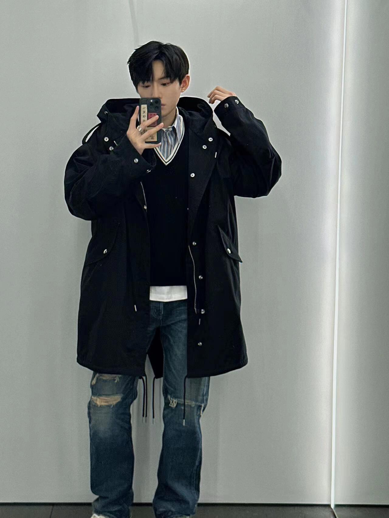 NIGO Celine Men's Spring and Autumn Black Hooded Pocket Zipper Parker Windbreaker Jacket #nigo73178