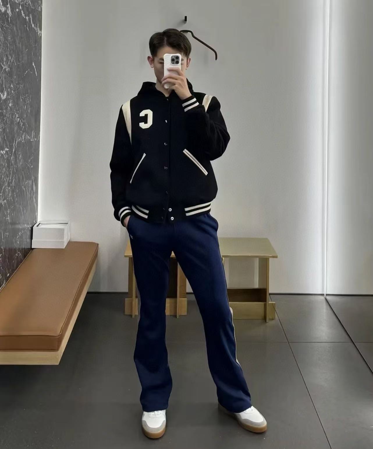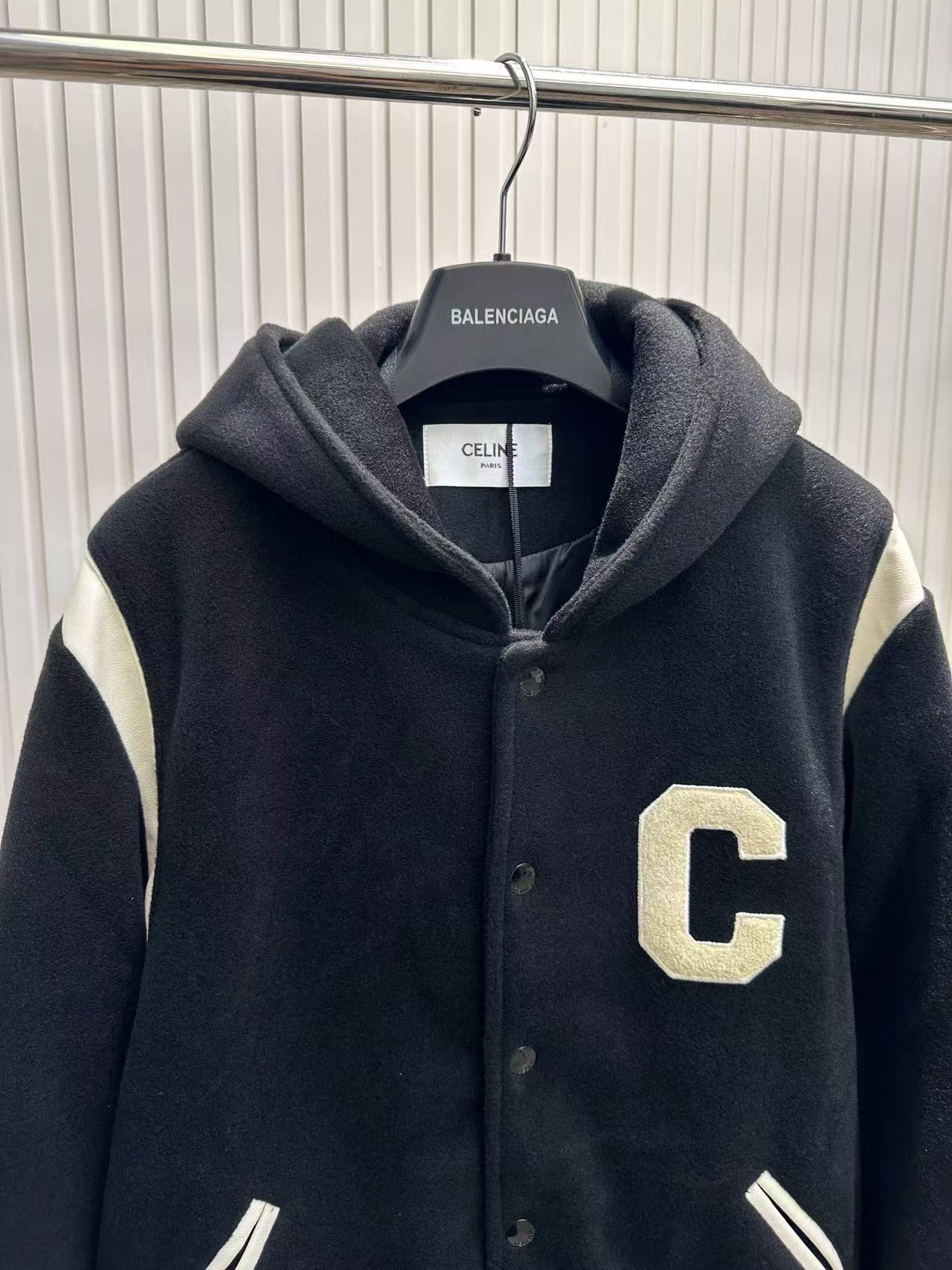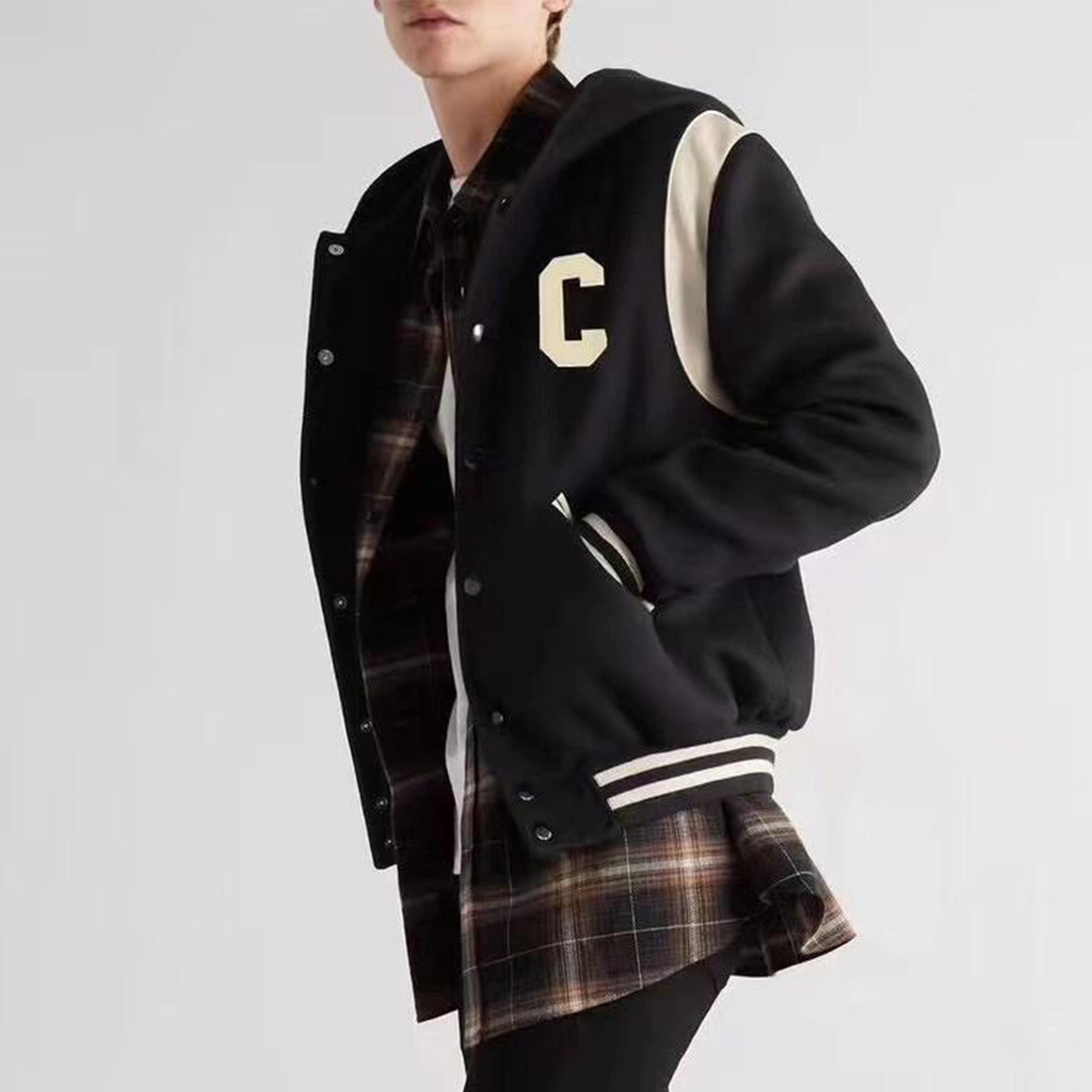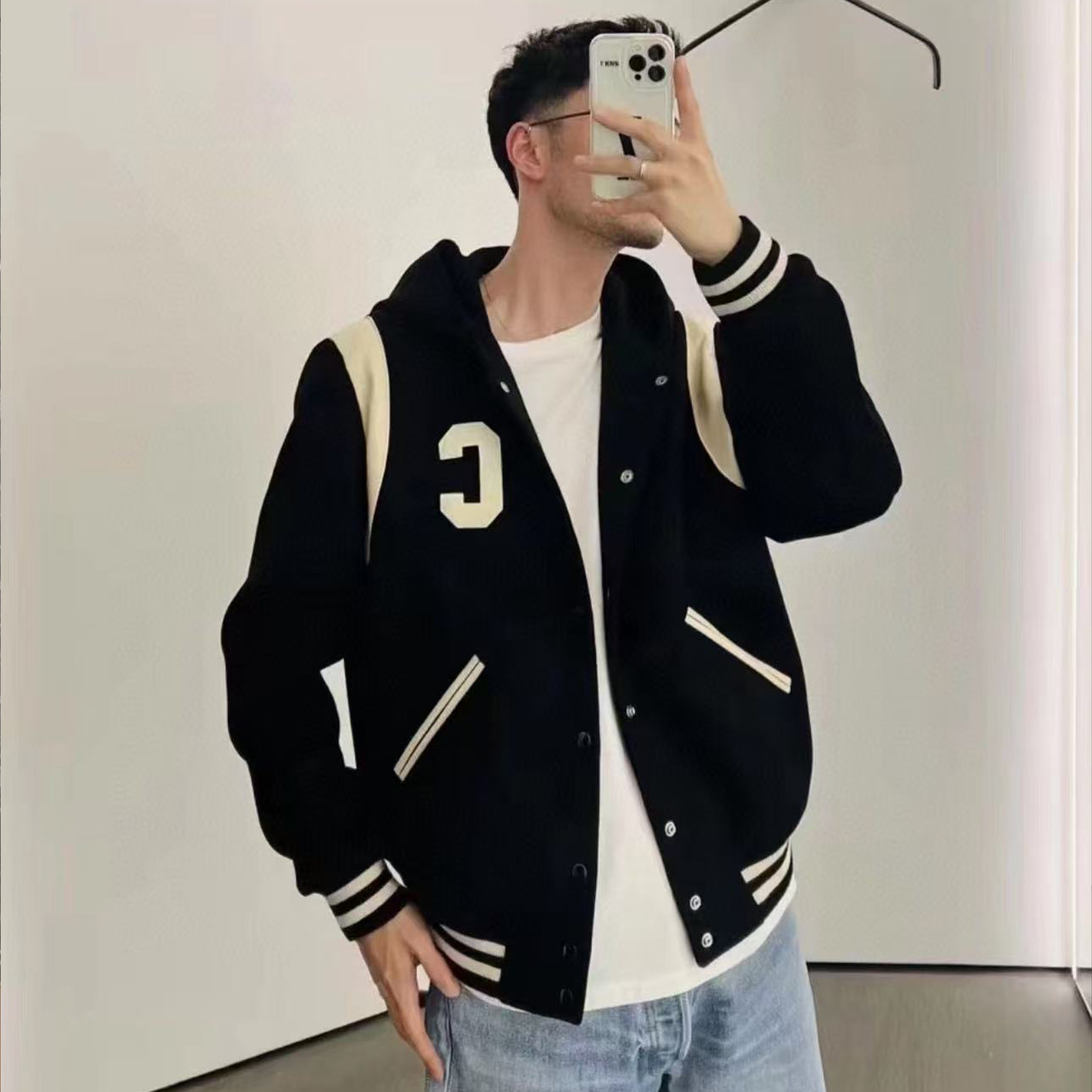 NIGO Celine Men's Spring And Autumn Colour Blocking Casual Single-breasted Jacket Logo Wool Blend Hooded Baseball Coat Jacket #nigo71844
