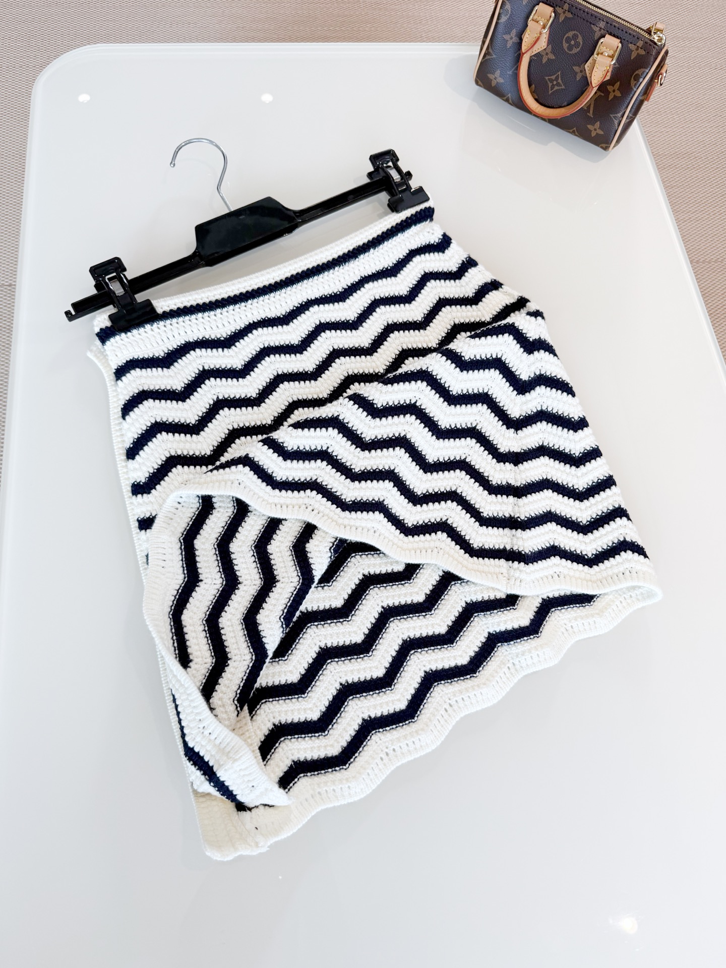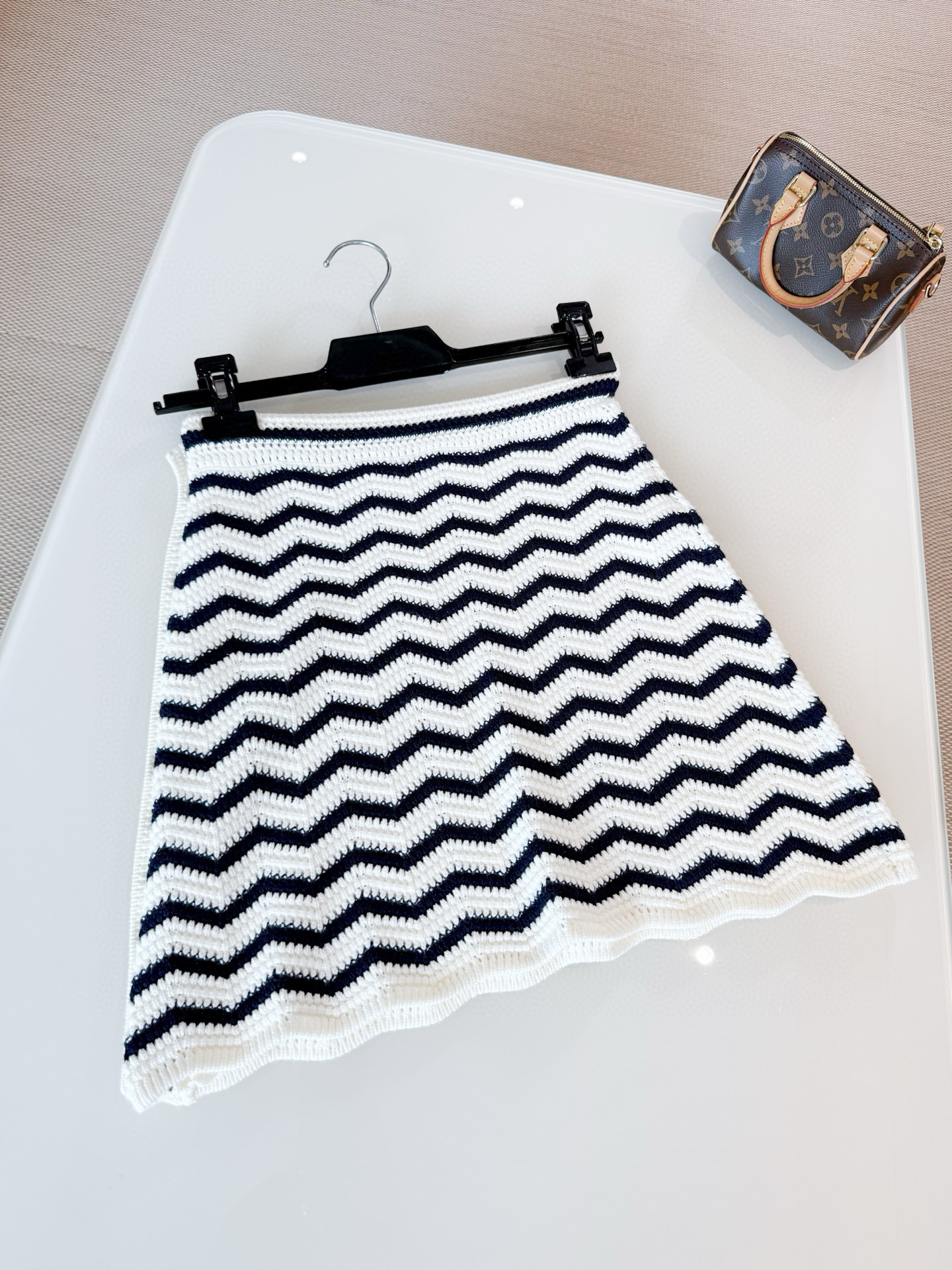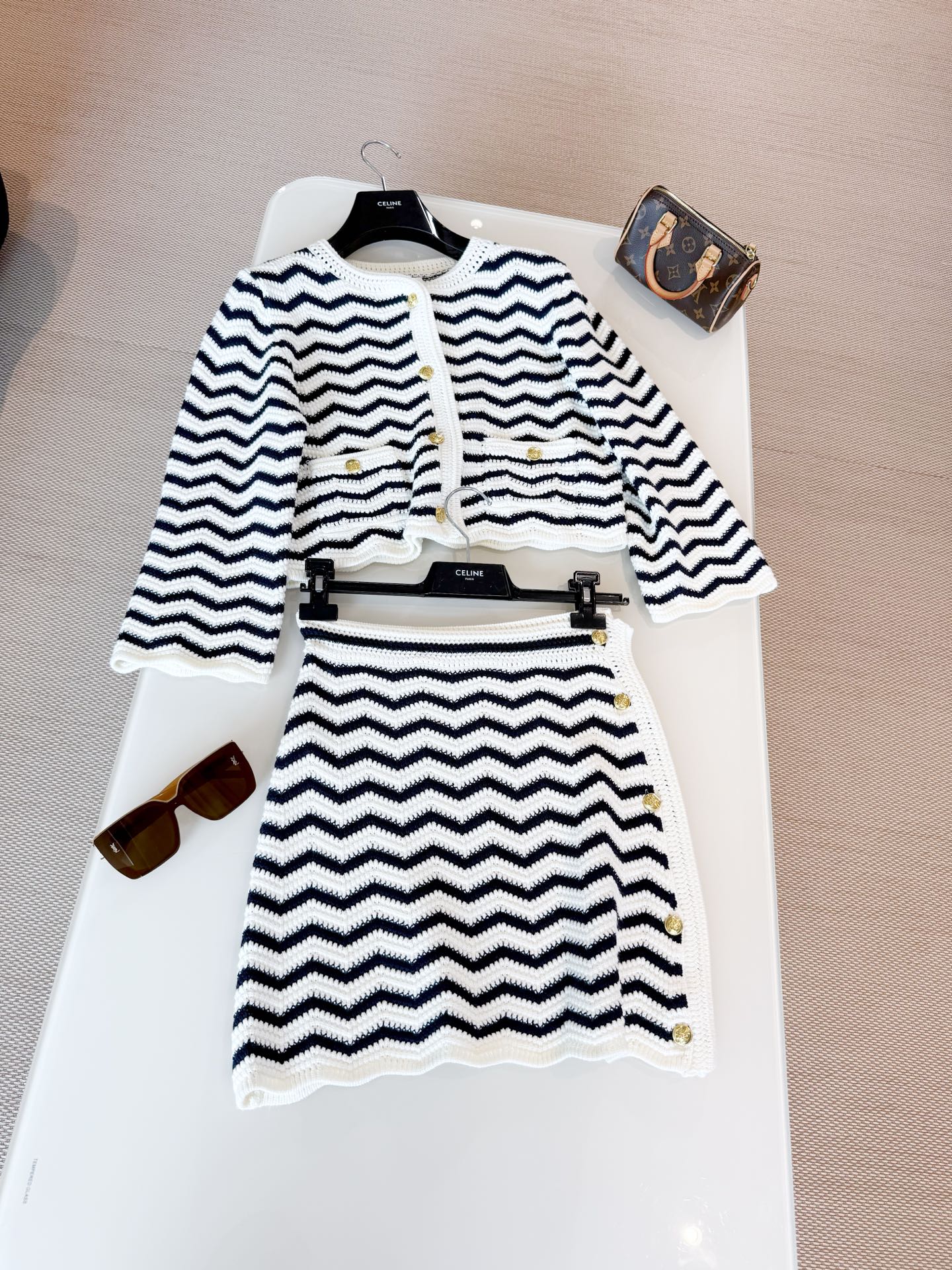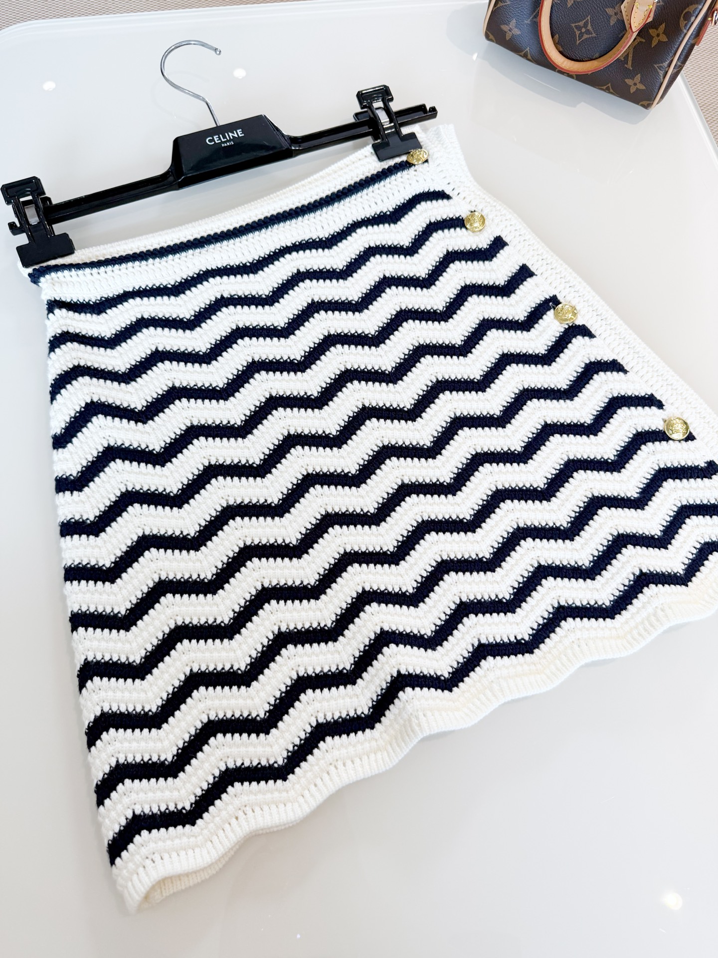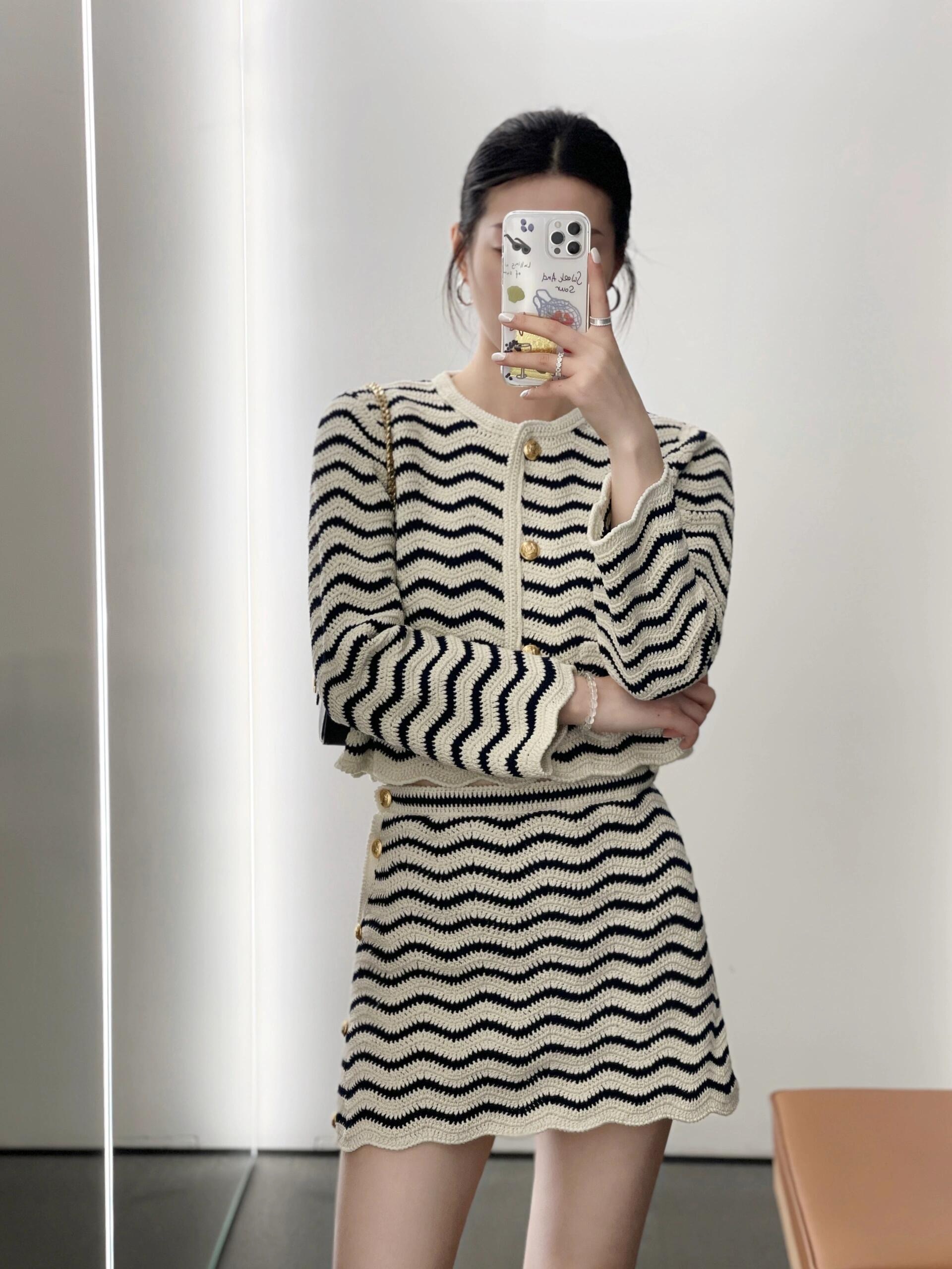 NIGO Celine Women's Fall And Winter Black And White Wave Striped Knitted Cardigan Wrap Hip Half Skirt Fashionable And Elegant Set Suit Ngvp #nigo2186
