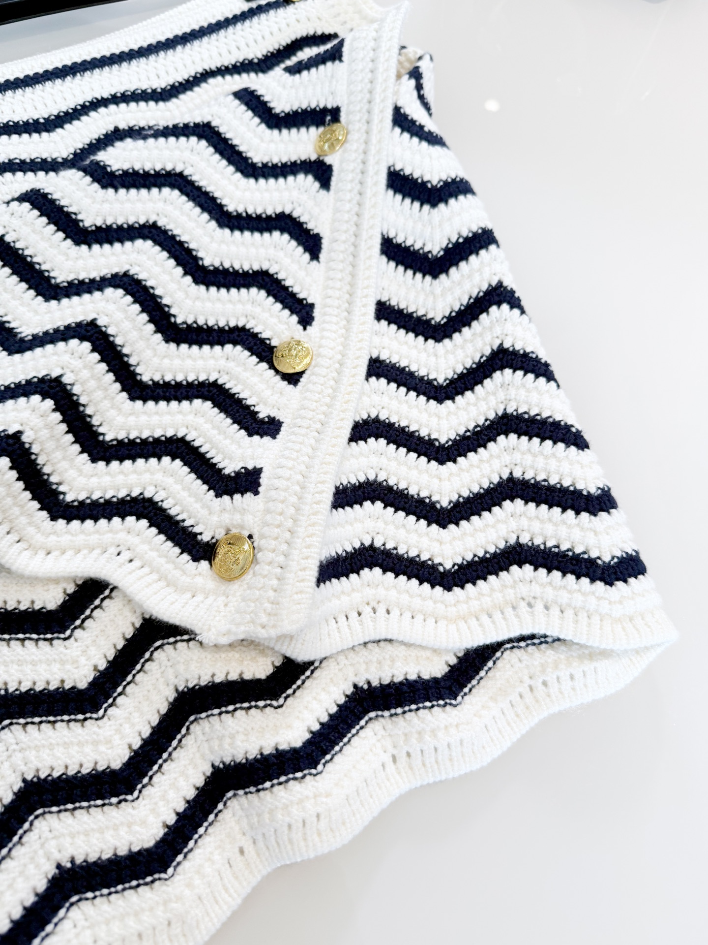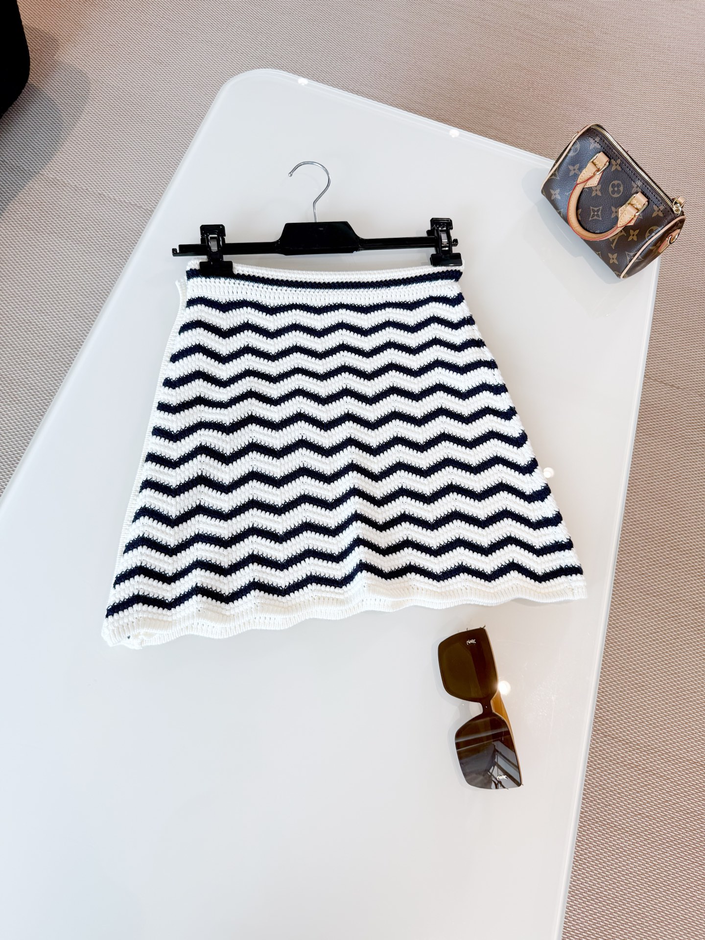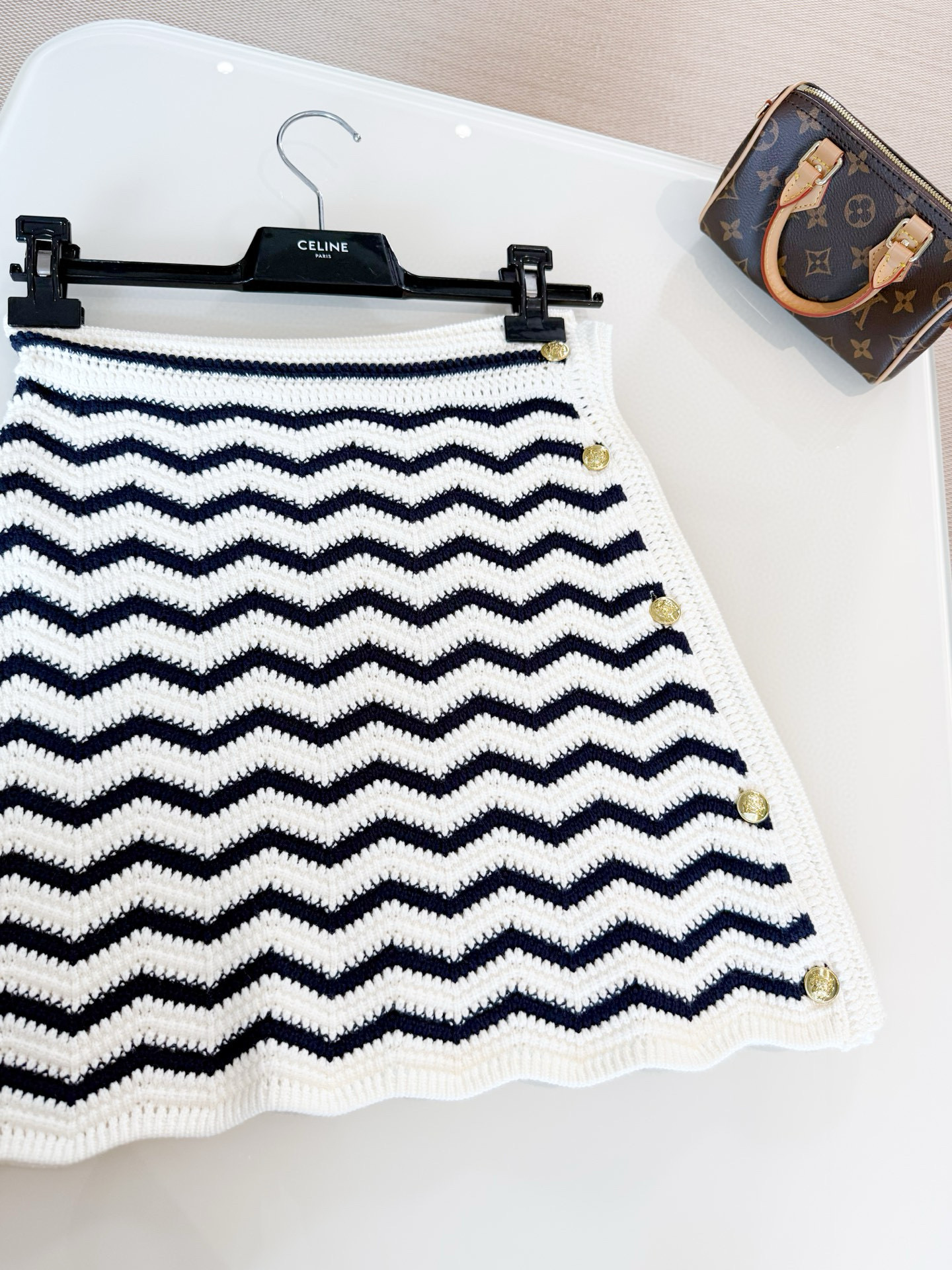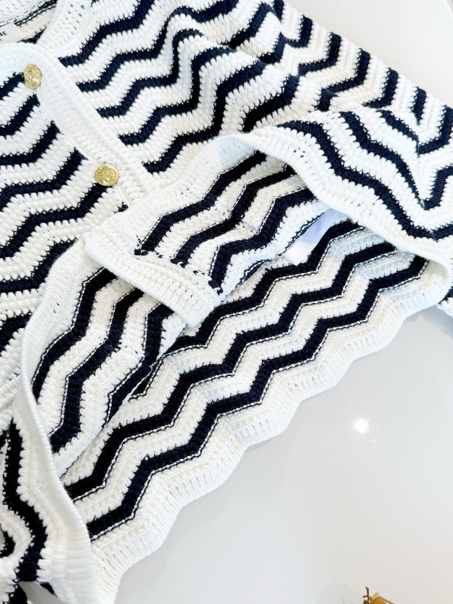 NIGO Celine Women's Fall And Winter Black And White Wave Striped Knitted Cardigan Wrap Hip Half Skirt Fashionable And Elegant Set Suit Ngvp #nigo2186
