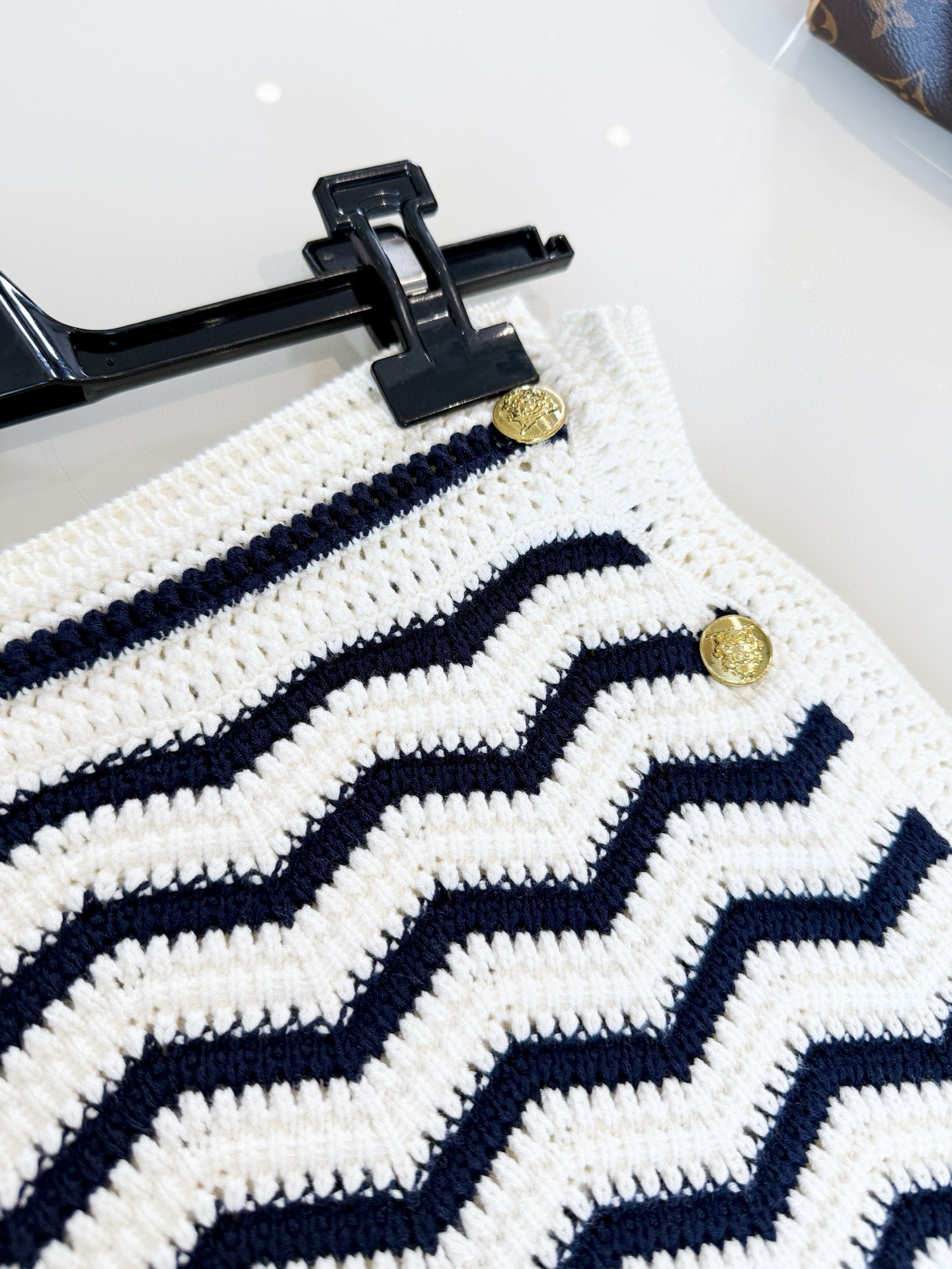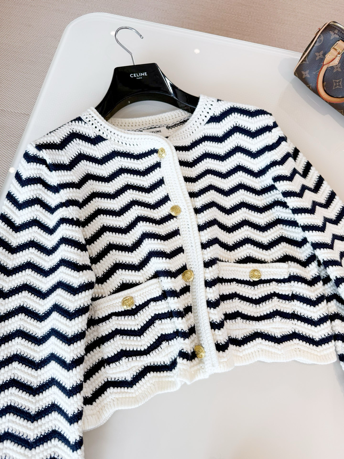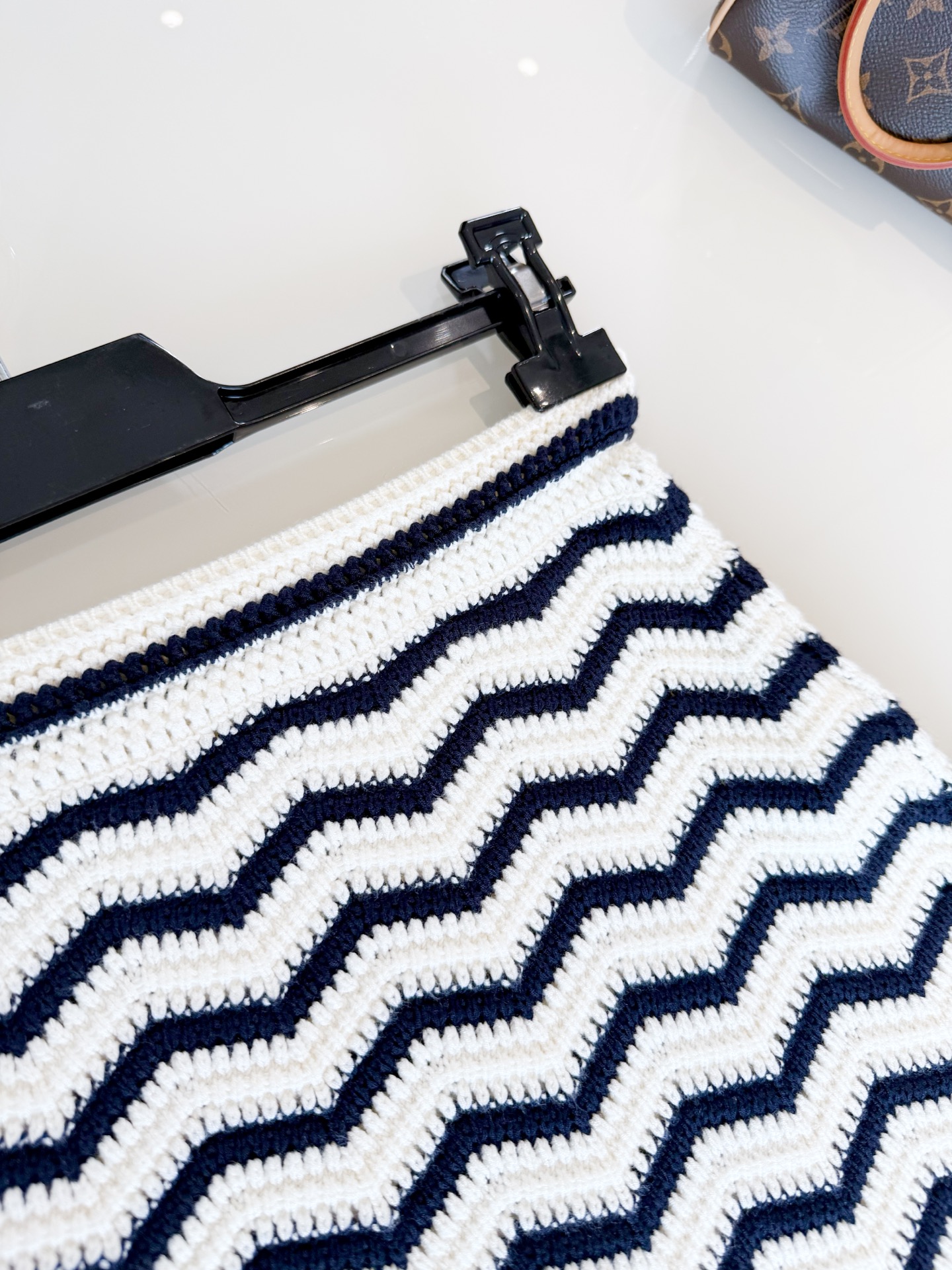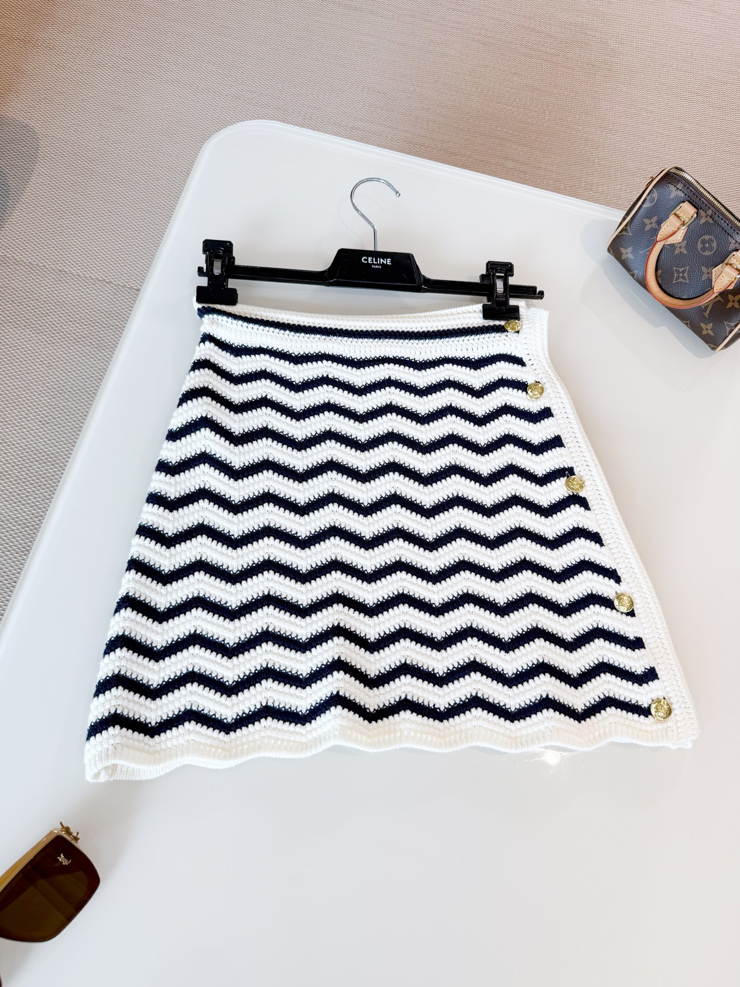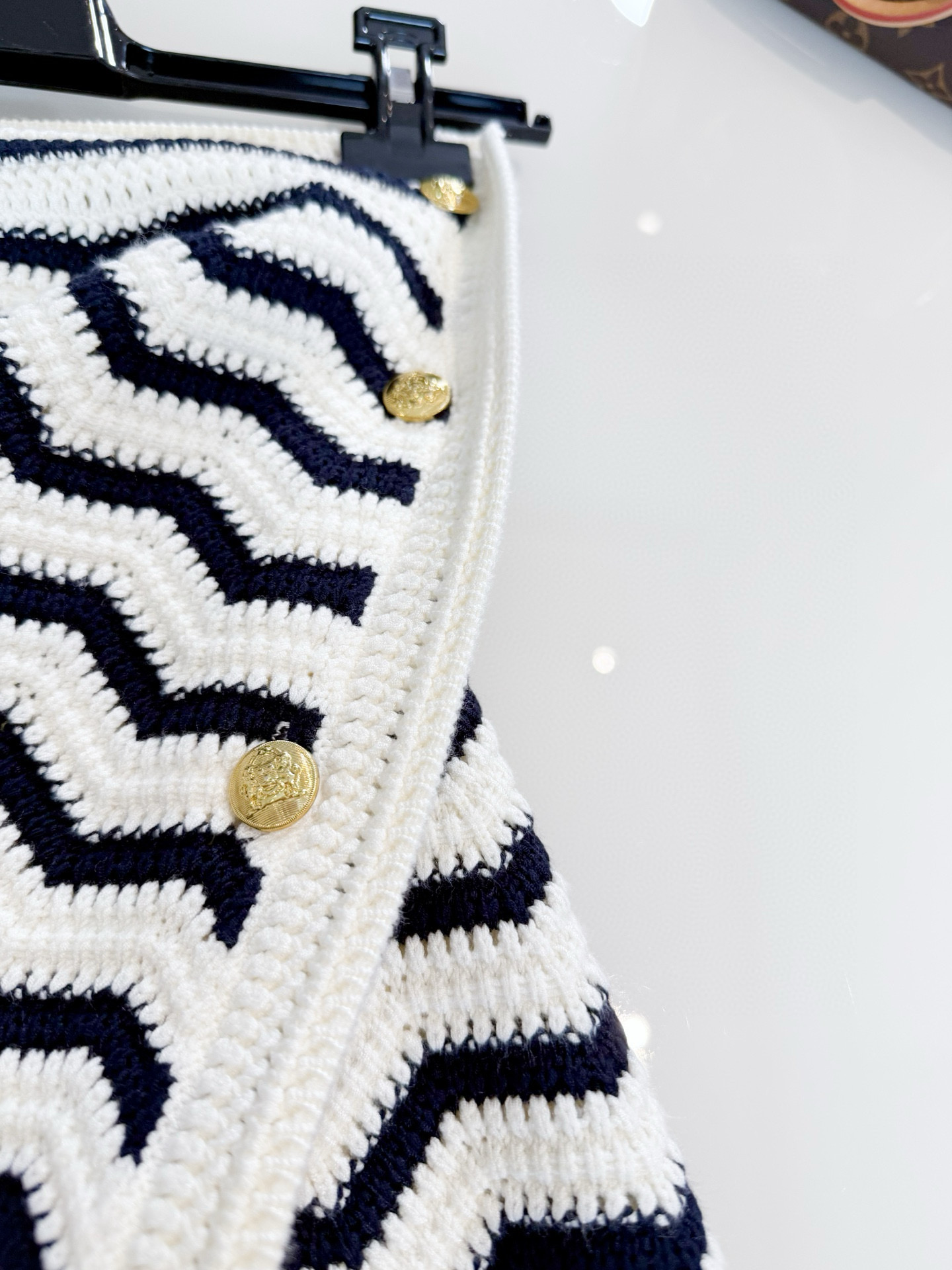 NIGO Celine Women's Fall And Winter Black And White Wave Striped Knitted Cardigan Wrap Hip Half Skirt Fashionable And Elegant Set Suit Ngvp #nigo2186