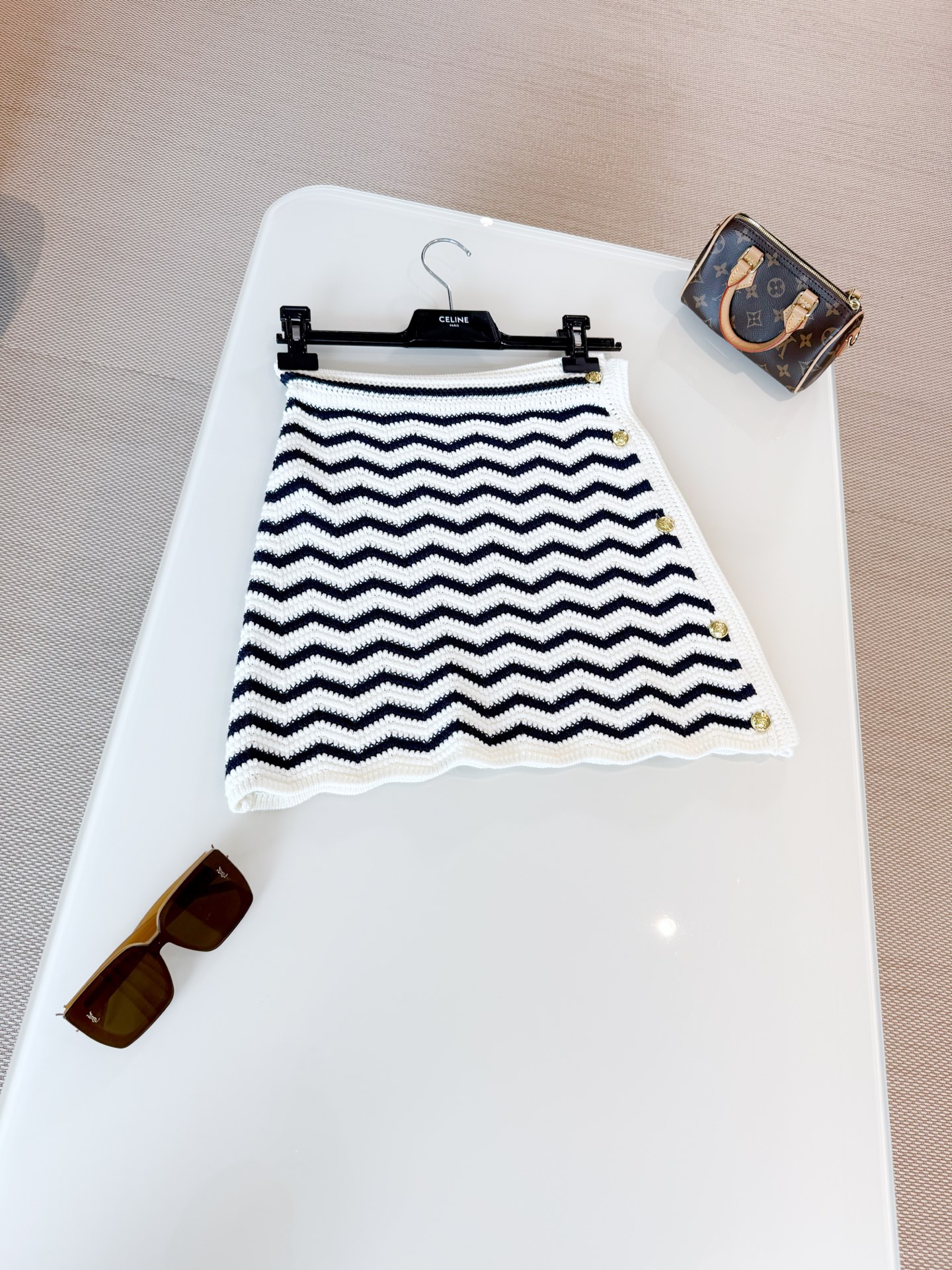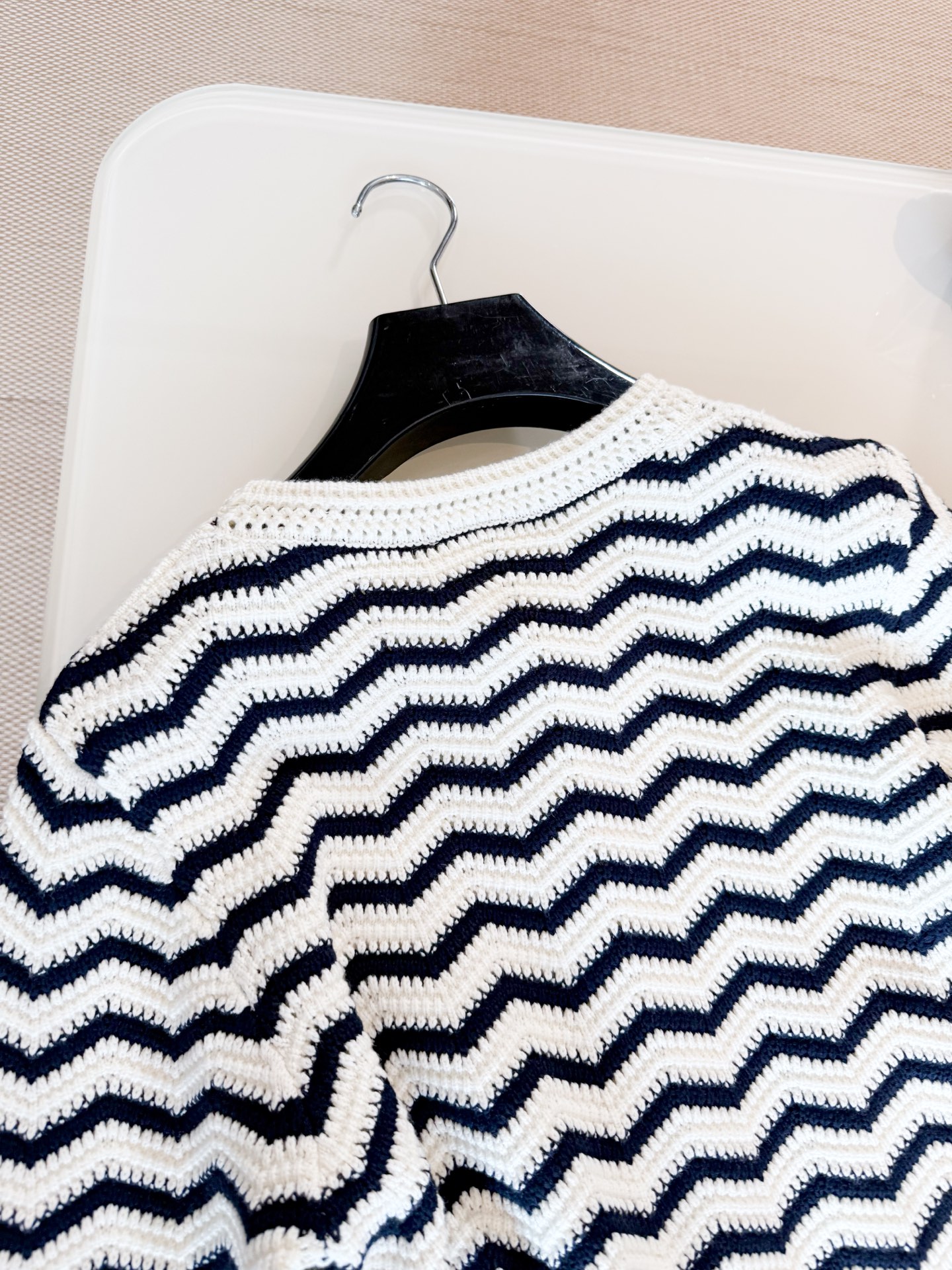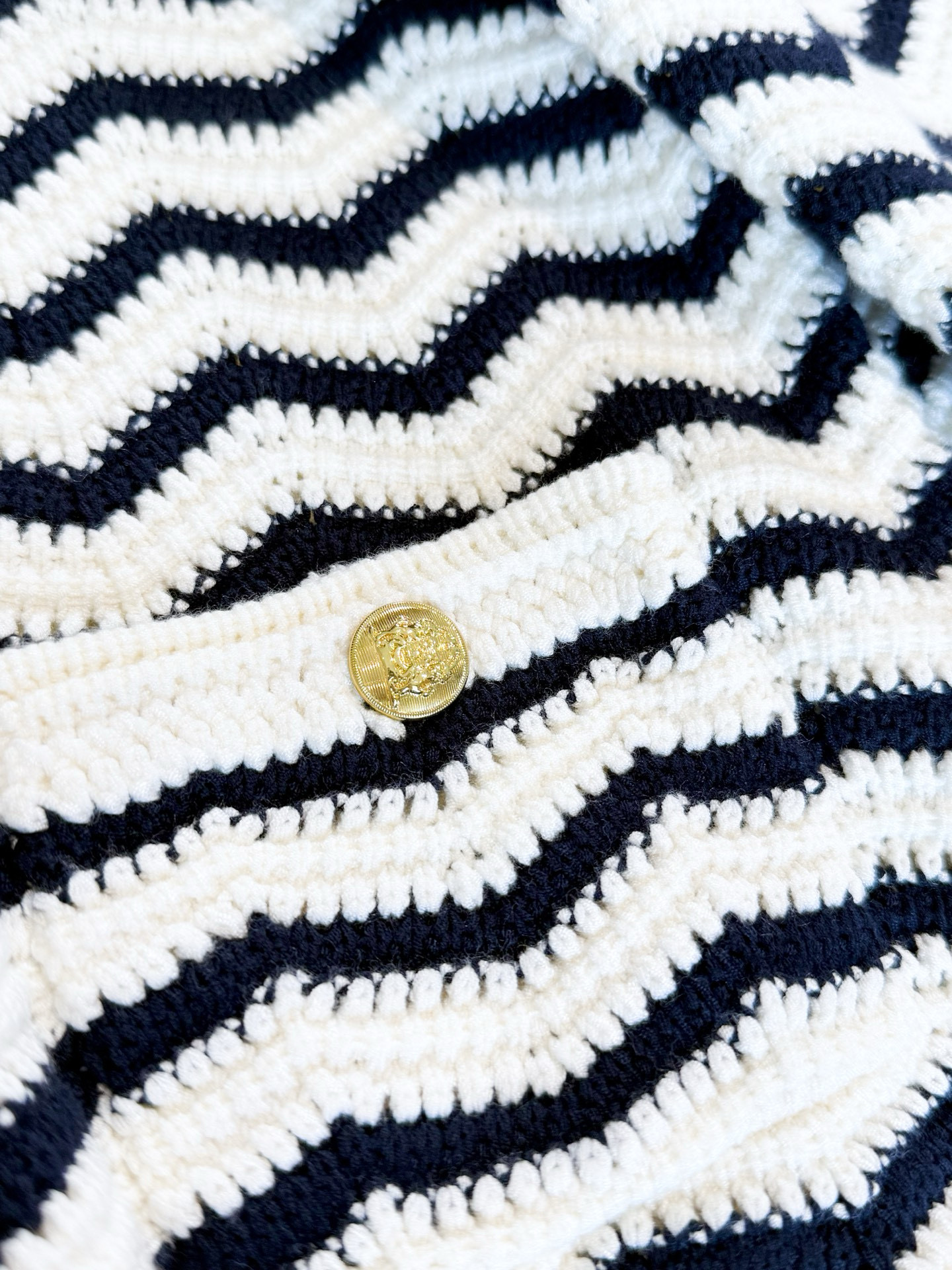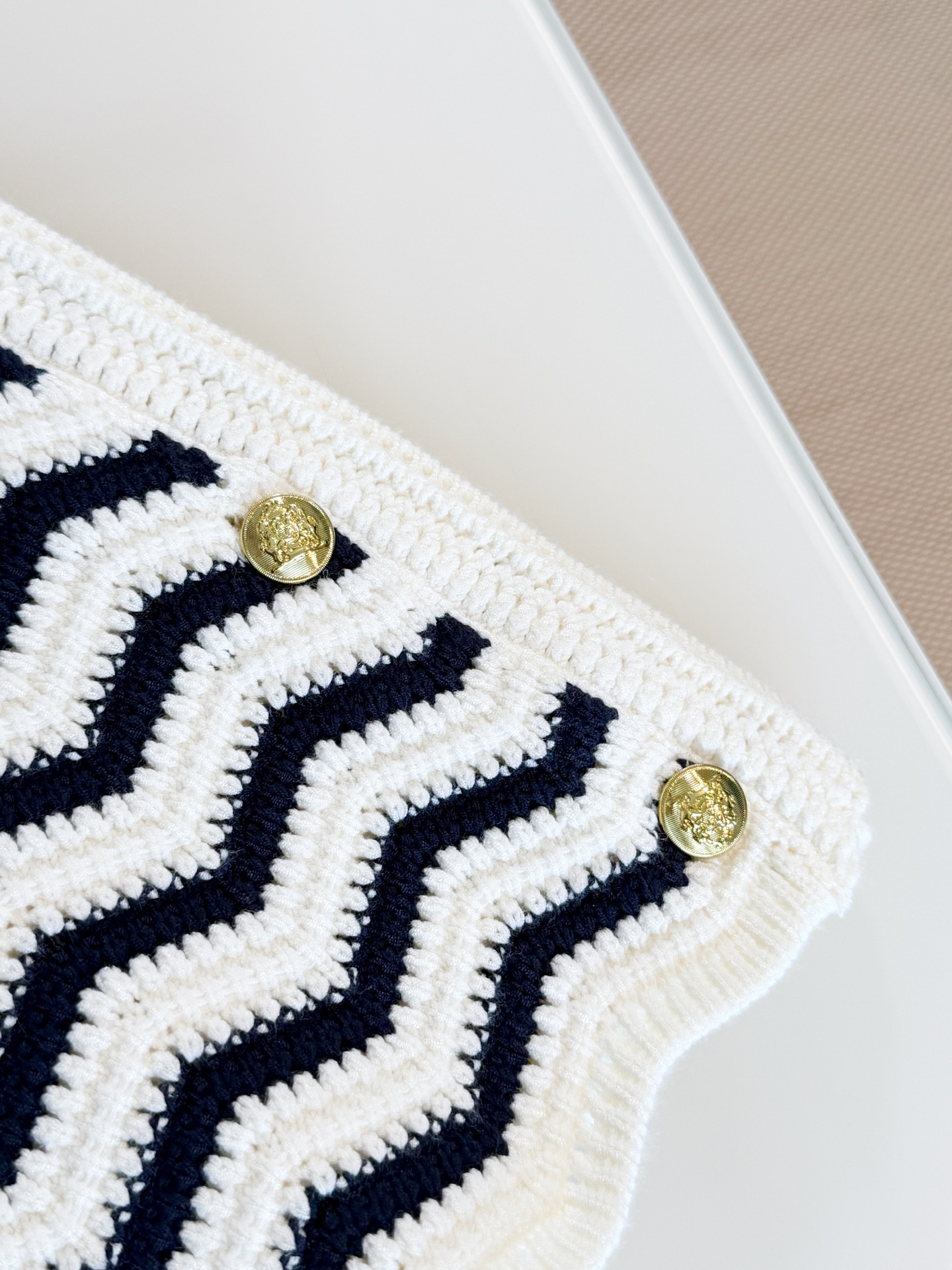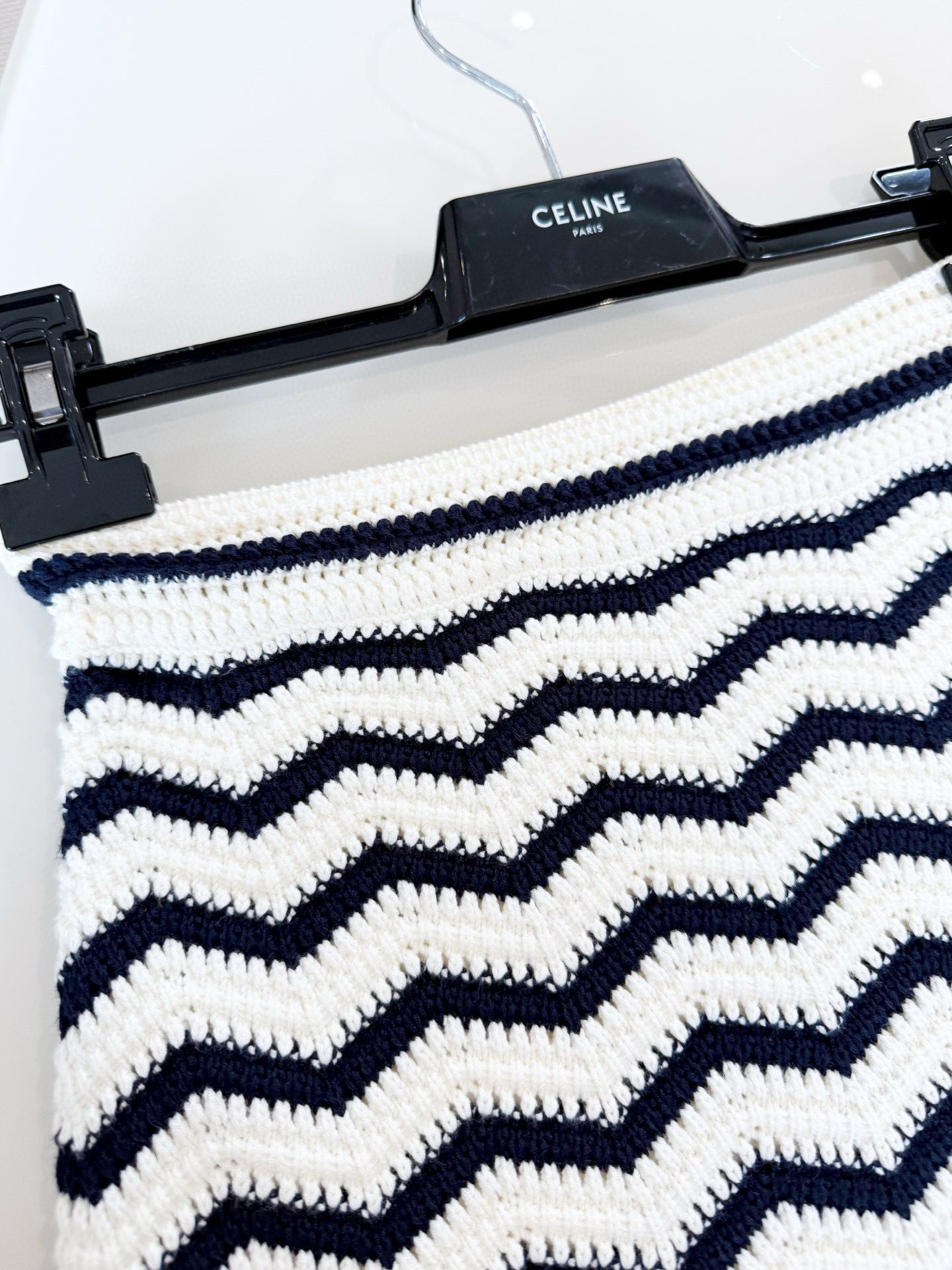 NIGO Celine Women's Fall And Winter Black And White Wave Striped Knitted Cardigan Wrap Hip Half Skirt Fashionable And Elegant Set Suit Ngvp #nigo2186