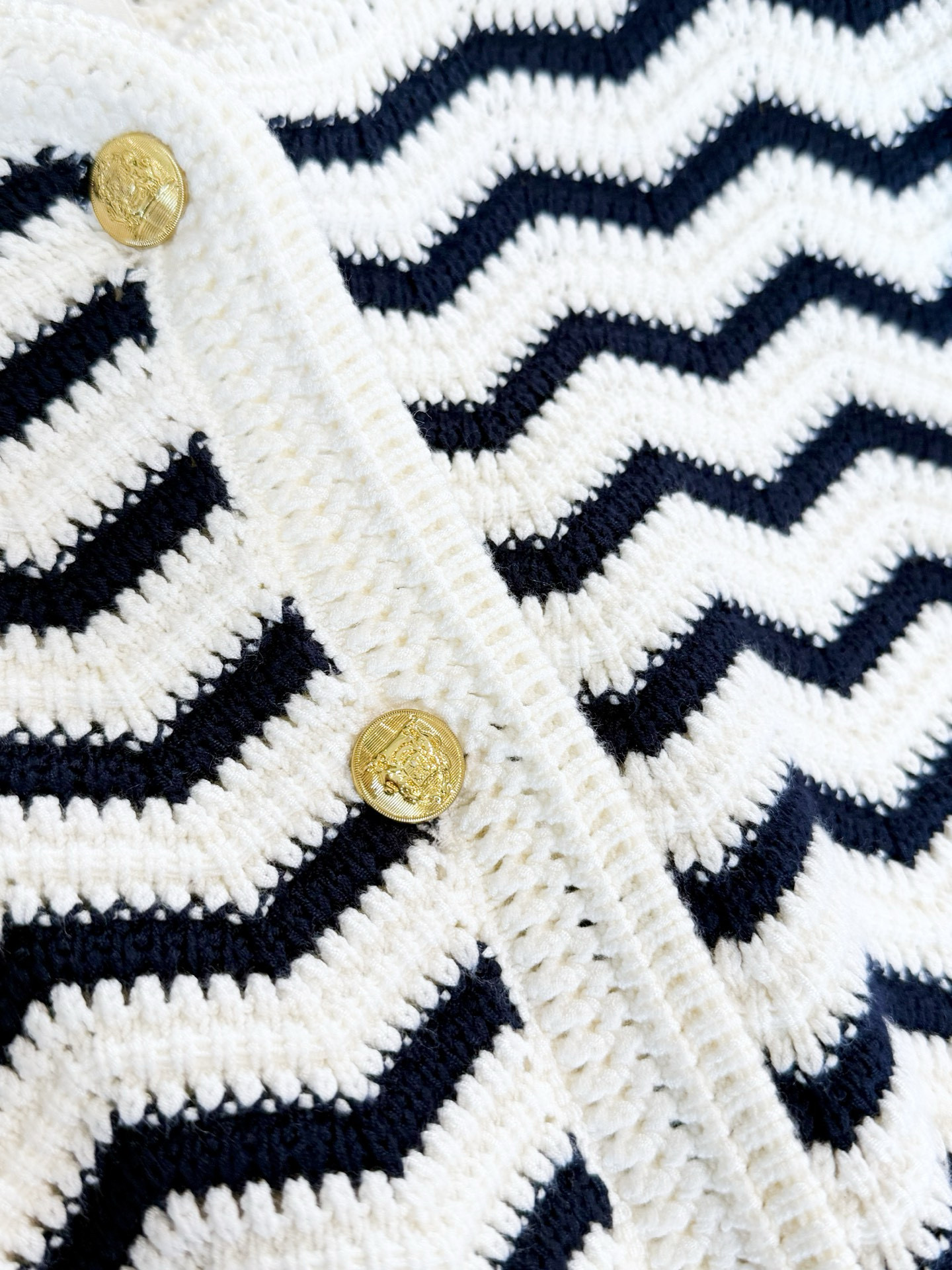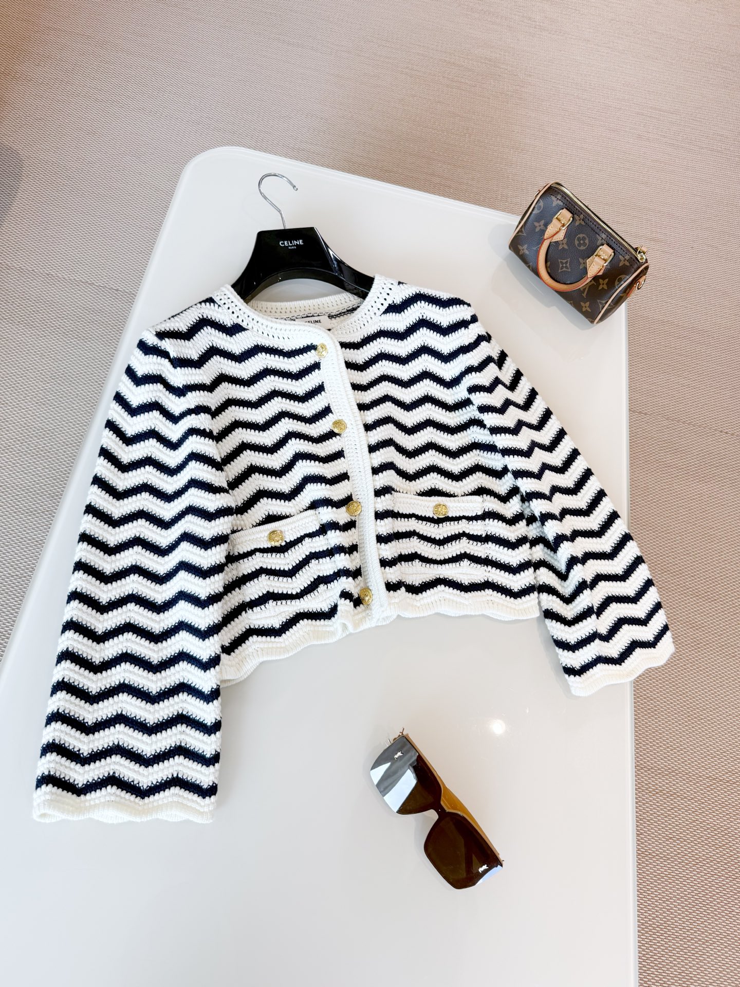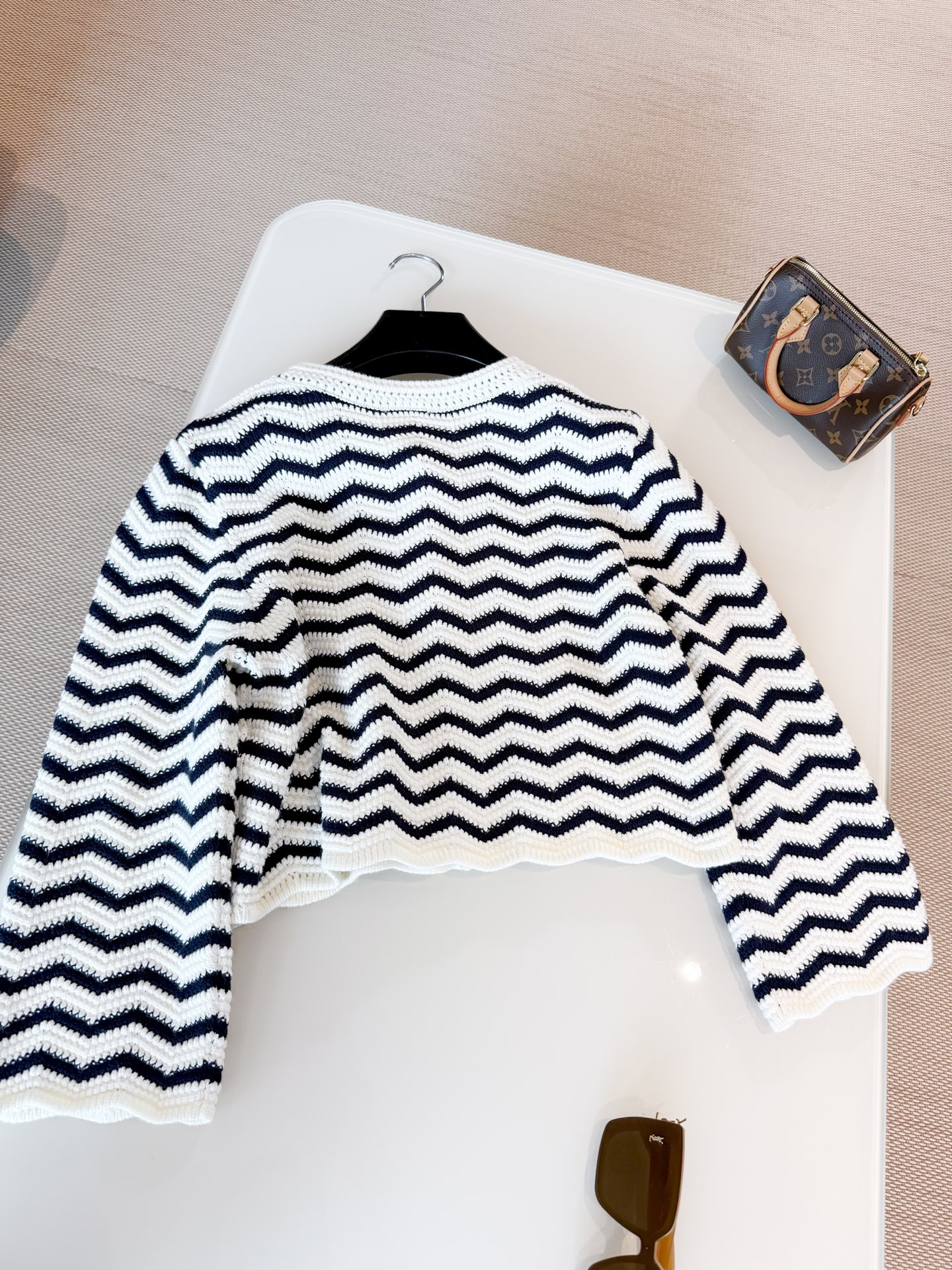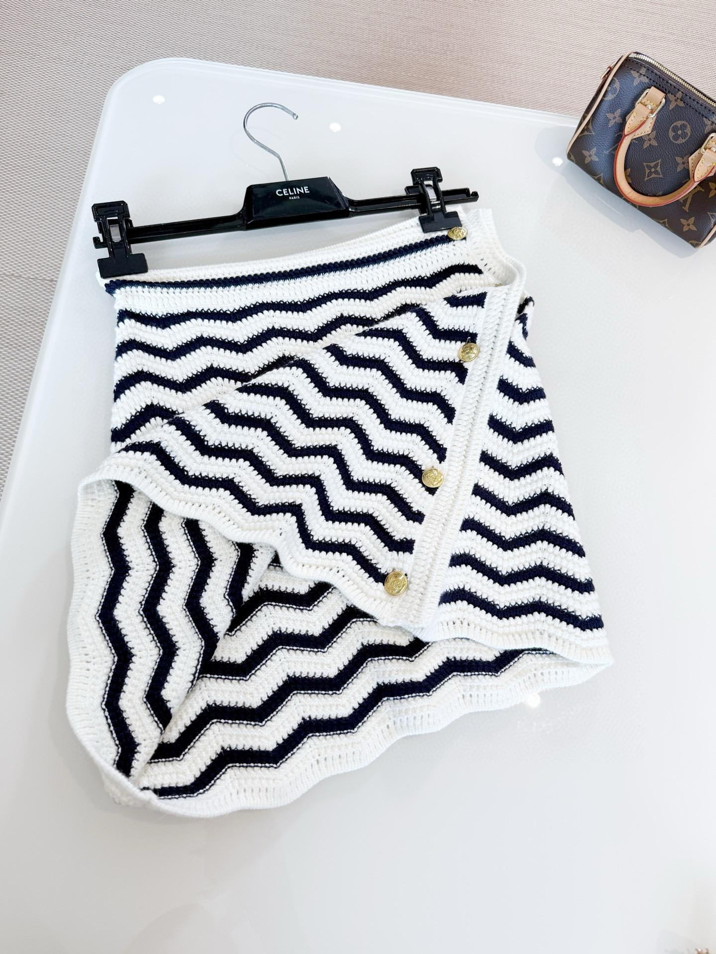 NIGO Celine Women's Fall And Winter Black And White Wave Striped Knitted Cardigan Wrap Hip Half Skirt Fashionable And Elegant Set Suit Ngvp #nigo2186