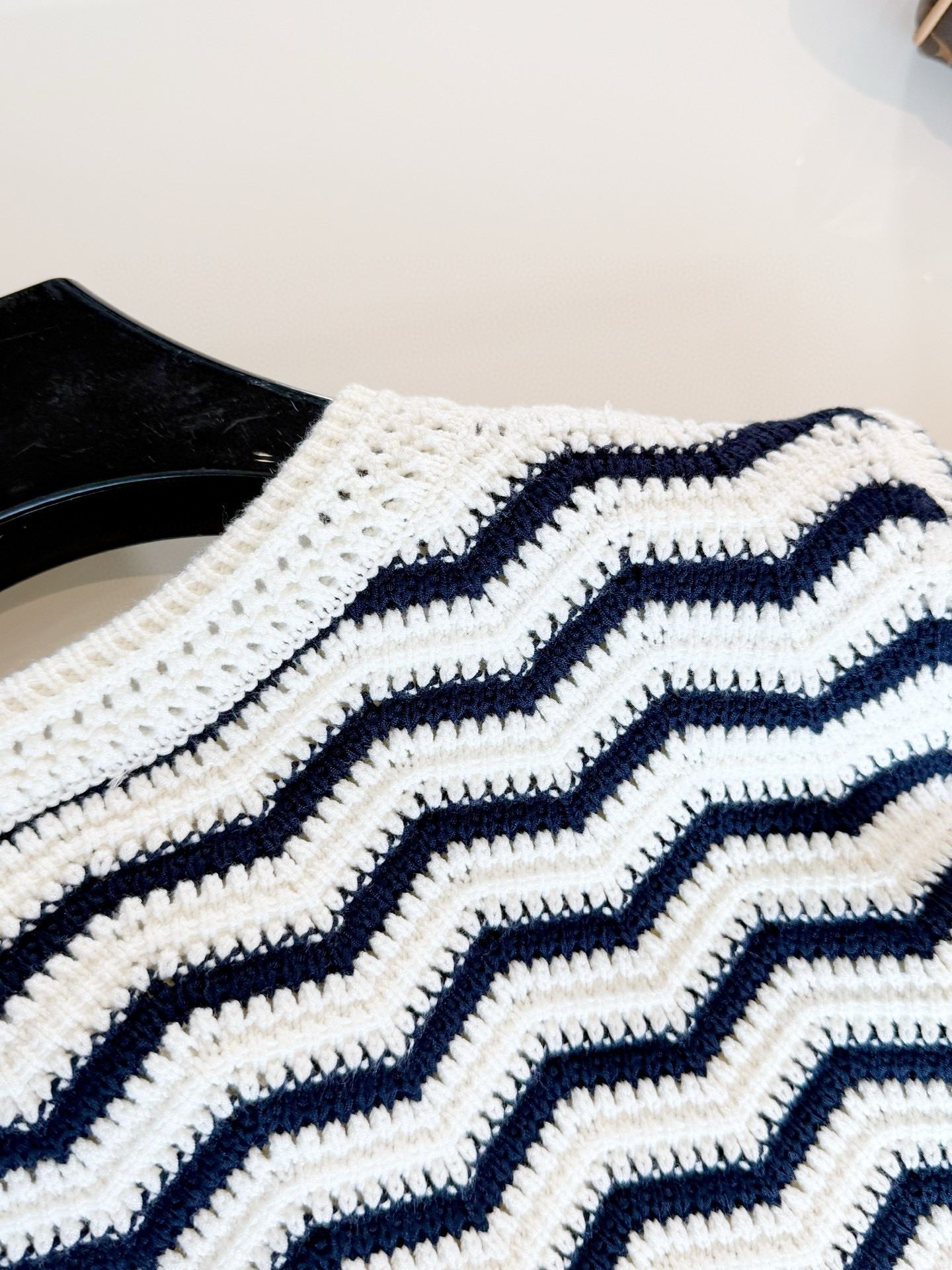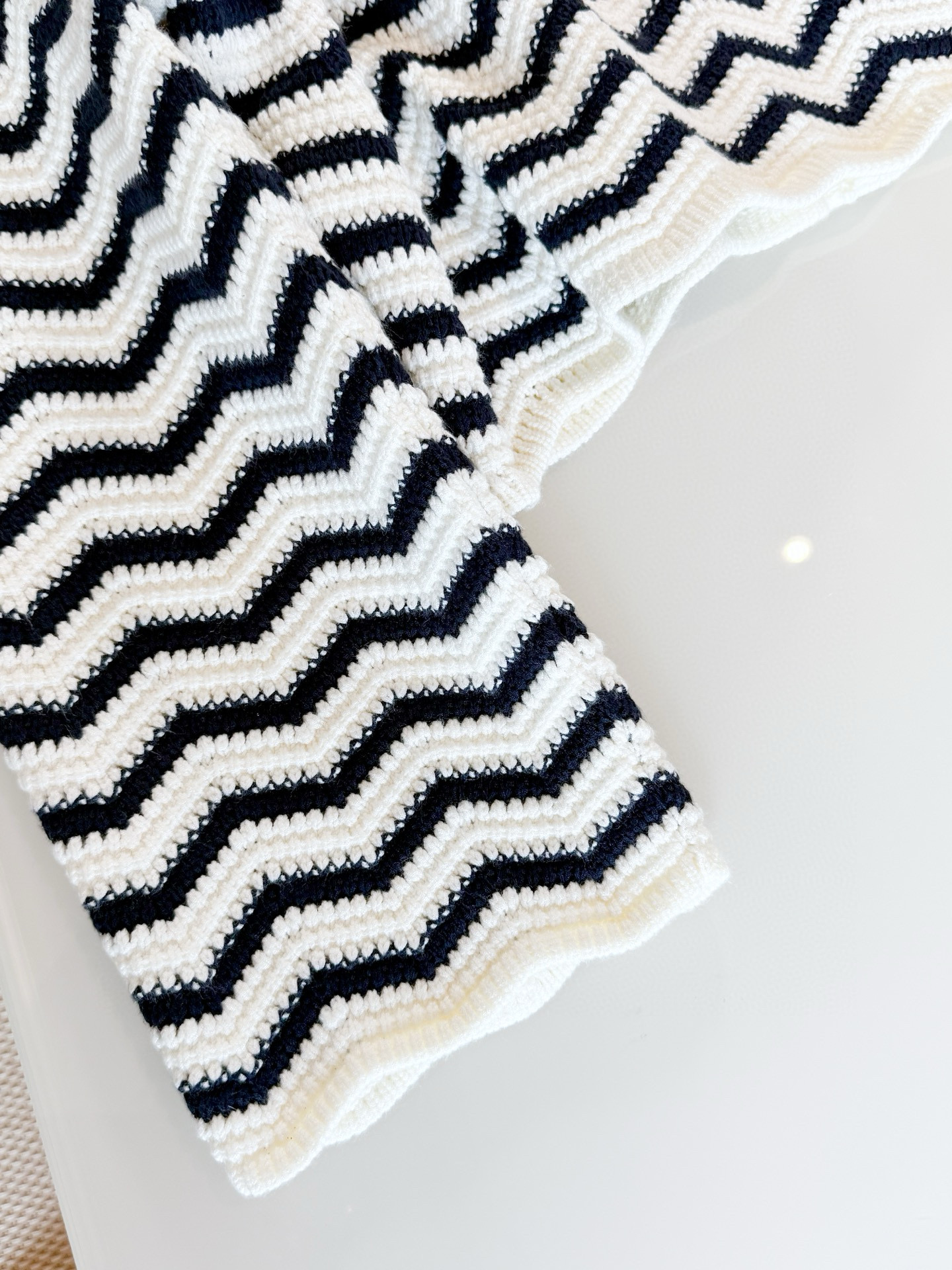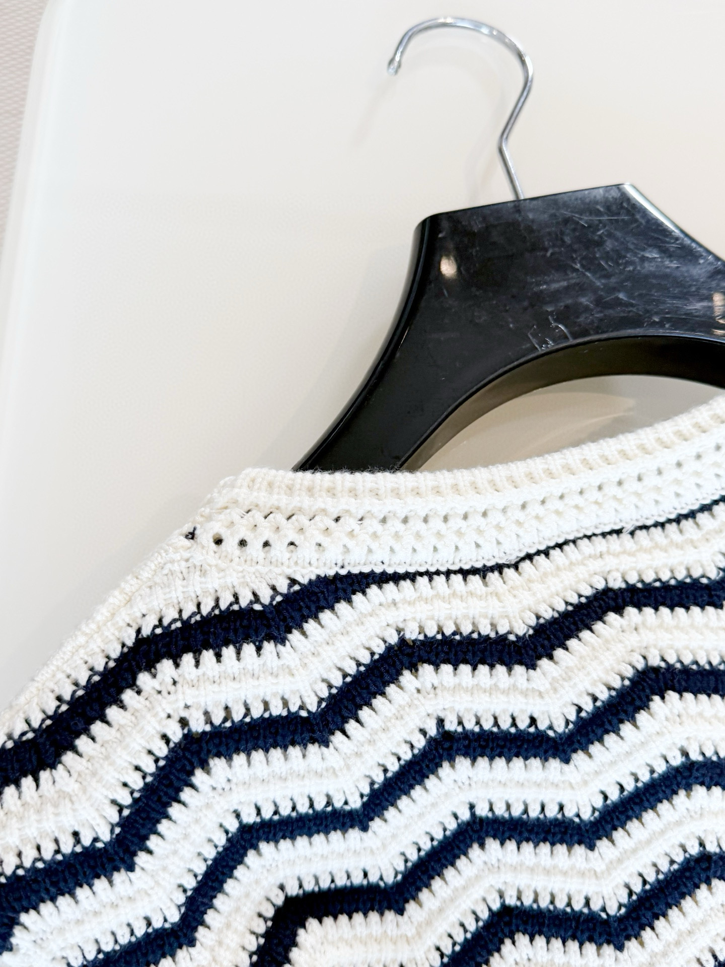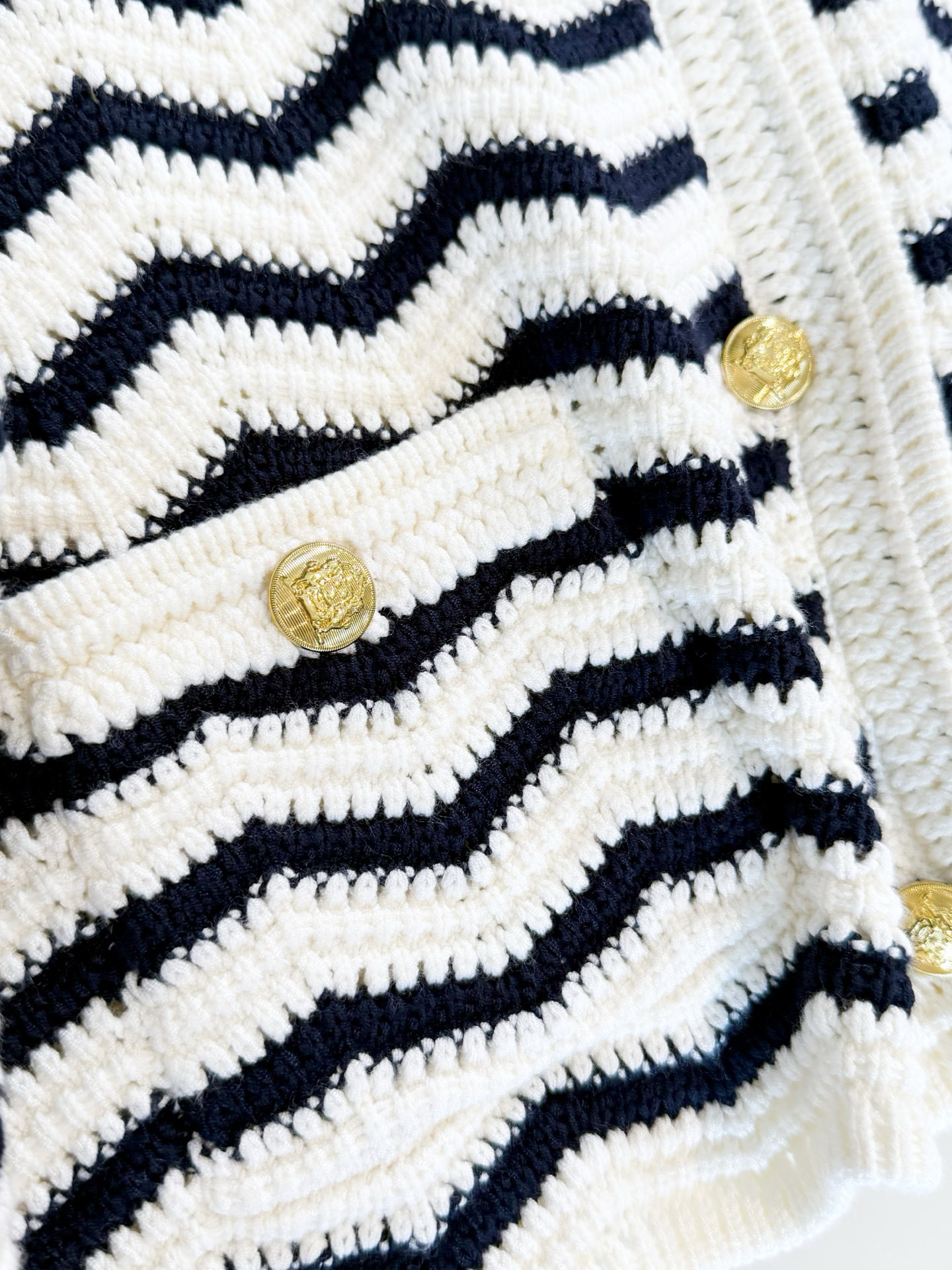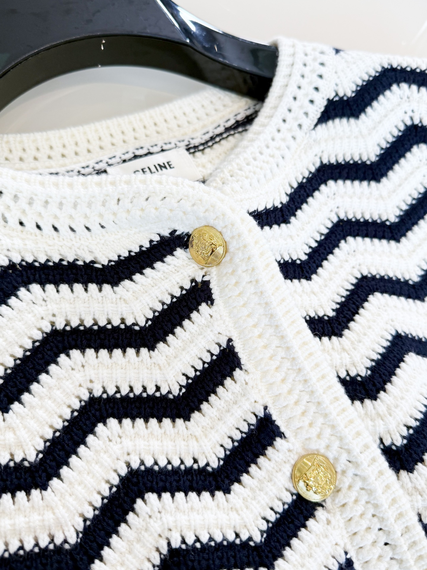 NIGO Celine Women's Fall And Winter Black And White Wave Striped Knitted Cardigan Wrap Hip Half Skirt Fashionable And Elegant Set Suit Ngvp #nigo2186