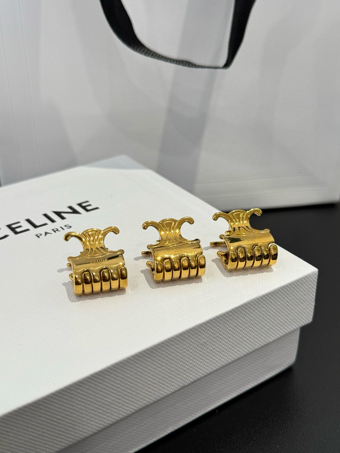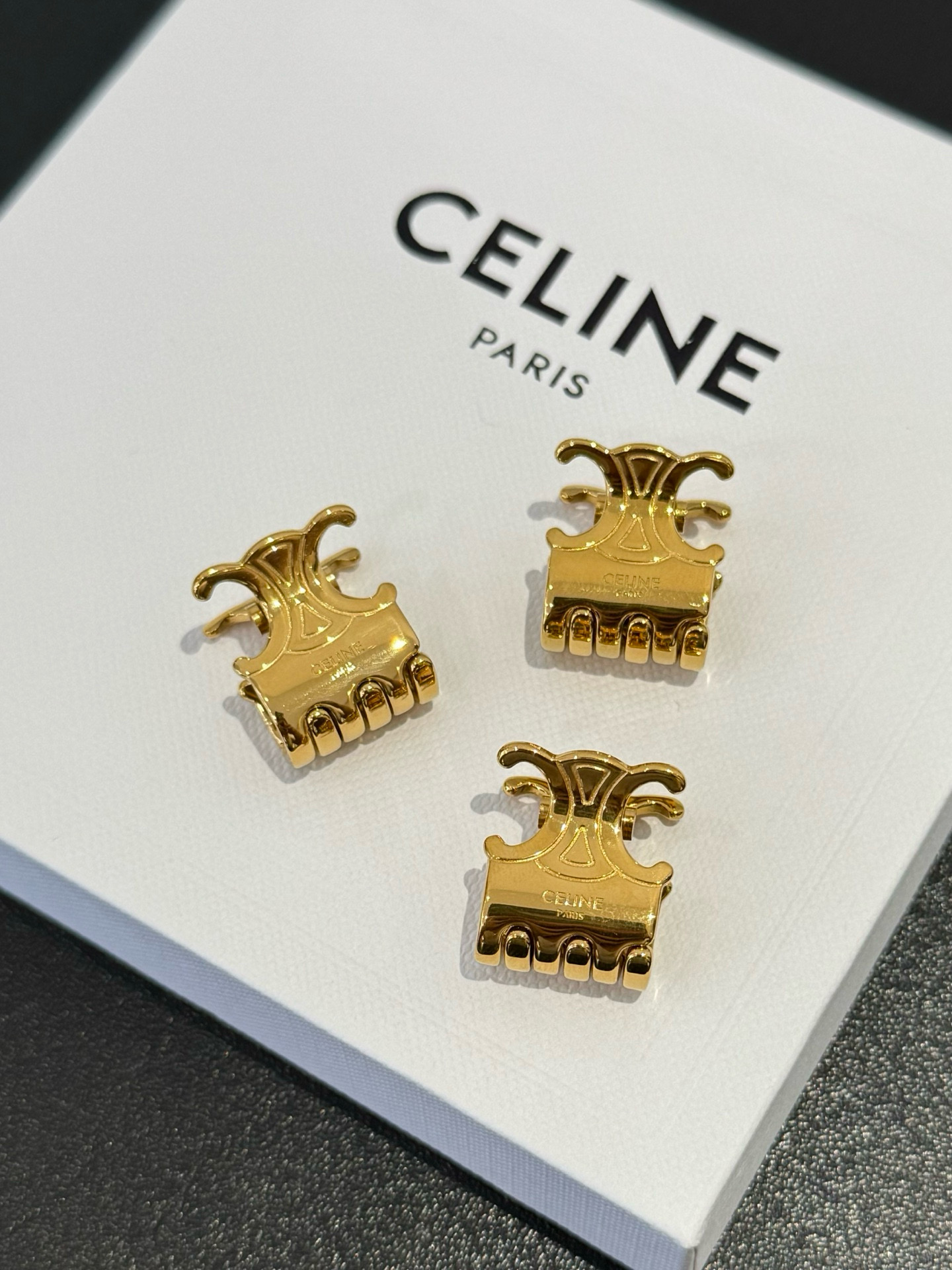 NIGO Celine Women's Gold-Plated Mini Claw Hair Clip 3-Piece Set Hair Accessories Jewelry #nigo77349