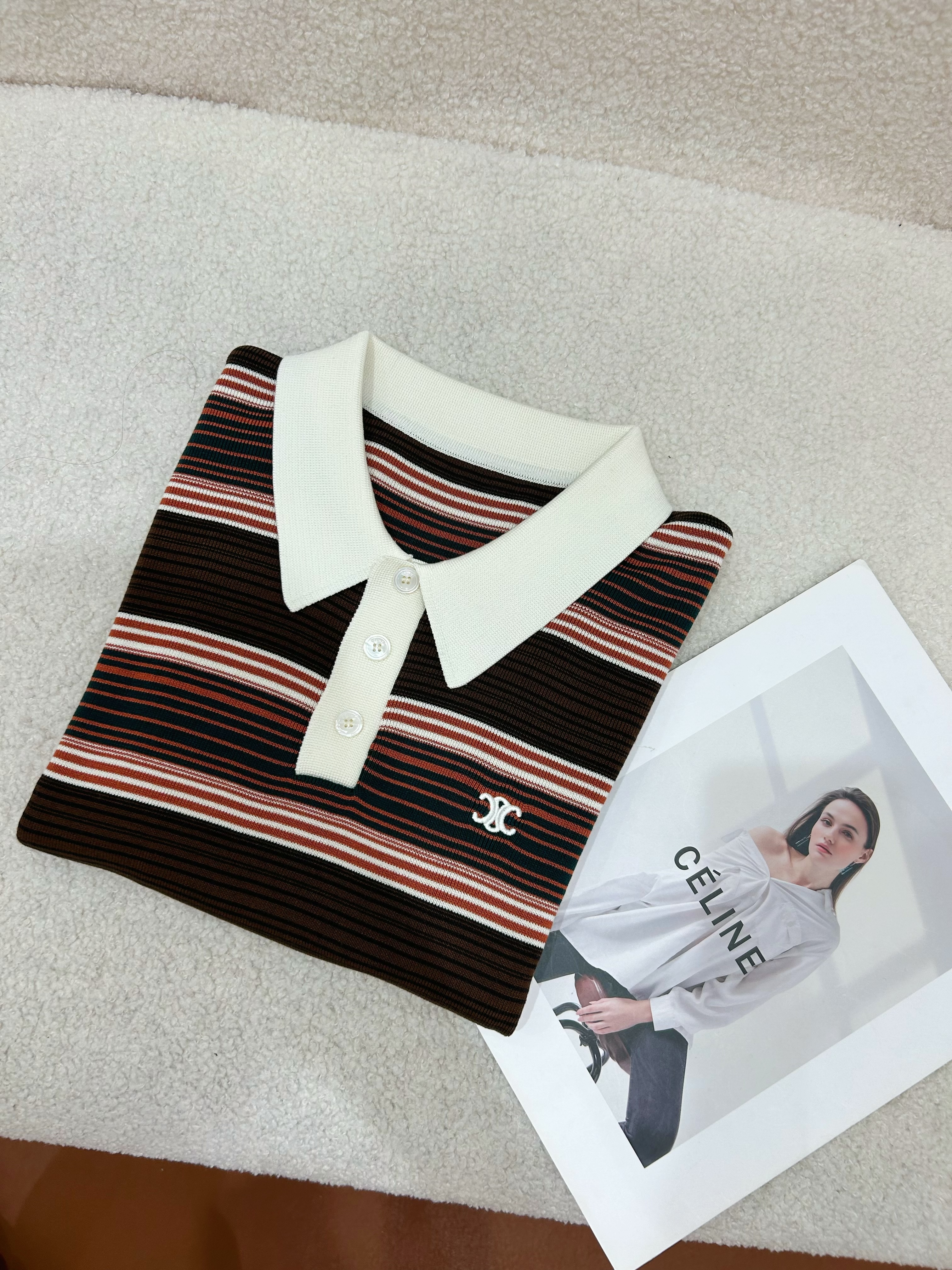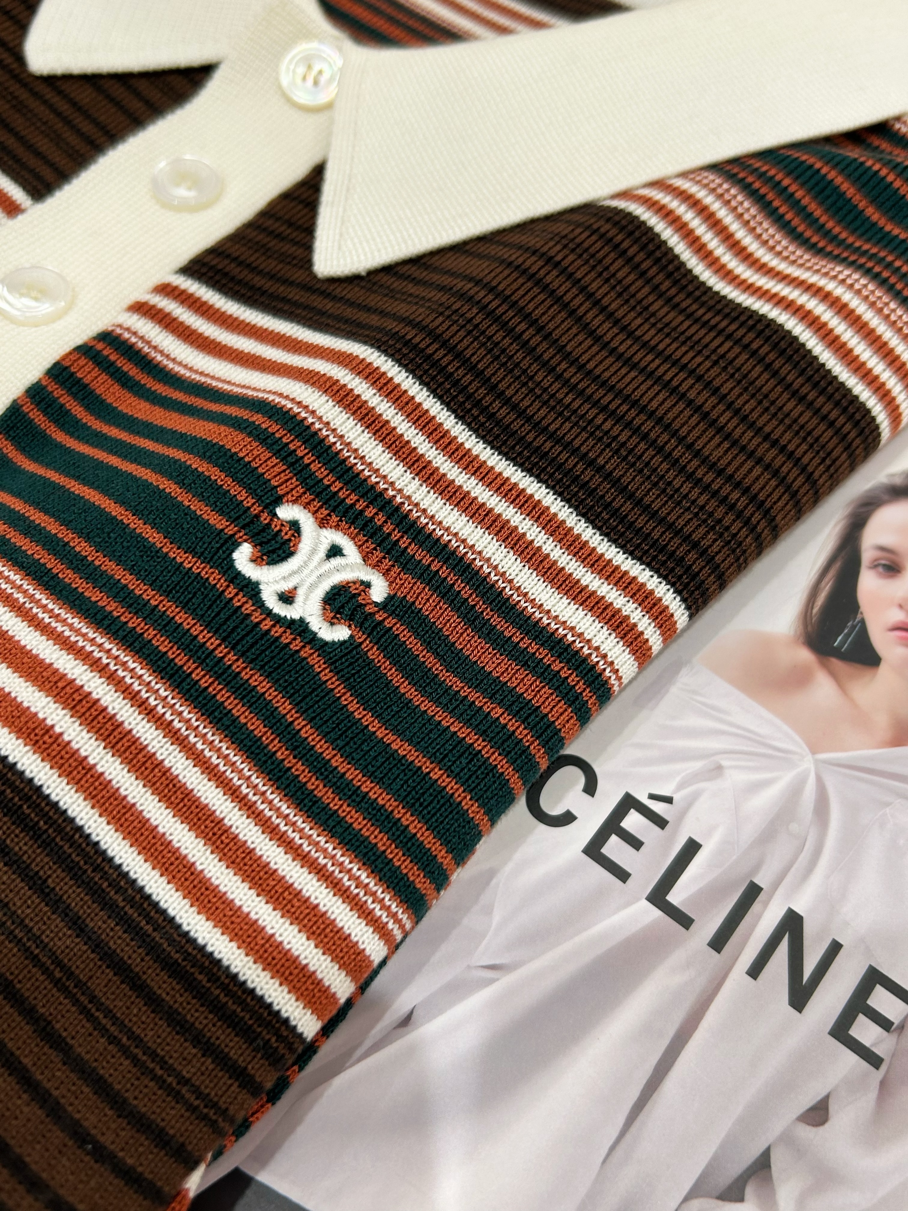 NIGO Celine Women's Summer Striped Printed Knit Polo Neck Short Sleeve T-Shirt #nigo75571
