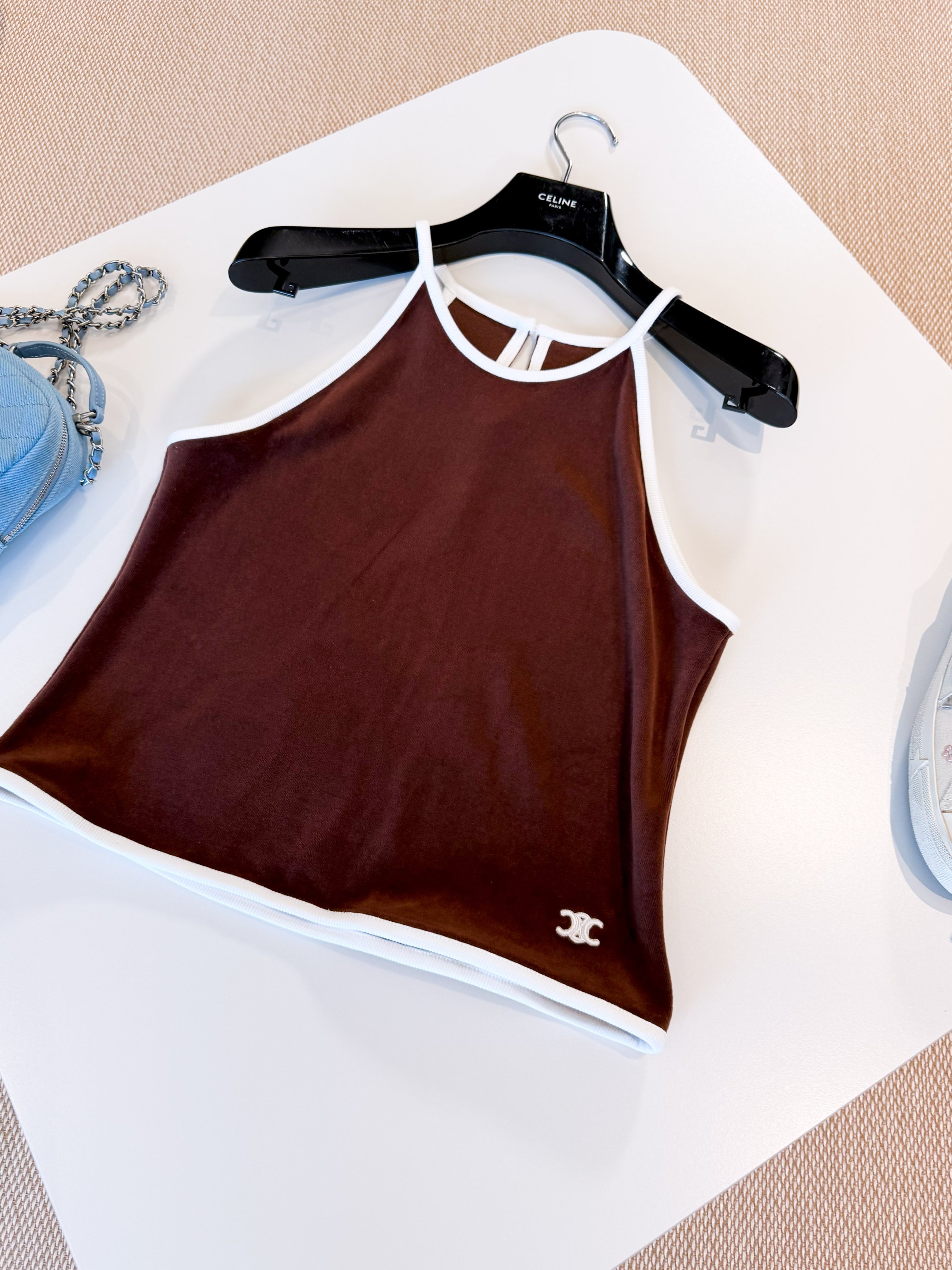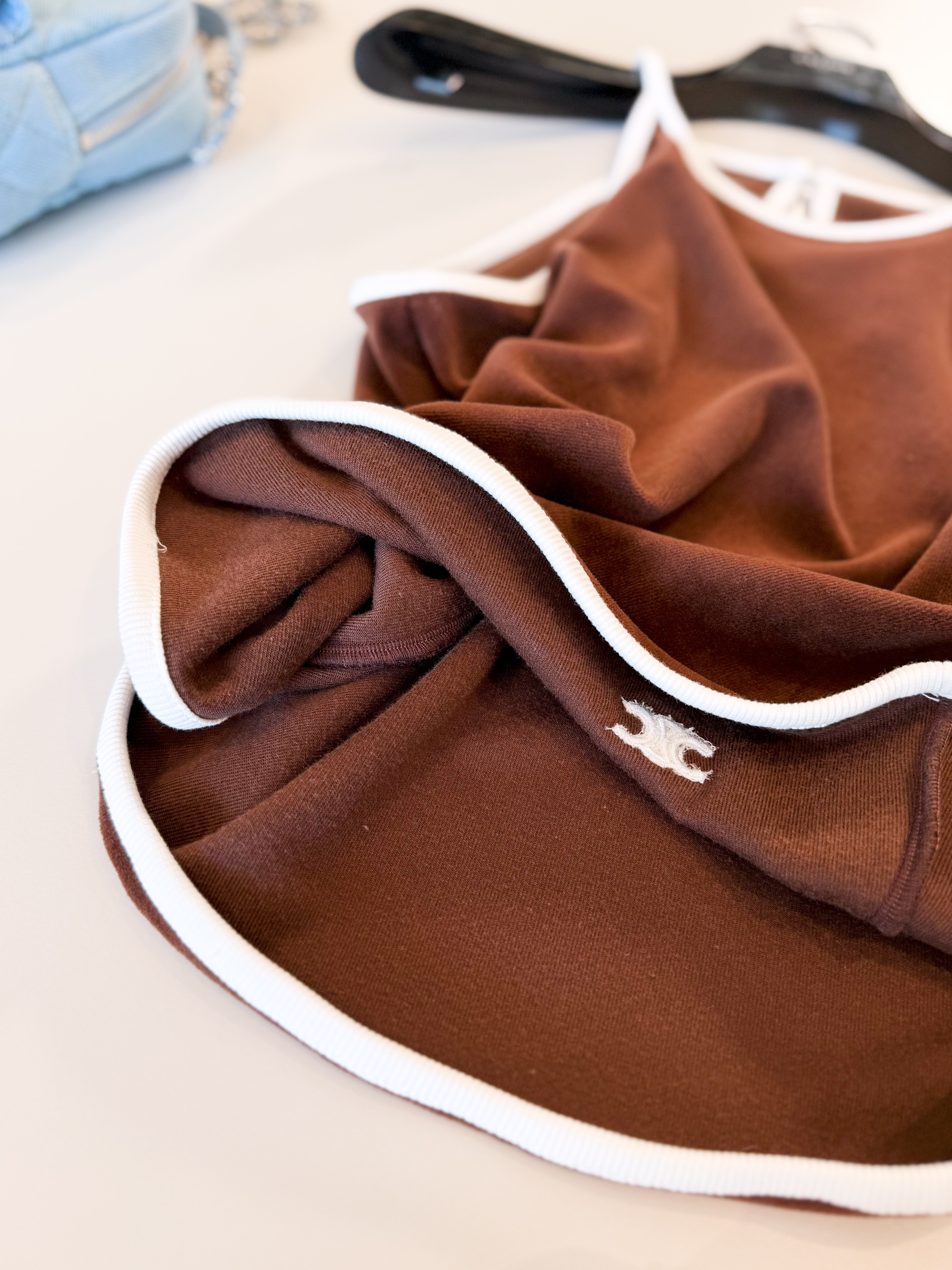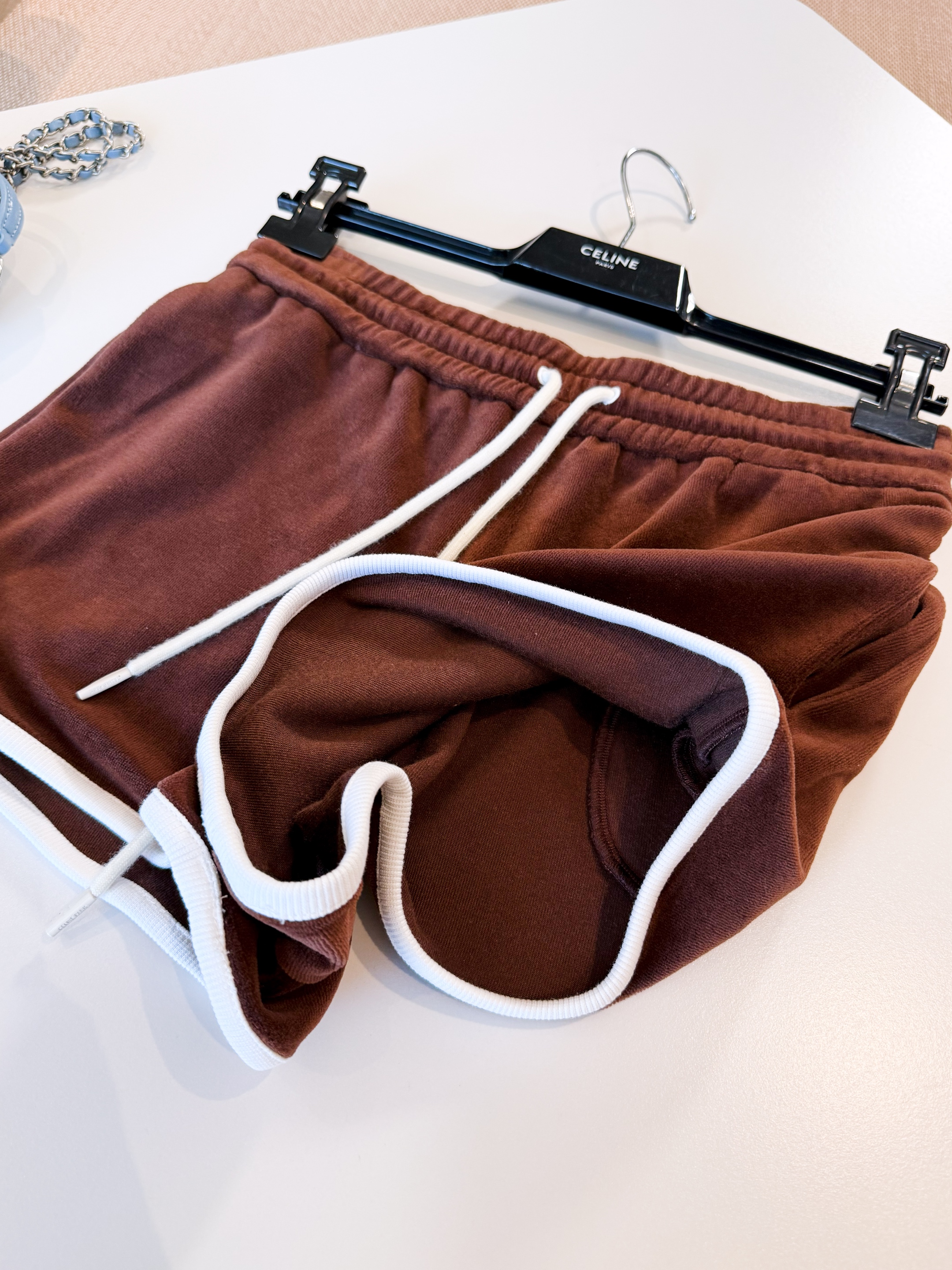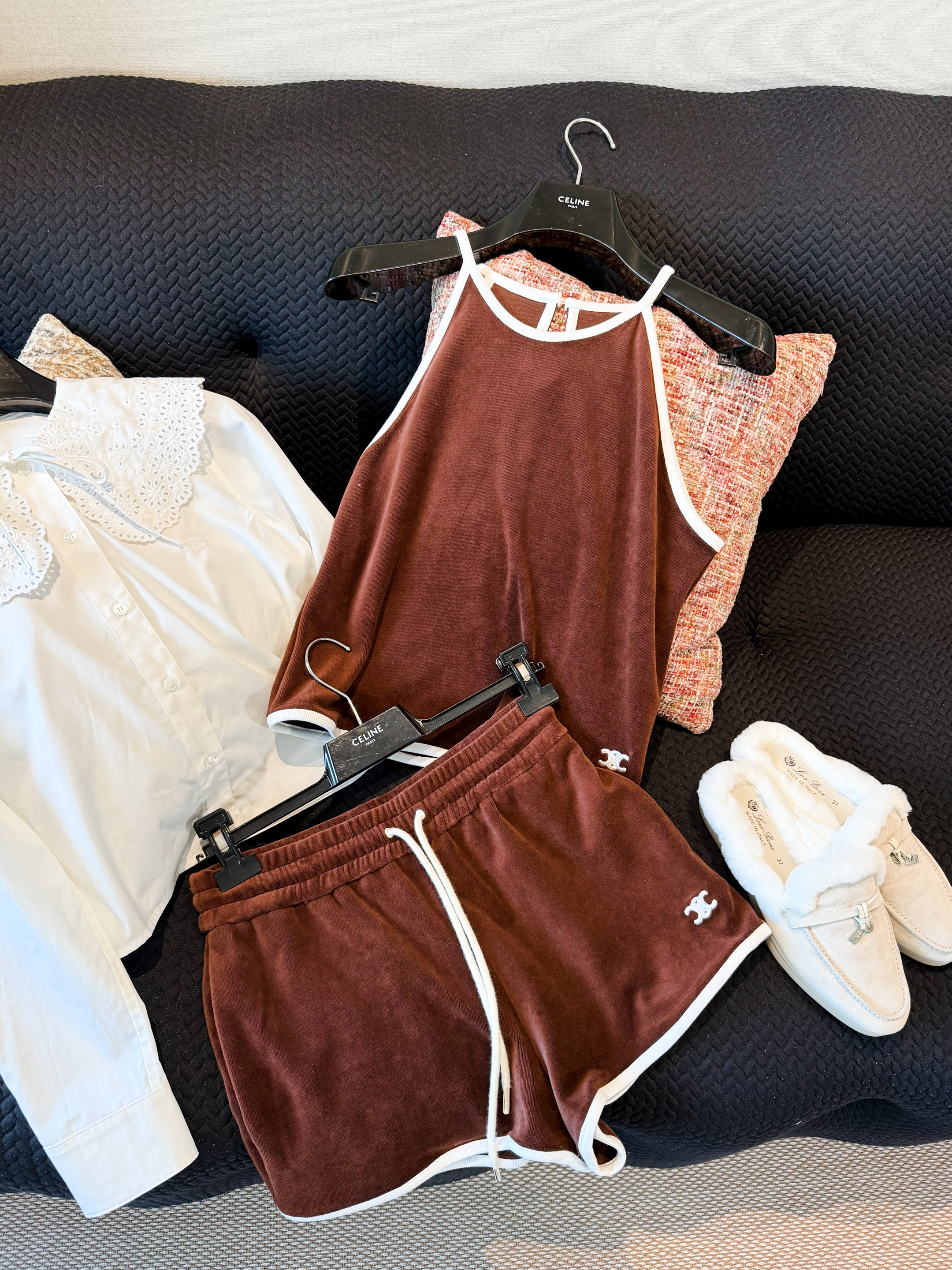 NIGO Celine Women's Women's Spring And Summer Velvet Plain Knit Mini Shorts Fashion Trend Temperament Elegant Tank Top Brown Set Suit #nigo81378