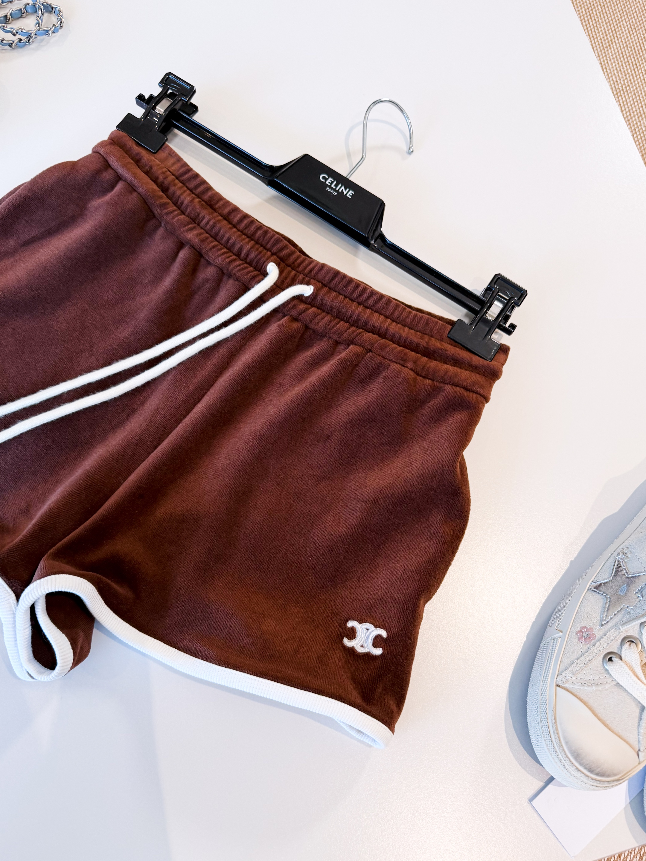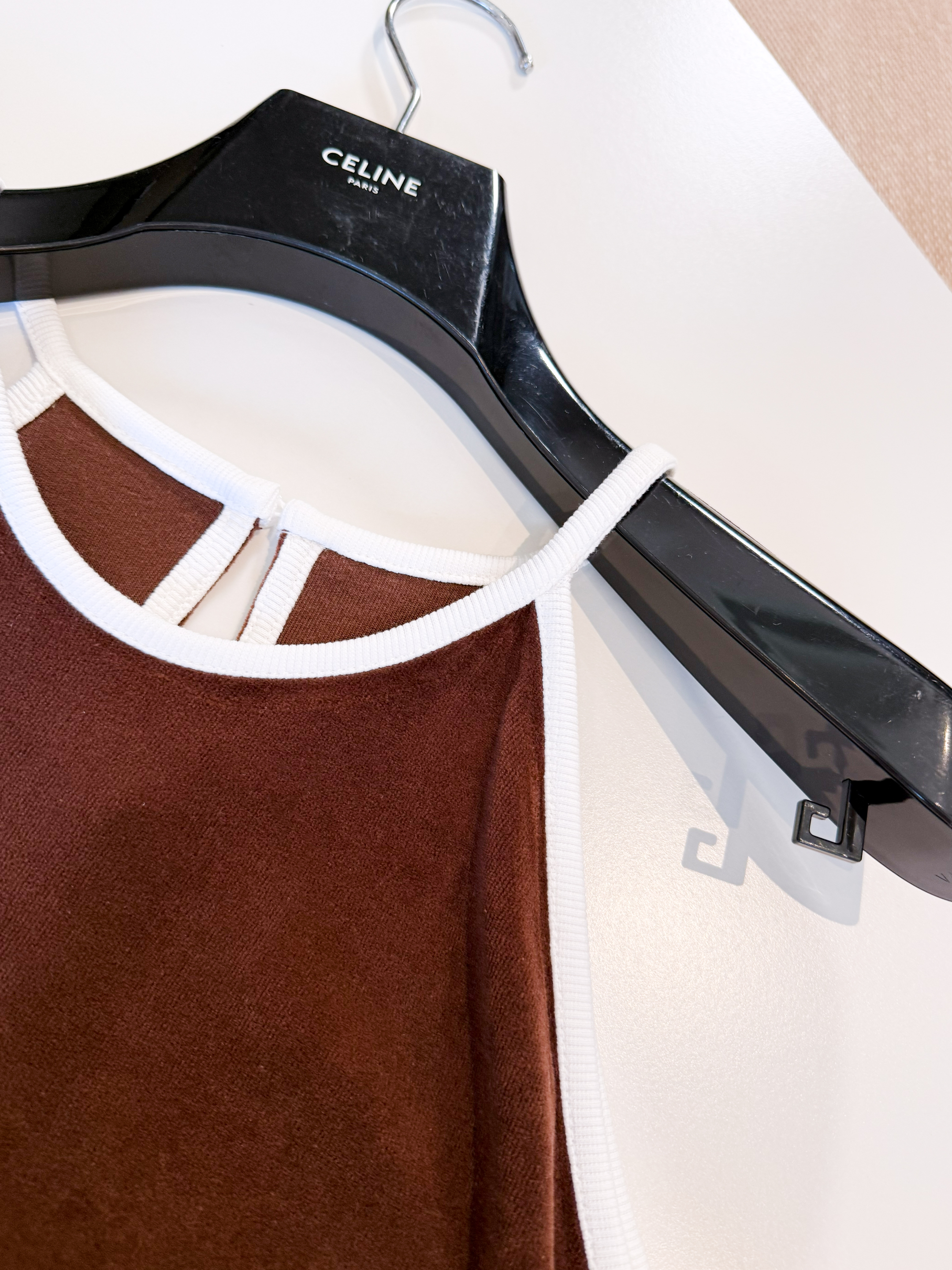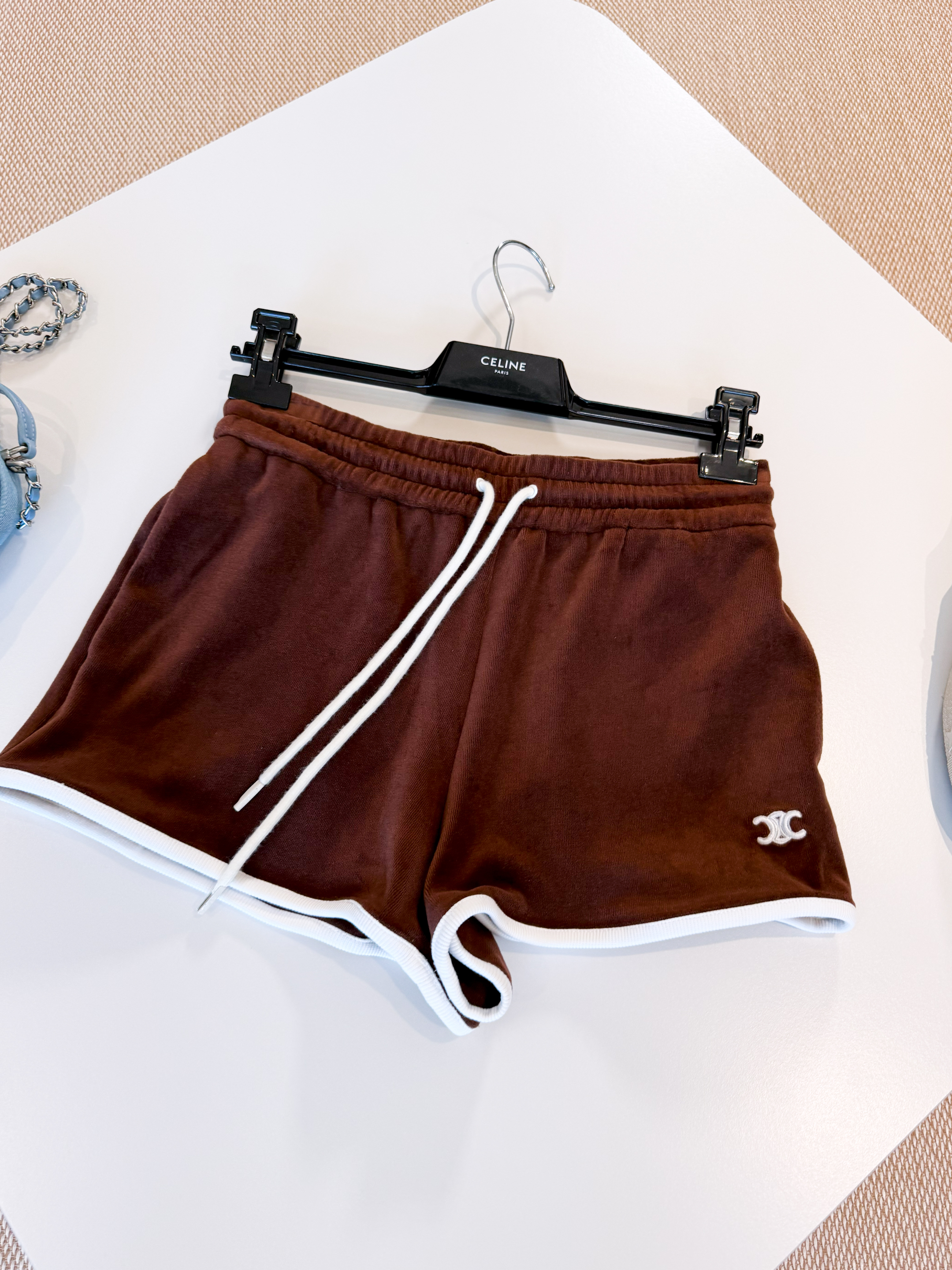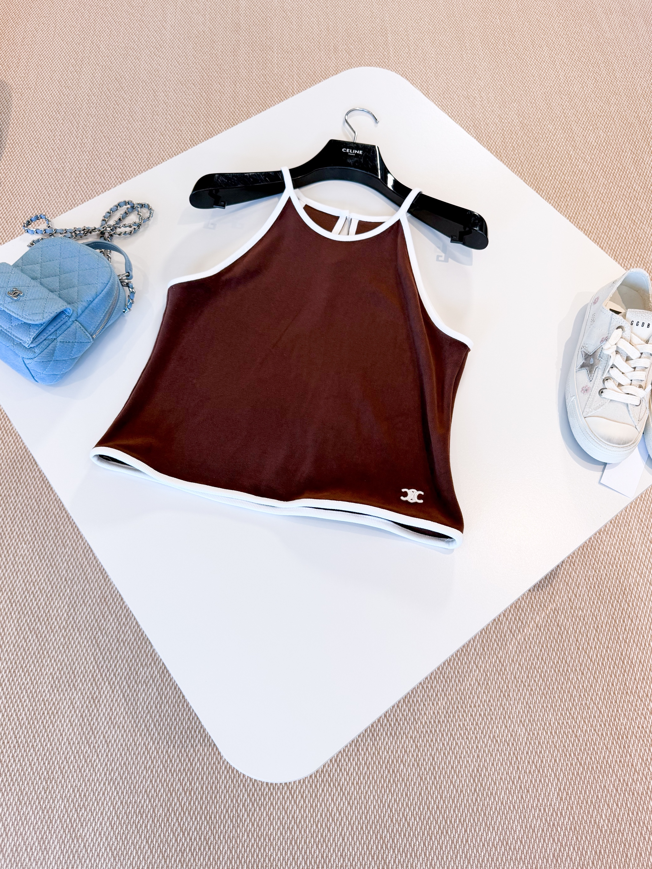 NIGO Celine Women's Women's Spring And Summer Velvet Plain Knit Mini Shorts Fashion Trend Temperament Elegant Tank Top Brown Set Suit #nigo81378