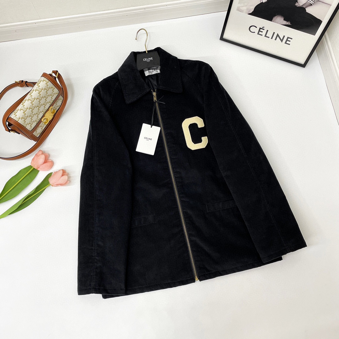 NIGO Celine Men's Black Lapel Zipper Cotton Jacket In Corduroy #nigo97158