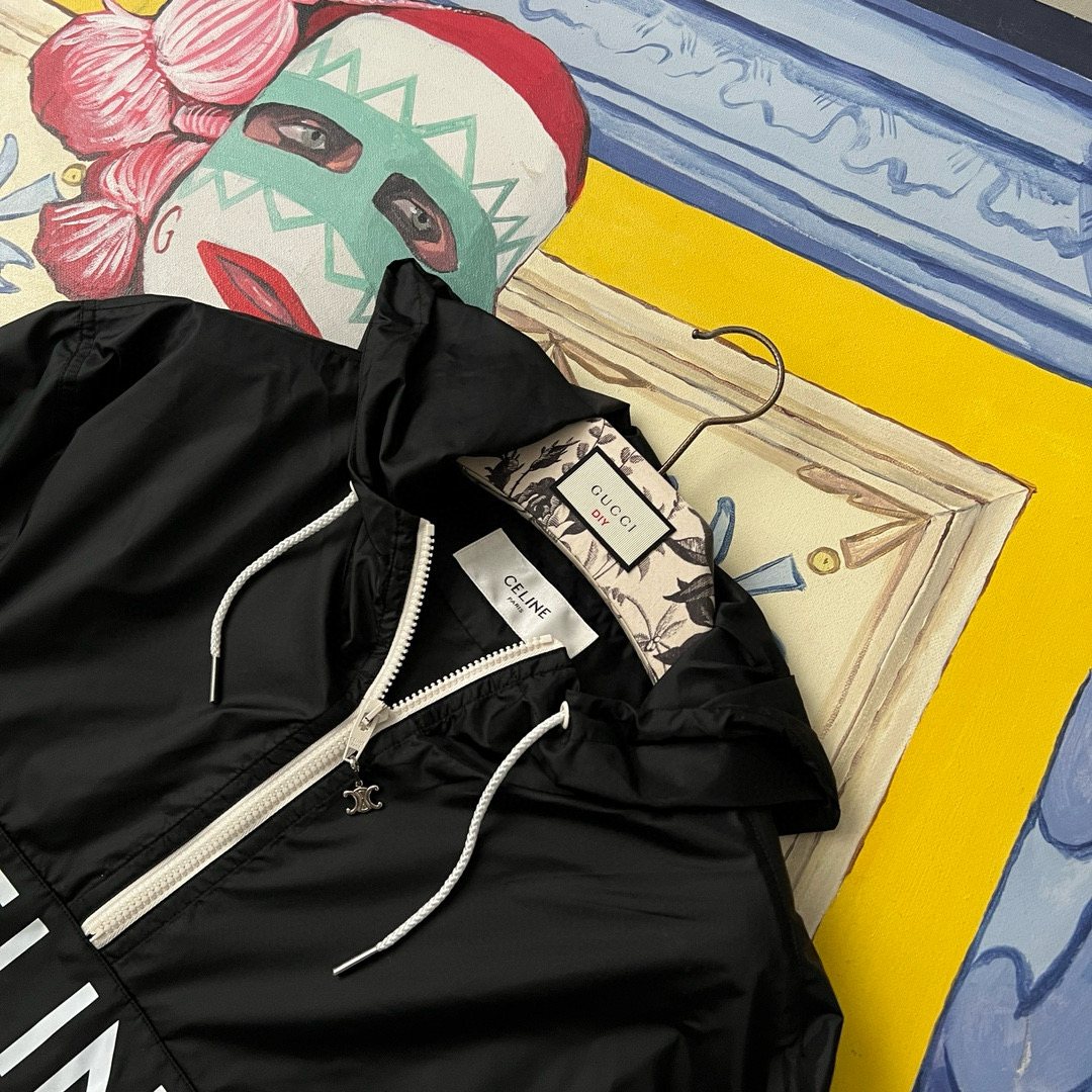 NIGO Celine Men's Spring and Fall Logo Printed Nylon Regular Fit Half Zip Hooded Pullover Jacket #nigo98419