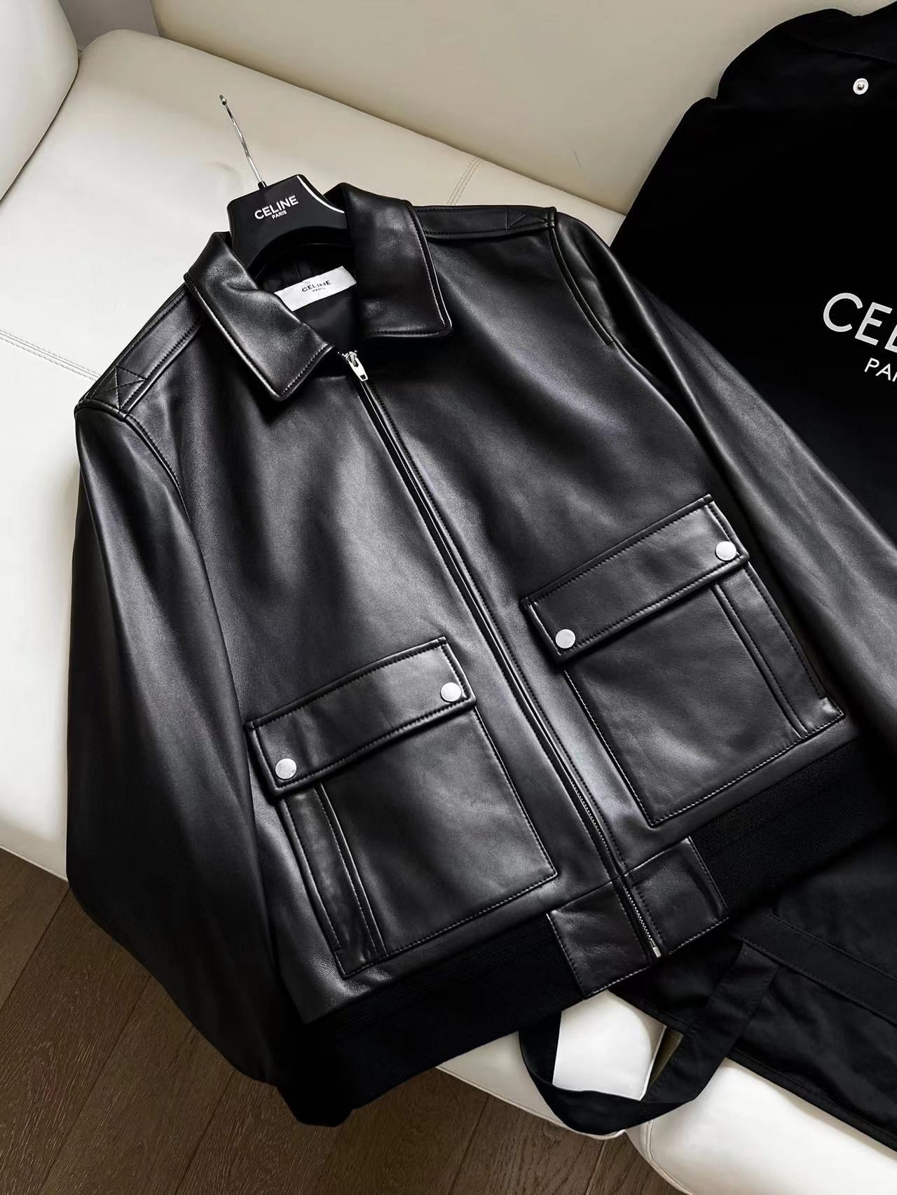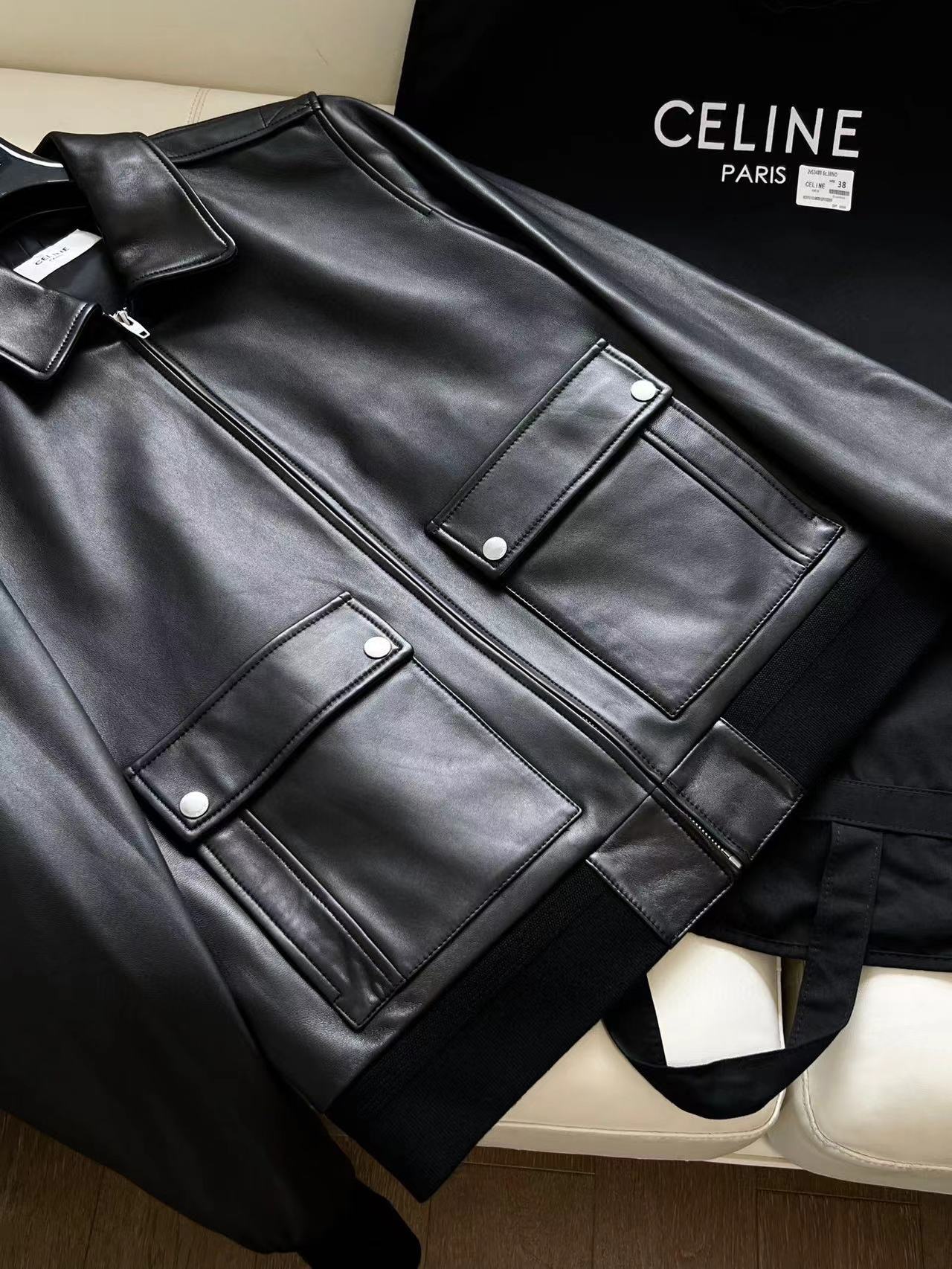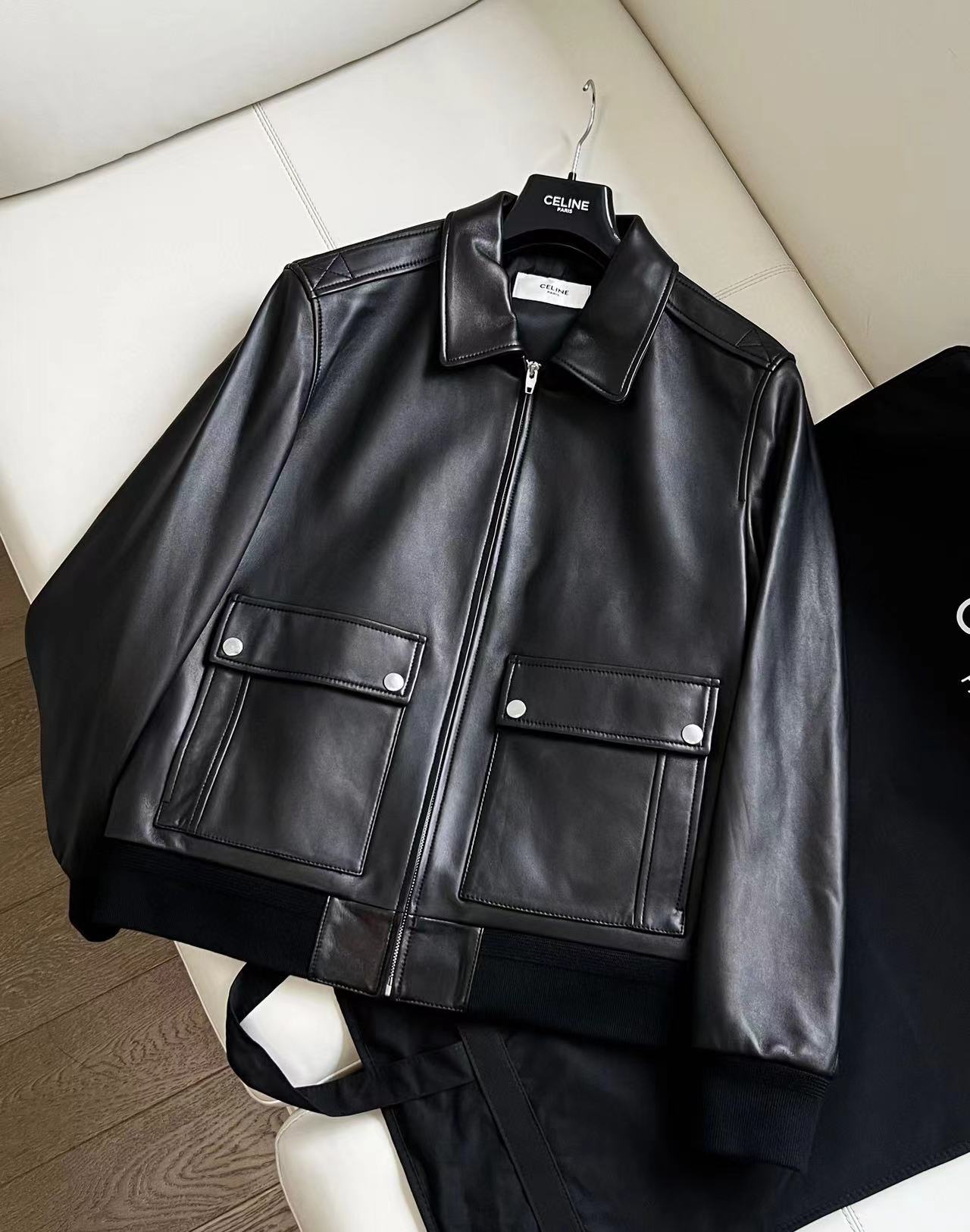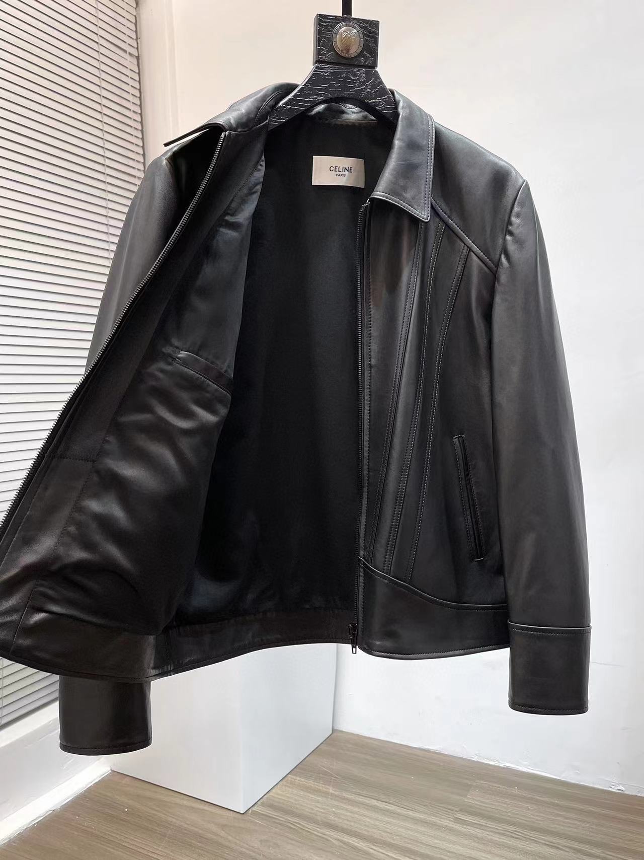 NIGO Celine Men's Fall And Winter Black Lambskin Lapel Zipper Long Sleeve Jacket #nigo98456