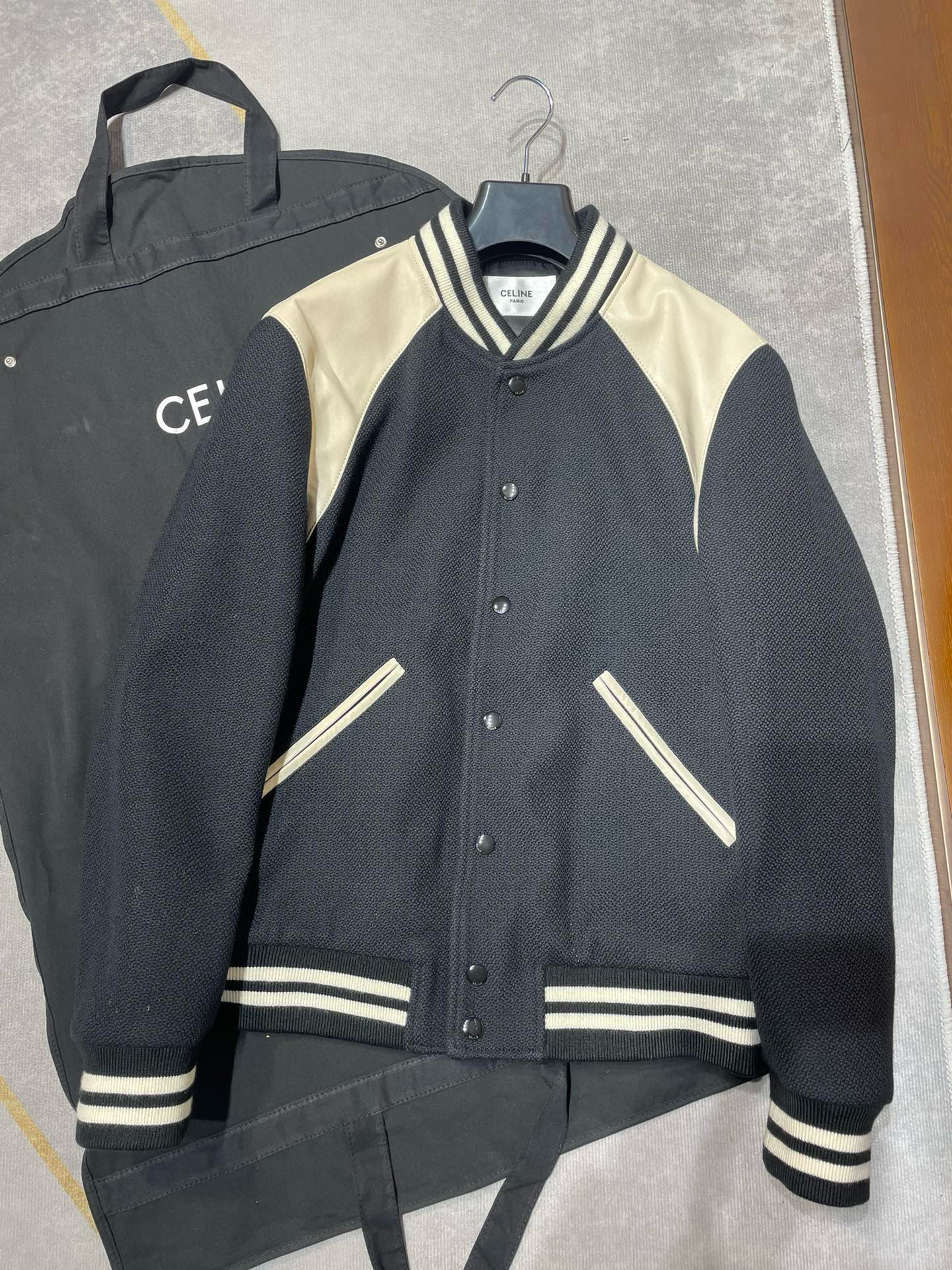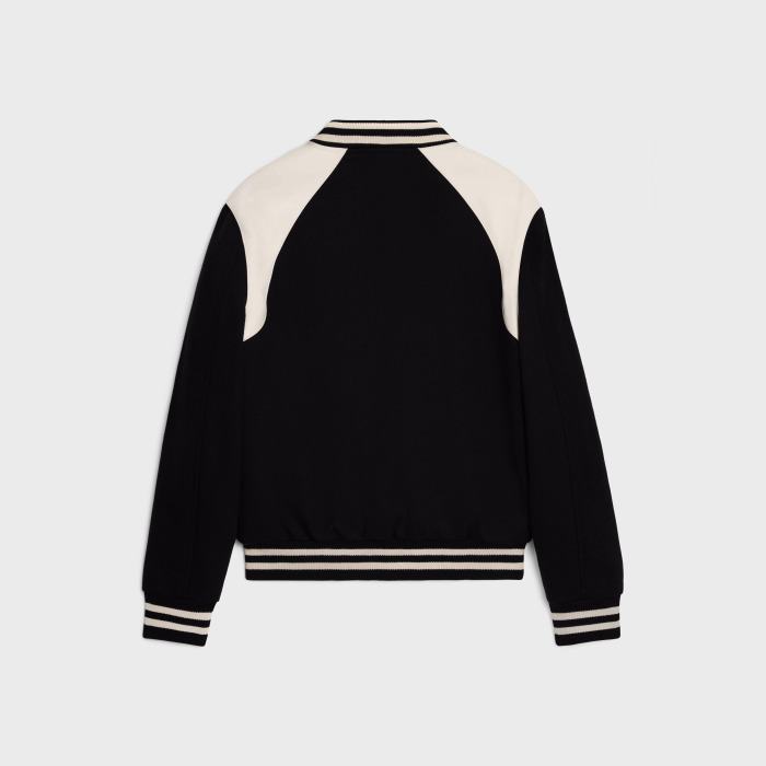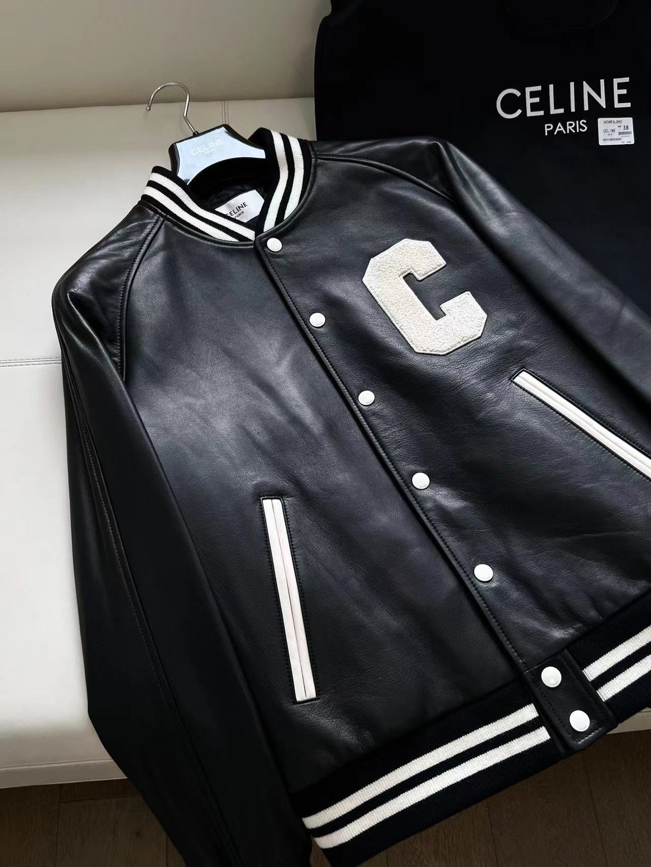 NIGO Celine Men's Fall And Winter Black And White Striped Monogrammed Labeled Single Breasted Leather Jacket #nigo98457