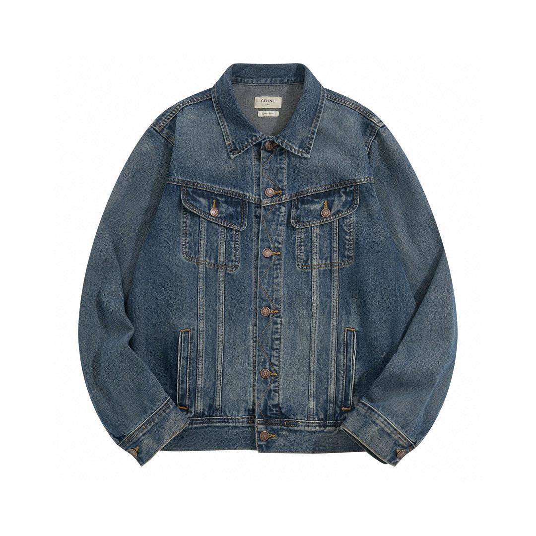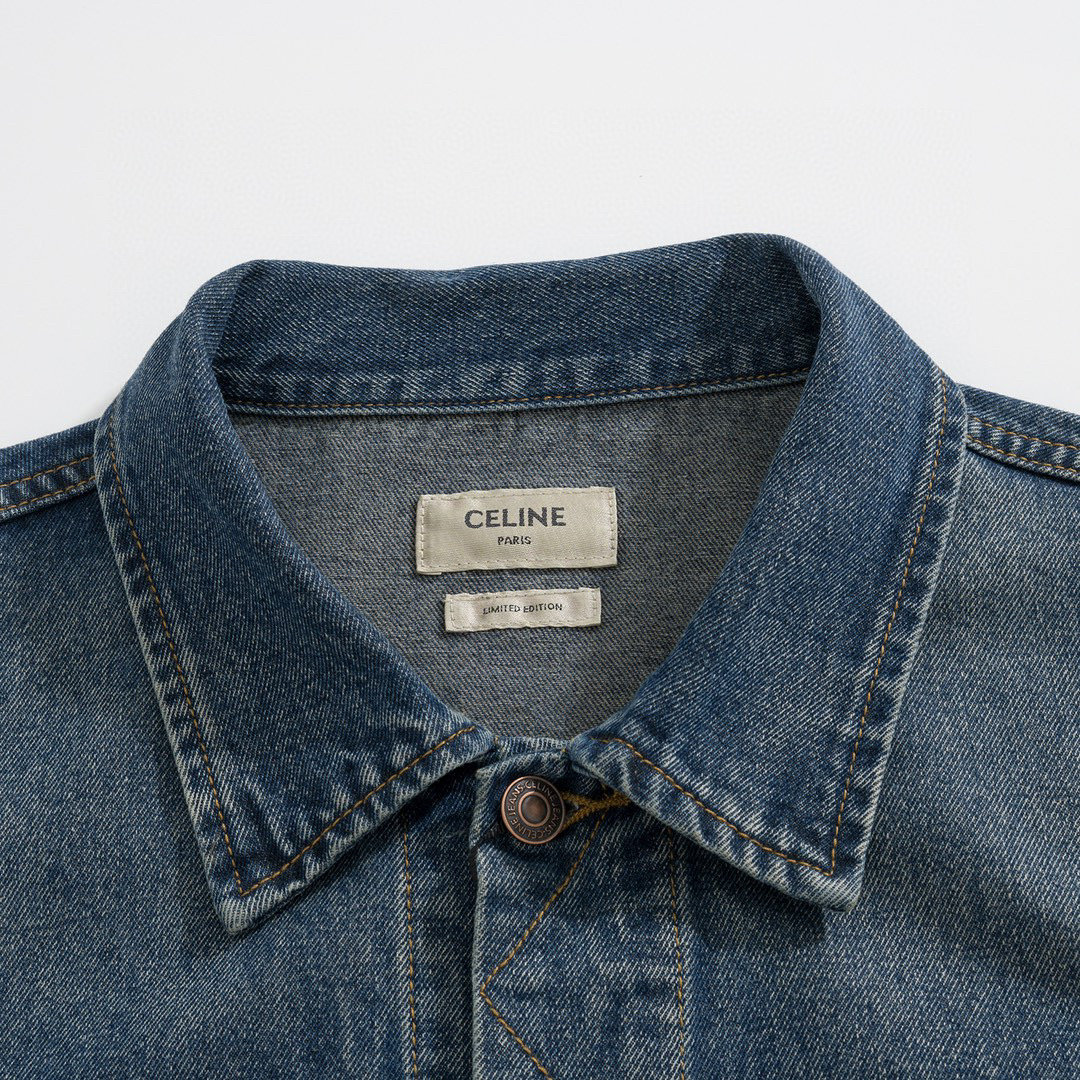 Celine Trucker Jacket In Dark Union Wash Denim Ngvp #nigo6644