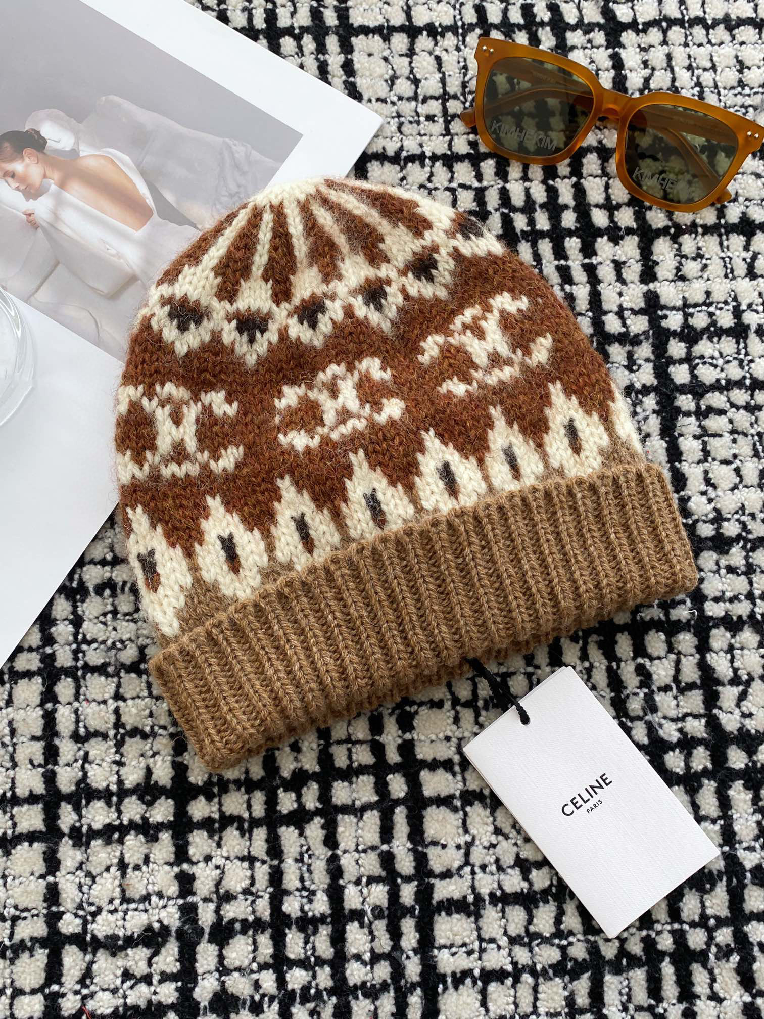 Celine Beanie In Triomphe Fair Isle Wool Cap Hat #nigo96755