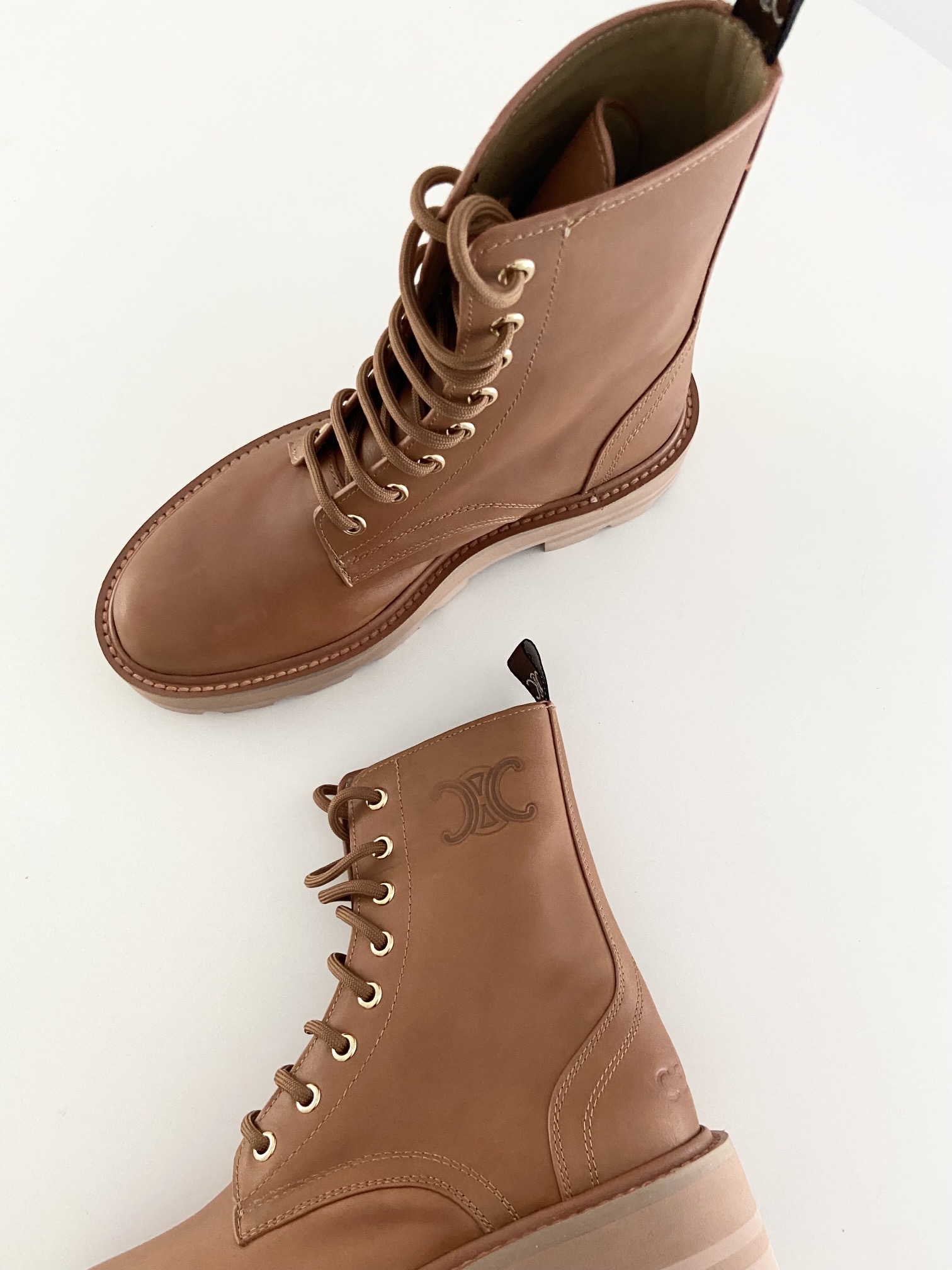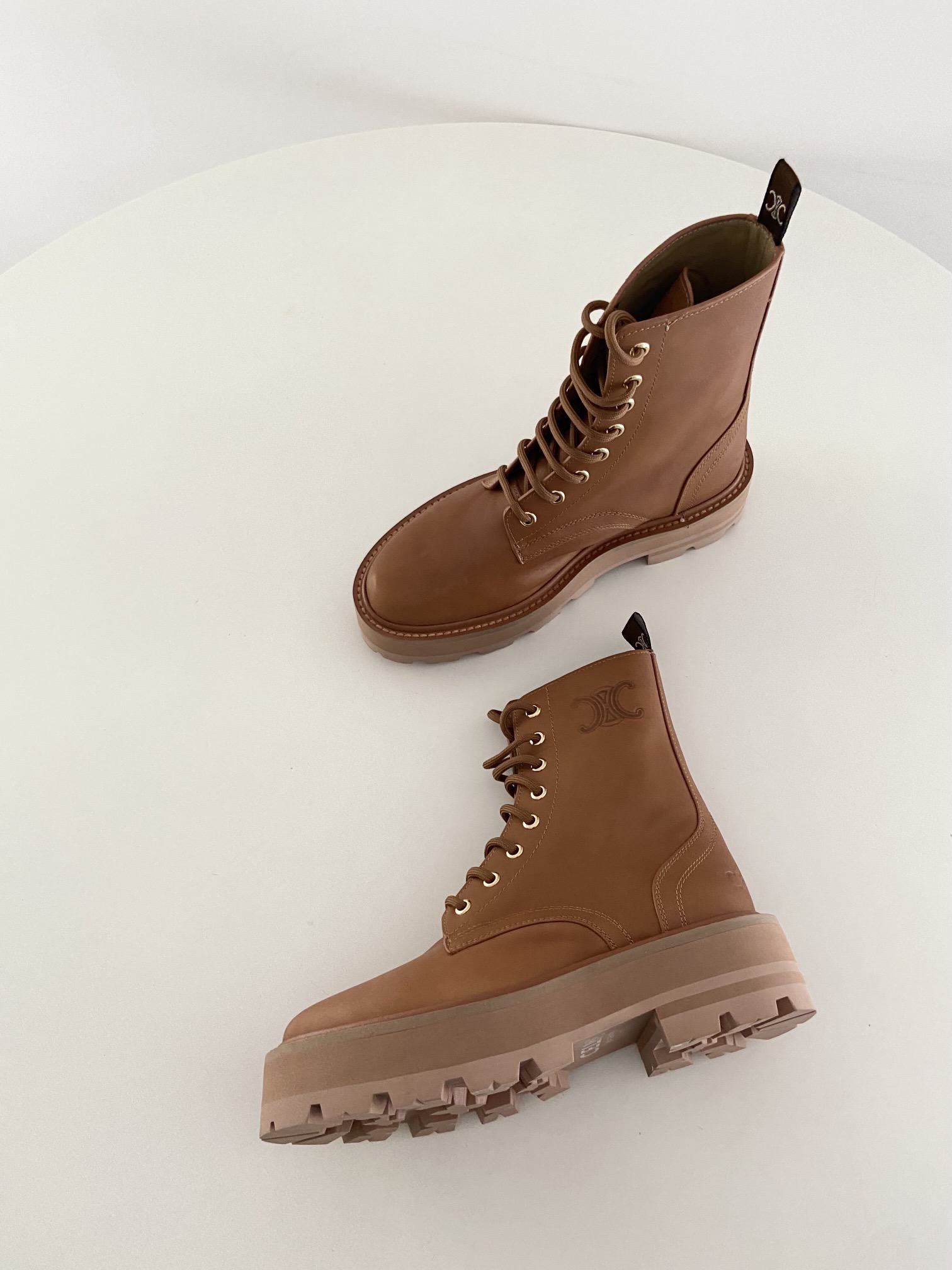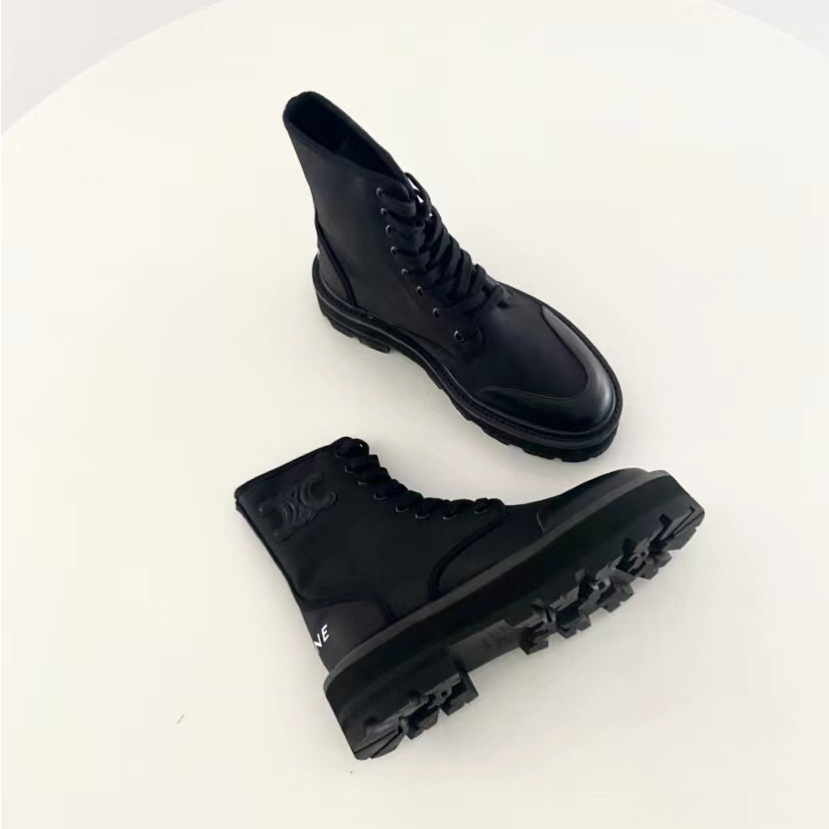 NIGO Celine Bulky Women's Solid Color Comfortable Leather Thick Sole Lace-Up Mid-Length Boots Shoes #nigo73715
